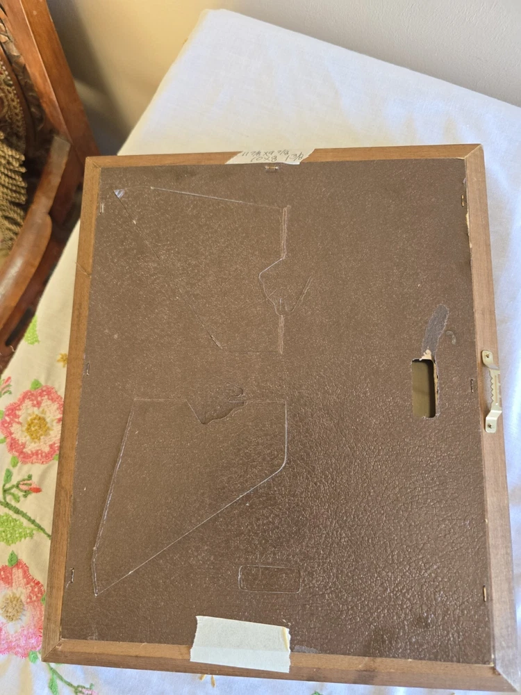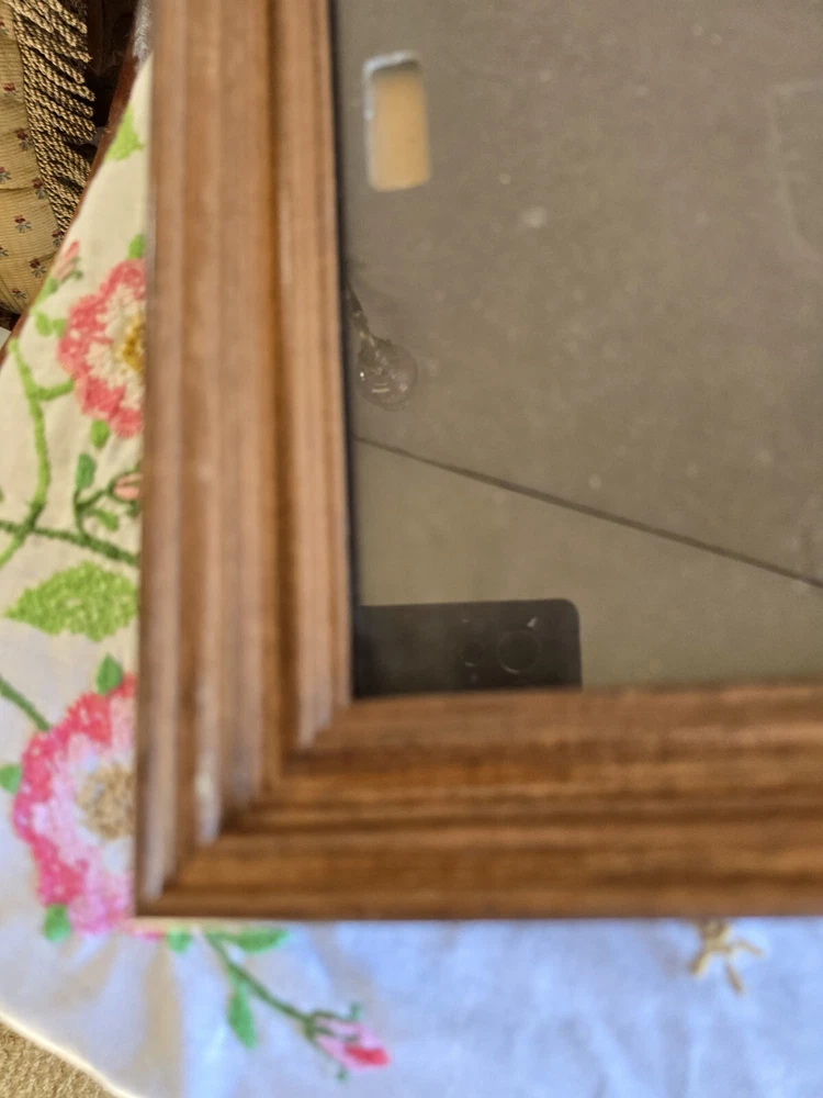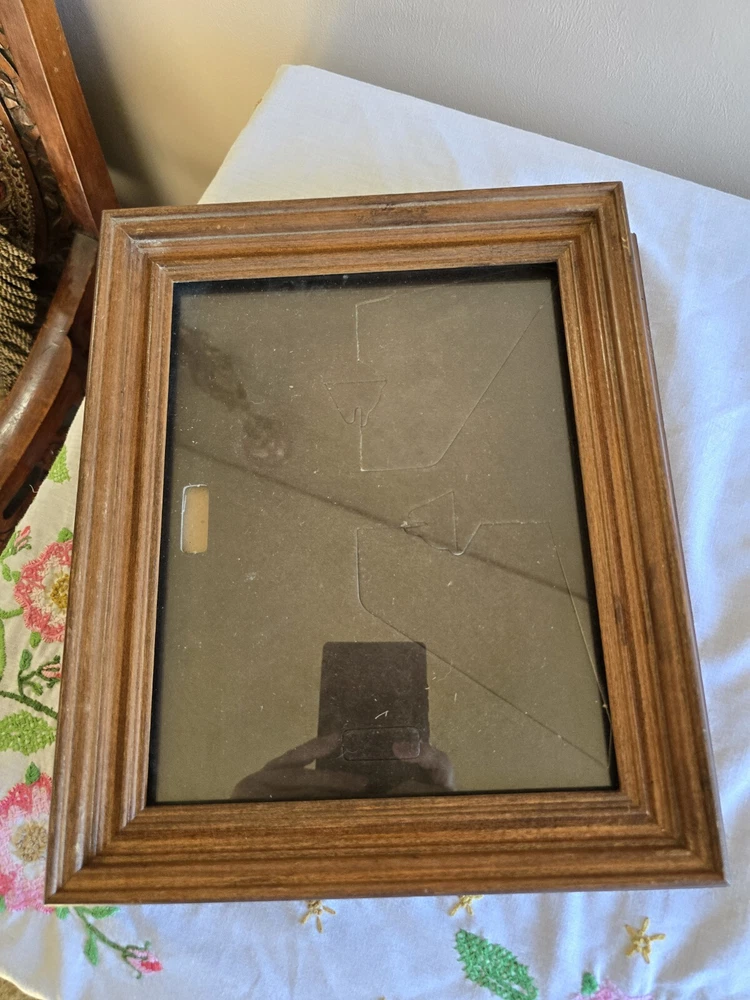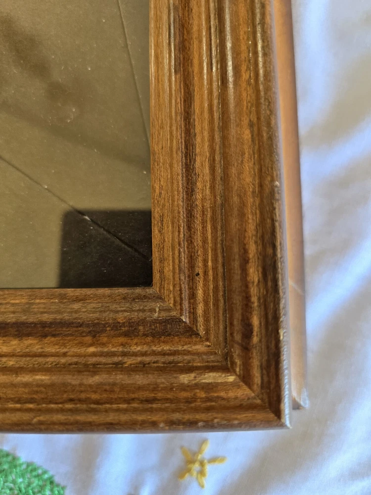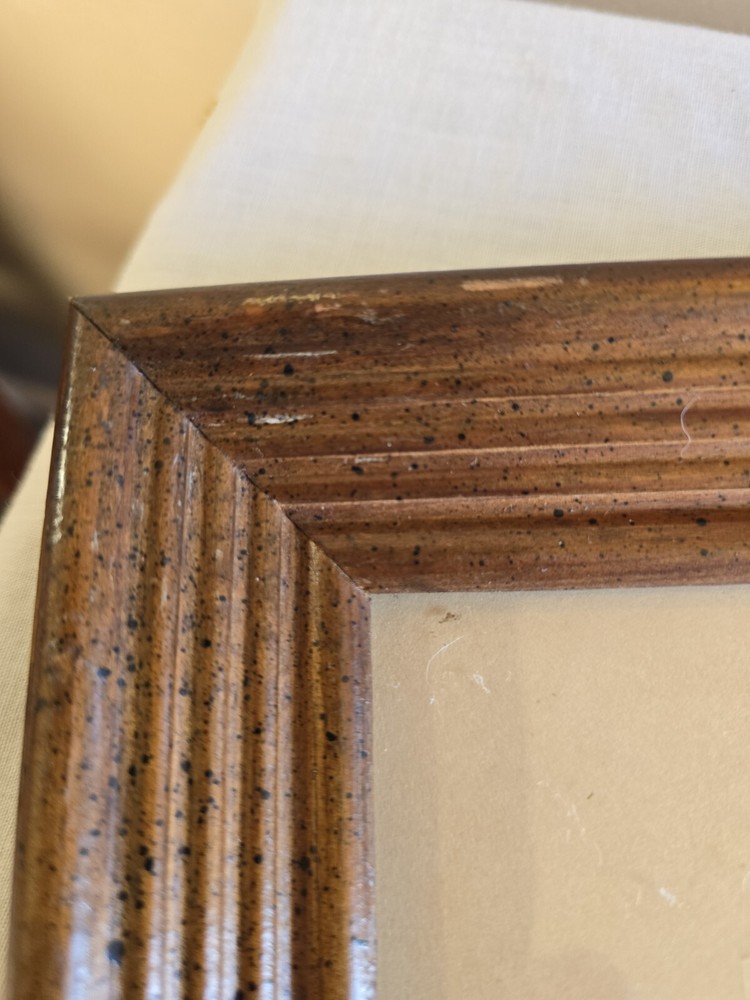 The frame have scratches. Both are the same size. 11-7/8 x 9-7/8 x 1-3/8 in 8 x 10 in 12-3/8 x 10-3/8 x 1-1/2 in 8 x 10 in