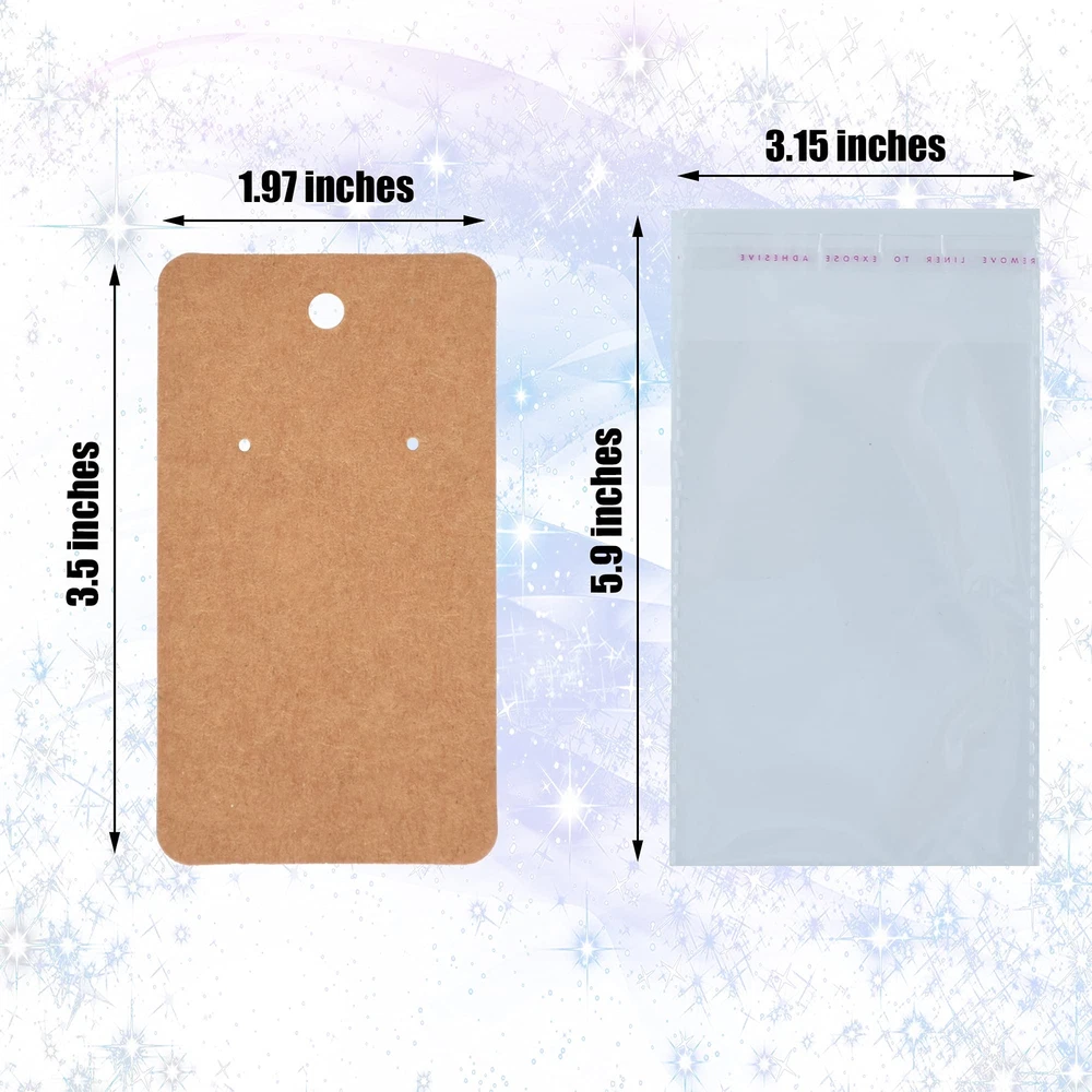 Earring Card Holder Set, 100Pcs Kraft Paper Earring Display Cards, 100 Pairs Clear Earring Backs with 100Pcs Self Adhesive Bags for Earrings Jewelry Display (Brown, 3.5" x 2") Bulk Supply: Package comes with 100pcs Kraft paper tags for DIY ear studs and earrings, 100 pairs transparent earring backs and 100pcs self seal bags for packing. You don’t buy them separately. Size: Each earring card measures approximately 3.5 x 2 inches. Perfect size for stud earrings, hoop earrings, tassel earrings and teardrop dangle earrings etc. Material: Made of solid thick Kraft paper, sturdiness, work great for displaying your earrings made to sell or organize. Easy To Use: Earring Cards comes with pre-cut holes, earrings and jewelries can be easily hung on . The blank areas allow you stamp your own logo or write your own information on such as product name, price or label etc. Wide Application: The Kraft hanging earring display cards are ideal for retail shops, trade shows, yard sales, and fairs, work great for displaying earrings or organize your jewelries. Size Information: Earring cards: 2 x 3.5 inches(5 x 9 cm) Self sealed bags: 3 x 5 inches (7.5 x 12.5 cm) Earring cards holder material: Kraft paper Color: brown Package Includes: 100 pieces brown earring display cards 100 pair earring backs 100 pieces self-adhesive bags Shipping We offer FREE shipping on all orders! We ship within Three business days of payment, usually sooner. We use a selection of shipping services such as UPS, FedEx, USPS etc. We only ship to the lower 48 states, no APO/FPO addresses or PO Boxes allowed. Local pickups and combined shipping options are not provided at this time. Return You can return a product for up to 30 days from the date you purchased it. Any product you return must be in the same condition you received it and in the original packaging. Please keep the receipt. Payment We accept payment by any of the following methods: PayPal Please pay as soon as possible after winning an auction, as that will allow us to post your item to you sooner! Feedback Customer satisfaction is very important to us. If you have any problem with your order, please contact us and we will do our best to make you satisfied. Contact Us If you have any queries, please contact us via ebay. We usually respond within 24 hours on weekdays. Please visit our eBay store to check out other items for sale! Thank you for shopping at our store.