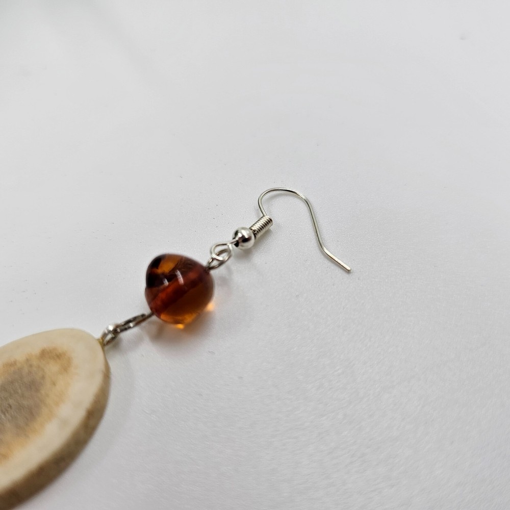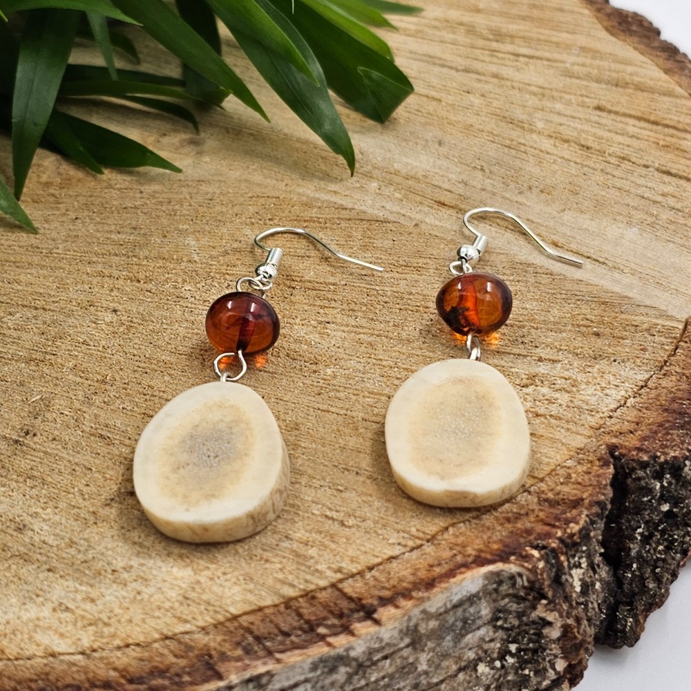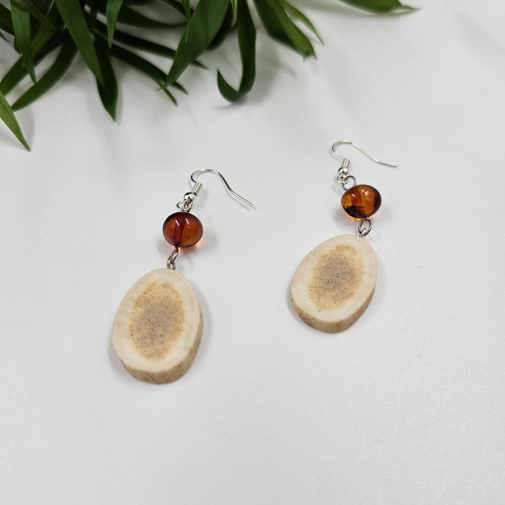 Deer antler earrings are a unique and stylish piece of jewelry that is perfect for any occasion. Inspired by the beauty of nature, these earrings reflect elegance and naturalness. They can be combined with a variety of outfits, from casual, ultra-comfortable clothes to elegant evening dresses. All products are handmade in Lithuania using real and natural deer antlers. We ship the products in beautiful packaging, so they are perfect as a gift for your loved one(s). Please note: this product is handmade from natural materials, which means that each product is unique and not identical, so the size and color may differ from the photos. Amber color: cognac. Product maintenance: avoid prolonged direct contact with water (especially water containing salt). Avoid fully submerging product in water.