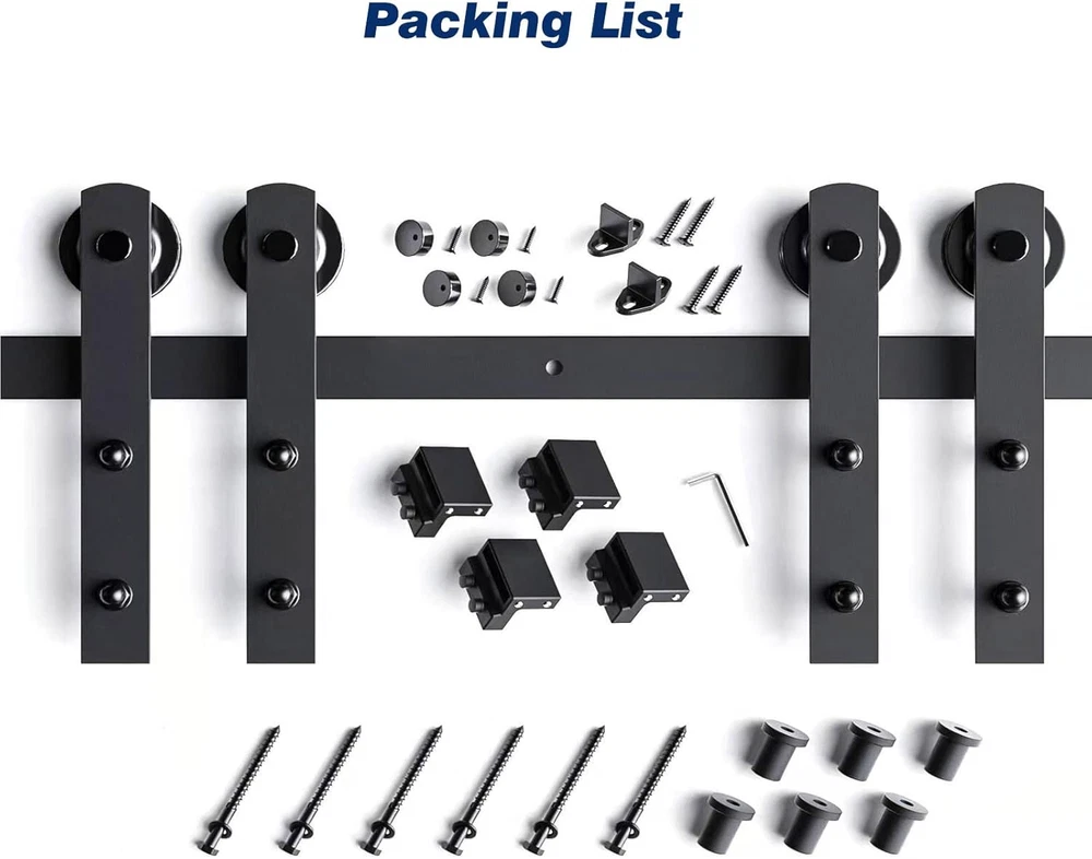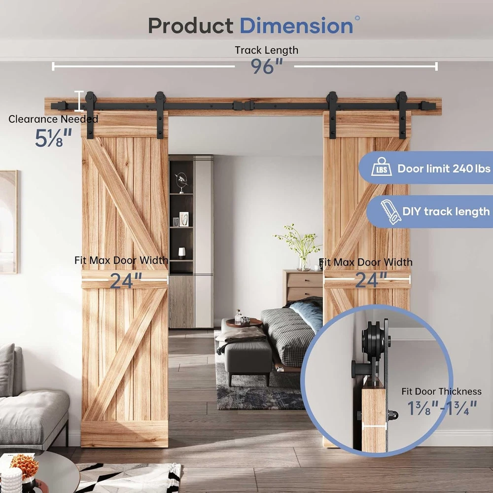 Size: 8FT-Double Door Kit Installation Method: Wall-Mounted Brand: EaseLife Manufacturer: EaseLife Part Number: 0106_244_2 Global Trade Identification Number: 00711176257821 Batteries Included?: No Item model number: BDH162442 UPC: 726084533042 Included Components: 2) 4ft Rail (6) Wall Hangers (4) Rollers (4) Door Stops (2) Floor Handle Material: Metal Usage: Commercial/Residential Style: Rustic Assembly Required: Yes Batteries Required?: No gtin13: 726084533042 Product Dimensions: 98.43 x 4.72 x 3.15 inches Color: Black Is Discontinued By Manufacturer: No Type: Does not apply Material: Iron Item Package Quantity: 1 Shape: I Shape Finish: Iron Pattern: I Shape Item Weight: 24.1 Pounds