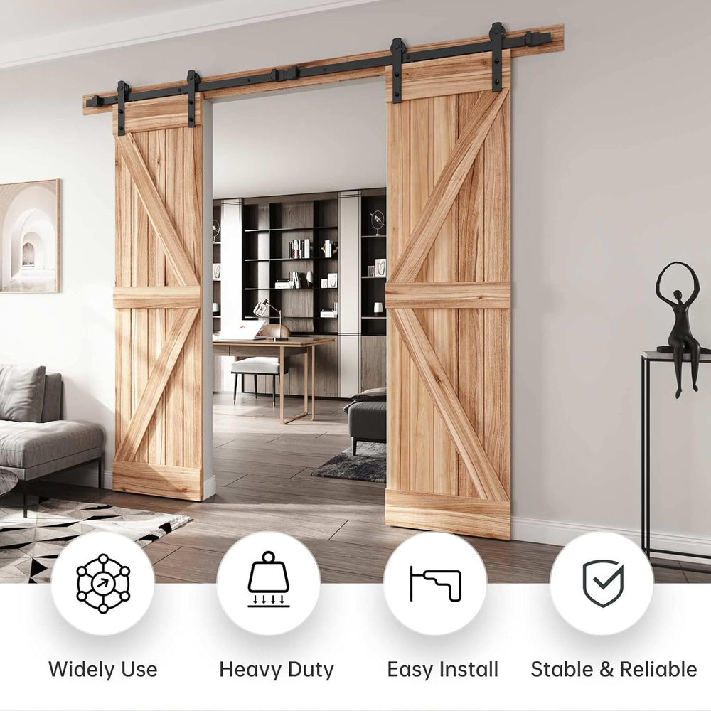 Easelife 8 FT Double Door Sliding Barn Door Hardware Track Kit,Straight Pulley,H