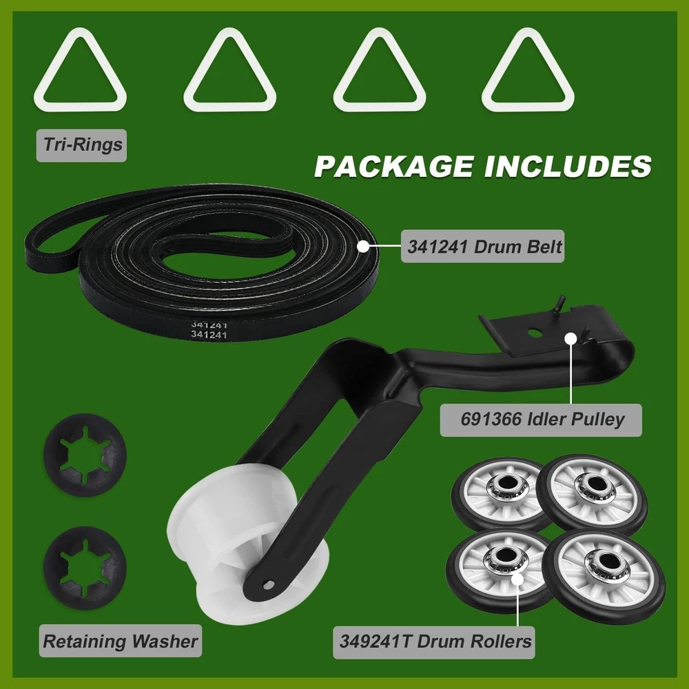 Easily Replace Dryer Drum Drive Belt, Rollers & Idler Pulley - 180-Day Warranty ‹ › ‹ › ‹ › ‹ › ‹ › ‹ › ‹ › ‹ › ‹ › Easily Replace Dryer Drum Drive Belt, Rollers & Idler Pulley 180-Day Warranty 🔧 Dryer Repair Kit Includes: 1 PC 341241 dryer drum drive belt (1/4 inches wide and 92 1/4 inches long, featuring 4 ribs and 3 grooves) 2 PCS 349241T Dryer rear drum support roller kit (with 4 pcs tri-rings and 1 pc retaining washer) 1 PC 691366 dryer idler pulley assembly (keeps tension on the dryer drum belt, designed to replace older teflon friction idler pulleys) 🔧 Perfect Replacement: This kit is designed as a replacement for numerous models, including: 279435 279436 279708 279709 279860 279948 26000279435 26000279436 ...and many others! 🔧 Easily Solve Many Dryer Problems: Is your dryer noisy, not tumbling, leaving marks on clothes, or refusing to start? Troubleshoot and fix multiple issues with ease: Remove the back and top of the dryer. Replace the bottom two rollers quickly. Drum roller keeps the drum in place while it rotates on support wheels. Installation is straightforward, saving you time and repair costs. For added efficiency, consider using a high-temperature lubricant during installation to minimize noise. 🔧 Not OEM but Meet OEM Standards: The high-quality dryer repair kit matches original manufacturer specifications and has been rigorously tested for performance. It is compatible with brands such as Kenmore and Whirlpool. If unsure about the compatibility with your dryer model, please don’t hesitate to reach out for assistance! 🔧 Buy with Confidence: Supported by a 180-day return and exchange policy, our professional after-sales service team is here to help. For any queries regarding the drum roller, belt, and pulley repair kit, contact us via Amazon email or through the Q&A section. We promise to resolve your concerns within 24 hours. Transform your drying experience today with our reliable repair kit! Shipping Free & Fast Shipping - We offer free shipping to most of the USA with a normal delivery time of 3-7 days. However, due to the current situation, additional delivery time (up to 3 weeks) may be required for some items. Alternative Carriers - We may use alternative carriers (e.g. USPS, FedEx, UPS, etc.) to ensure your package arrives safely and on time. Due to the use of multiple carriers, we are unable to provide a tracking number automatically. Handling Time - Orders are processed and shipped within 1-2 business days of receiving cleared payment. Shipping Restrictions - Shipping to Alaska, Hawaii, Puerto Rico, Guam, and other US territories may incur shipping charges or delivery restrictions. Please contact us before ordering, or your order can be refunded/cancelled. State Restrictions - There may be restrictions based on your state of purchase. For example, certain items may not be shipped to California due to state regulations. Contact for Tracking Updates - If you require tracking updates or have any concerns about the delivery of your order, please feel free to contact us, and we will be happy to assist you. Return 30-Day Hassle-Free Returns - We want you to be completely satisfied with your purchase. If you are not, you can return the item within 30 days of receiving it for a full refund or exchange. Easy Return Process - To start a return, simply contact us and we will provide you with a prepaid return shipping label and detailed instructions. Restocking Fee - There are no restocking fees for returns. However, the buyer is responsible for return shipping costs if the return is not due to a seller's error. Refund Processing Time - Refunds will be processed within 5 business days of receiving the returned item in its original condition. Payment We accept all major credit cards, PayPal, and Apple Pay for your convenience. Your payment information is secure and encrypted to ensure a safe and seamless transaction. Please complete your payment within 3 days of purchase to avoid any delays in shipping. Feedback Your feedback is extremely important to us. We strive to provide the best products and customer service possible. If you are satisfied with your purchase, please take a moment to leave us a positive review. If you have any concerns or issues with your order, please contact us before leaving negative feedback. We are committed to resolving any problems and ensuring your satisfaction. Contact Us If you have any questions or concerns, please feel free to reach out to our customer support team. You can contact us through the eBay messaging system. We are available Monday to Friday, 9:00 am to 5:00 pm EST, and we will do our best to respond to your inquiry within 24 hours. Buy it now and enjoy a pleasant shopping experience! UPC: Not Set Item Weight: 12.3 oz Unit Quantity: 1 Set Includes: Belt,341241 Drum Drive Belt,349241T Support Roller,691366 Idler Pulley Suitable For: Vented Dryer,Kenmore,Whirlpool,Maytag Compatible Model: Kenmore Features: Easy Installation,High Quality,Replacement Kit,Compatible with OEM Standards,Noise Reduction,Improved Design Brand: Unbranded Type: Dryer Repair Kit Power Source: Electric Color: Multicolor Model: Not Set Installation: Freestanding Capacity: Less Than 5 lb Compatible Brand: Not Set MPN: Not Set Number of Items in Set: 3 Material: Plastic Finish: Glossy Country/Region of Manufacture: Not Set Item Height: Not Set Item Width: Not Set Item Depth: Less Than 1 in Manufacturer Warranty: Not Set Power: 400 W or less Unit Type: oz