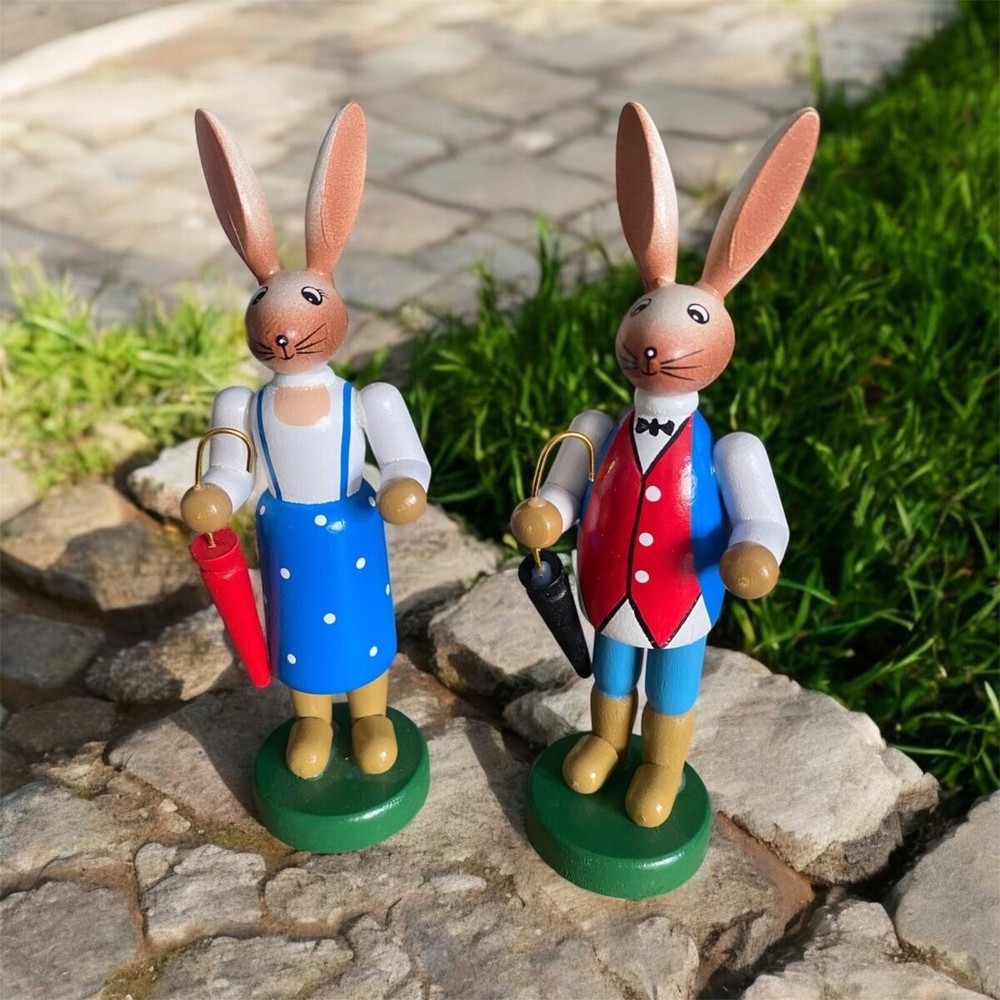 Handgefertigtes Osterhasen Paar aus Holz – 16 cm. Liebevolle Osterdeko als Set, klassisch bemalt und sofort dekorationsbereit. 🐰 Osterhasen Paar – handgefertigte Holzfiguren für Ostern Zwei Hasen, zwei Charaktere – und ganz viel Frühlingsgefühl. Dieses handgefertigte Osterhasen-Paar bringt traditionelle Osterstimmung auf Fensterbank, Tisch oder Sideboard. Mit ihren liebevoll bemalten Details und den kleinen Schirmen wirken die Figuren fast wie aus einer alten Frühlingsgeschichte – zeitlos, charmant und dekorativ. ✨ Details auf einen Blick Motiv: Osterhasen Paar (männlich & weiblich) Höhe: ca. 16 cm Material: Holz Ausführung: handgefertigt & bemalt Lieferumfang: 1 Set = 2 Figuren Ideal als klassische Osterdekoration , für Sammler oder als liebevolles Geschenk zur Frühlingszeit. Hinweis: Verkauf erfolgt als Set – nur 1 Paar verfügbar. 🌷 Mike & Kevin wünschen viel Freude beim Dekorieren und ein schönes Osterfest!