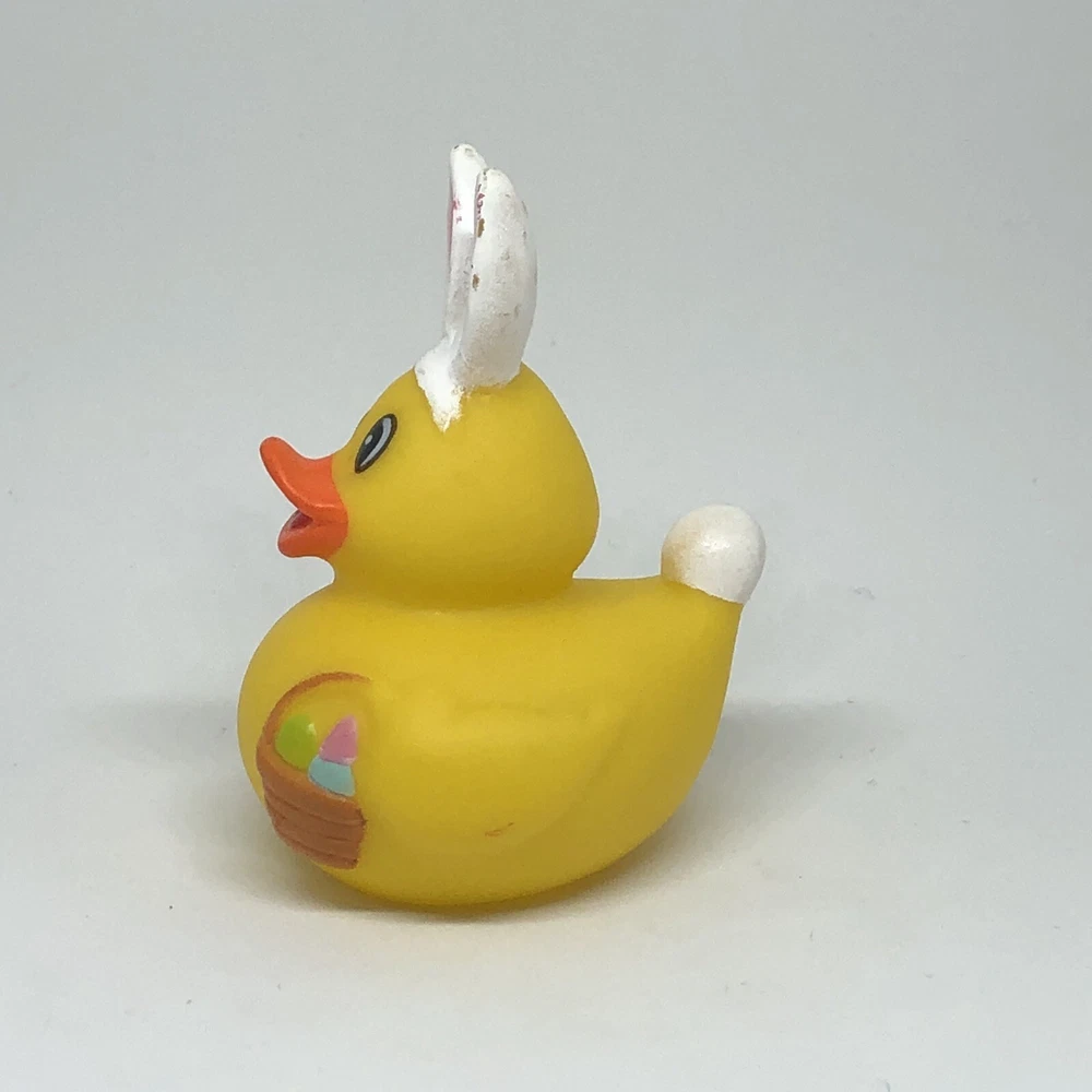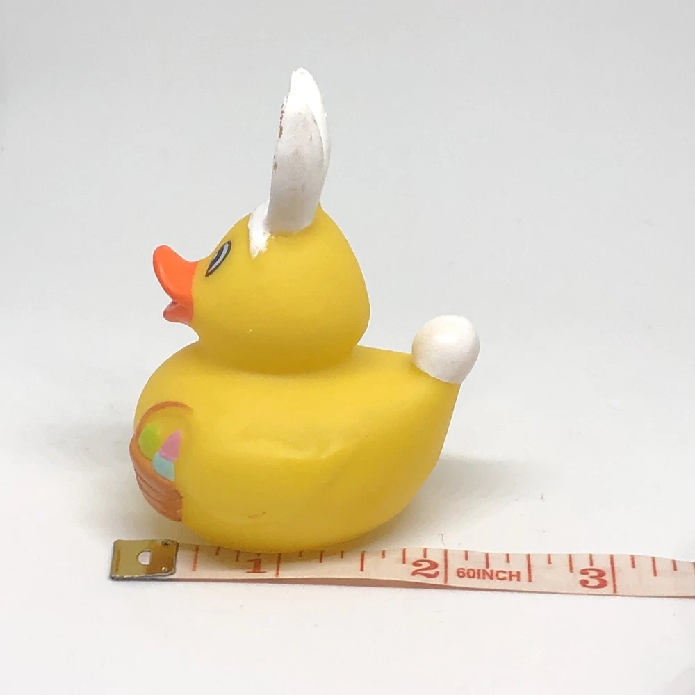 Easter Bunny Ears Rubber Duck 2” Duckie Holding Easter Basket Bath Pool Toy Note: Item has surface scratches/paint loss; shown in photo! Thank you for stopping by!