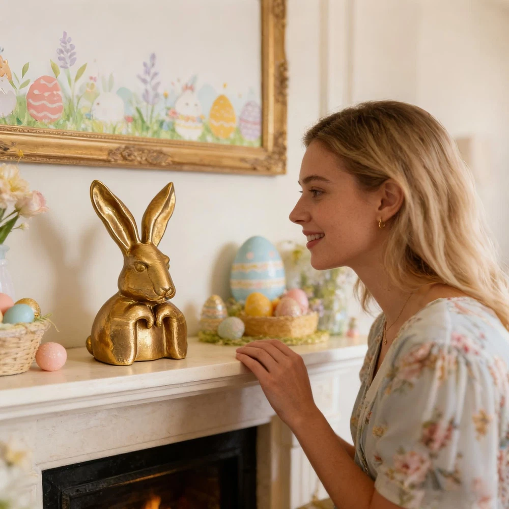 Easter Bunny Figurines, Bunny Decorations With Gold Finish Spring Desk Ornament Bullet Points: Sophisticated Style Statement: The Gold Bunny Figurine blends perfectly into home decor with its alluring vintage gold finish, enhancing atmosphere while adding refined charm that suits comfortable living spaces or celebratory setups during special occasions like Easter gatherings High-quality Material: The Gold Bunny Decor is crafted from excellent material that ensures long-term use and good durability, making it not easy to fade even with frequent handling or exposure to light; this quality enhances its appeal for festive displays and home decorations where lasting beauty is important Adaptable Placement: Gold Rabbit Decor boasts a well-proportioned design that fits seamlessly into diverse environments, offering the flexibility to decorate small areas like bookshelves or larger spaces such as living rooms with equal ease and elegance Wide Range of Uses: Featuring adaptable placement, the Easter Bunny Statue fits beautifully on dining tables, entryway cabinets, shelves, desks, and mantels, creating a delightful focal point that elevates your home's ambiance in multiple settings Great Present: Easter Rabbit Figurines function as a charming holiday gift for family or friends, elevating the spirit of Easter and housewarming celebrations by infusing warmth and festivity into homes with their adorable workmanship The Spring Rabbit Desk Ornament is a charming gold bunny figurine designed to enhance your home decor during the Easter holiday season and beyond. This delightful ornament serves as a perfect accent piece for various settings, including your living room, bedroom, desk, shelf, dining table, mantel, or entryway cabinet. Its elegant design adds a festive touch to parties and gatherings while complementing your everyday interior style. Crafted with attention to detail, this bunny ornament captures the playful yet sophisticated spirit of springtime decor. Ideal for gifting or personal use, it brings warmth and character to any space where it is displayed. Whether used as a centerpiece or an accent piece, this rabbit ornament seamlessly blends into both seasonal and year-round arrangements. Elevate your home ambiance with this timeless decoration that celebrates the joy of the holiday season and the beauty of thoughtful design. Specification: Product name: Gold Bunny Figurine Material: ABS Product size: about 22cm/8.66 inches Product List: 1 * Gold Bunny Figurine Notes: Due to different lighting and screen settings, the product color may be slightly different from the picture. Due to the difference in manual measurement, please allow a 1-3cm difference in size. 1.You can make a Credit payment via Paypal.Paypal will let you use MasterCard,Visa to pay. 2.Payment should be completed within 5 days after auction closed, or unpaid dispute will be filed for an closing auction.An unpaid case will be filled after 4 days. ● We strive for 100% customer satisfaction ! ● Positive Feedback is very important to us. ● We hope that you contact us immediately BEFORE you give us neutral or negative feedback, so that we can satisfactorily address your concerns. ● We promise to offer the lowest price and high quality produce. Dear buyers : ● Welcome to my store ! ● Your satisfaction is our top goal,we appreciate your patronizing. ● If you have any questions, please contact us before leave negative or neutral feedback, we will try our best to solve the issue to your satisfaction, thanks ! ● If you are satisfied with our service, please rate the details of the transaction (Detailed Seller Ratings) on eBay. ● Please always talk to us via ebay Message. ● We appreciate your business and look forward to growing our e-Bay sales with satisfied customers.