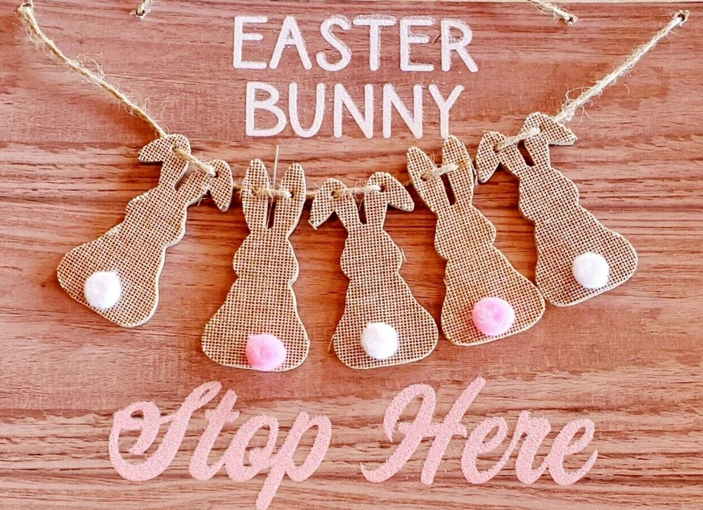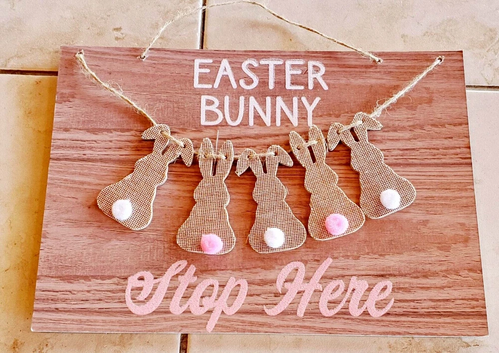 I ALWAYS SHIP NEXT DAY OR SAME DAY SO YOU CAN GET YOUR ITEM FASTER THAT'S INCLUDING WEEKENDS AS WELL I COMBINE AND REIMBURSE ALL COMBINED SHIPPING Welcome the Easter season in style with this charming Easter Bunny Stop Here Clothesline Bunnies Sign. Crafted from high-quality MDF/Chipboard and hand-painted with a beautiful finish, this sign is perfect for both indoor and outdoor use. Measuring 13 inches in length and 10 inches in width, this sign features an adorable pattern of Easter Bunnies and is ready to hang on any wall. Featuring a variety of features like textured and decorative finishes, this sign is sure to be a hit in any room of your home. Whether you're decorating for Easter or just love the cuteness of bunnies, this sign is a must-have. Add a touch of handmade charm to your décor with this one-of-a-kind Easter Bunny Stop Here Clothesline Bunnies Sign.