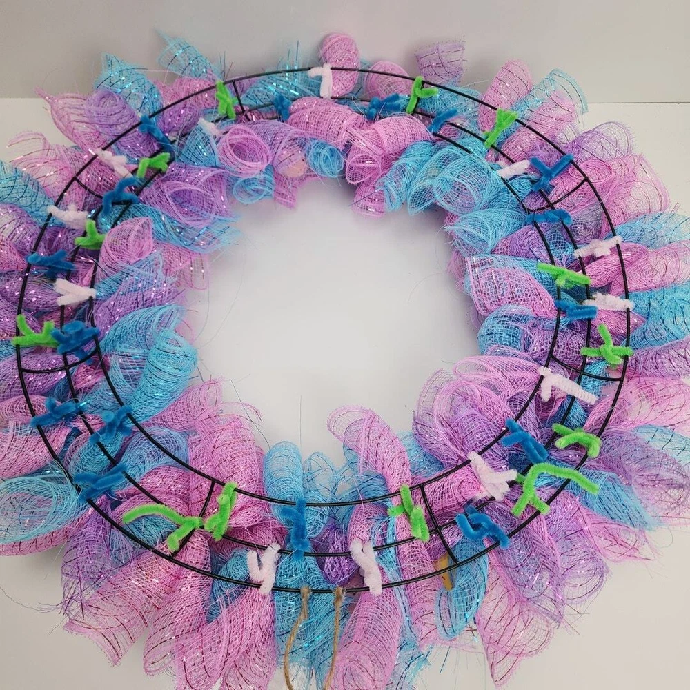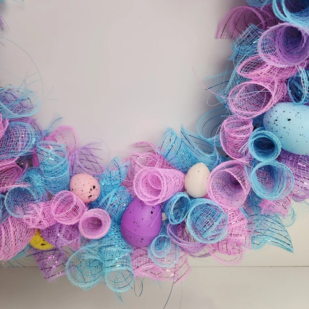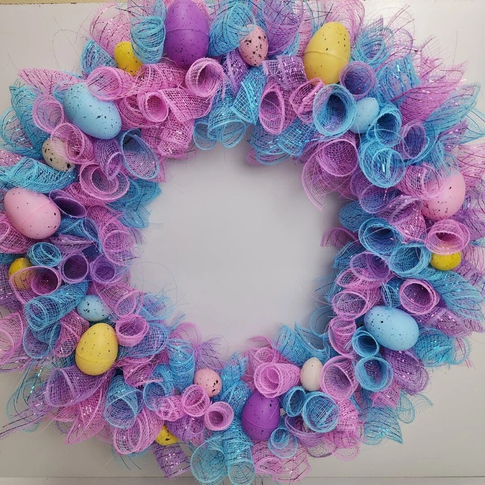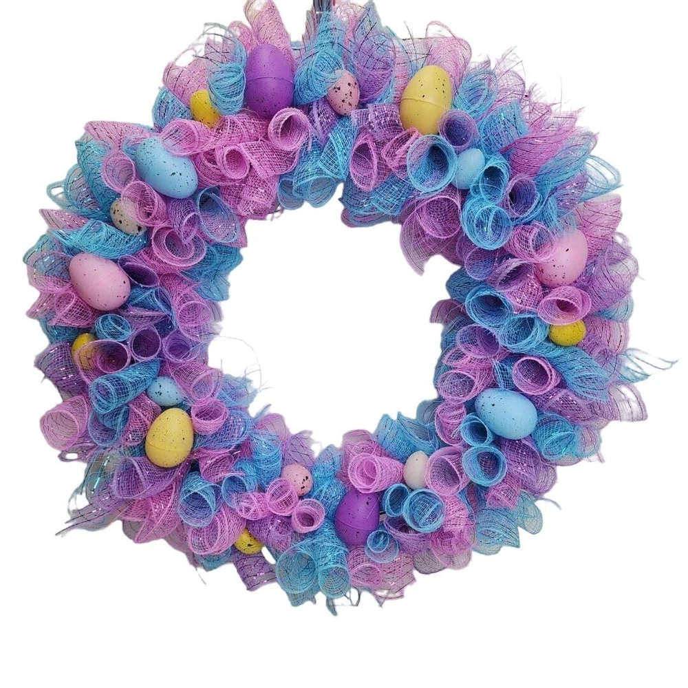 Easter Egg Deco Mesh Welcome 18" Round Wreath Blue, Purple, Pink, Yellow & White * BRAND: Local Artist * COLORS: Blue, Purple, Pink, Yellow & White * SIZE: 18" Round DECORATED: 24" * DETAILS: Beautiful deco mesh 3 colored ribbons w/ colored Easter eggs. Perfect addition to a front door and the envy of your neighbors! Pre-Owned / Used: A product that has been used previously. View our listing for full details in our description and check out our photos provided. If there are any imperfections, it will be noted in the description and/or within the provided photos. We appreciate you looking at our listing. Before placing an order, feel free to ask any questions you may have about this item. Upon receiving your order, if you are not satisfied with your order, please contact us and we will address any issue.