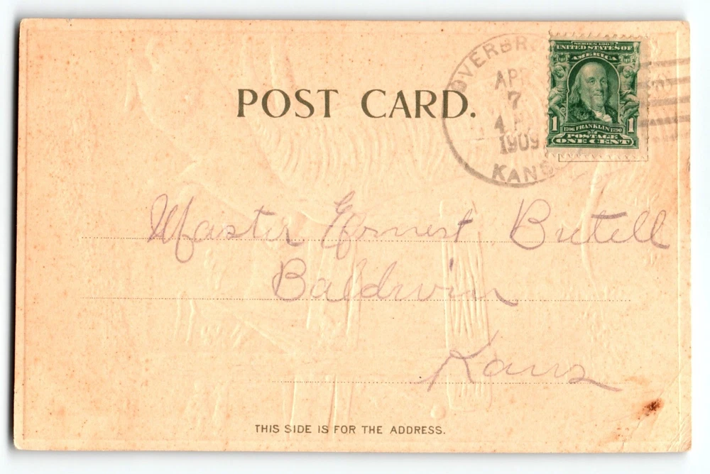 Posted with 1909 cancel. Antique original vintage post card. Has faint writing on front bottom edge, corner creases, and age wear. Stock #eas334. Additional postcards are in our store. All post cards are old originals and may or may not have writing on back.