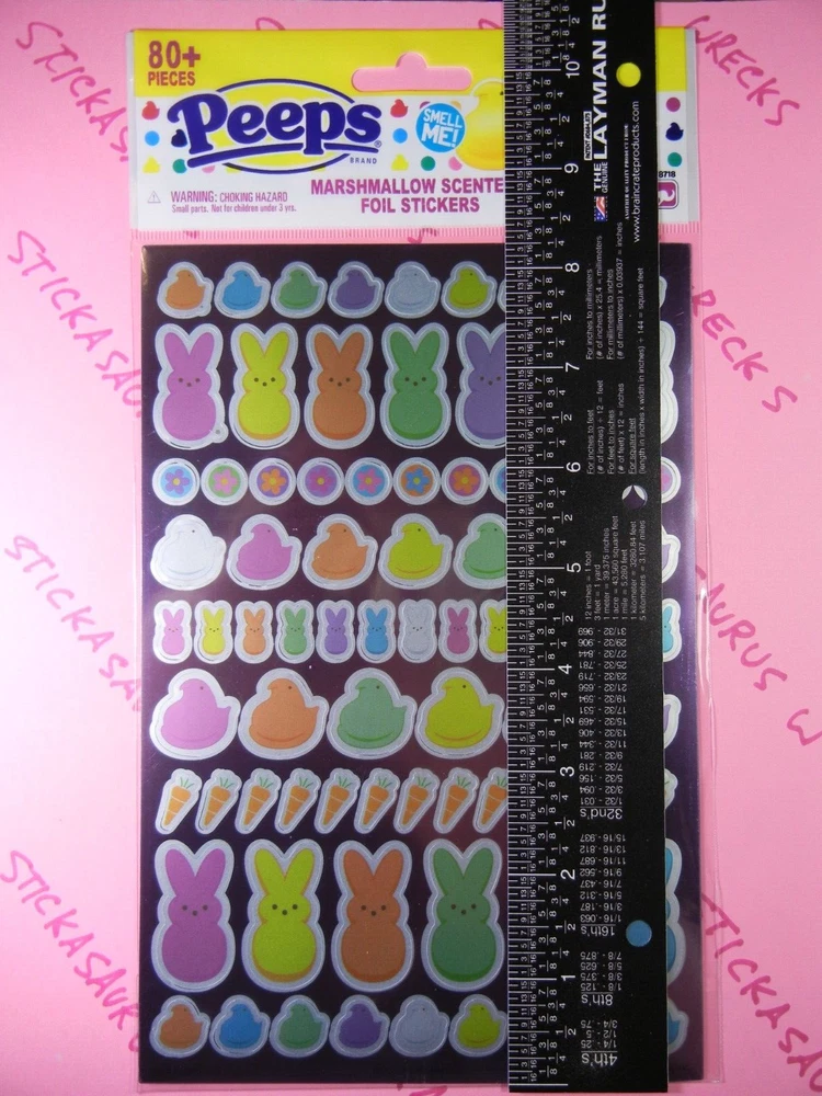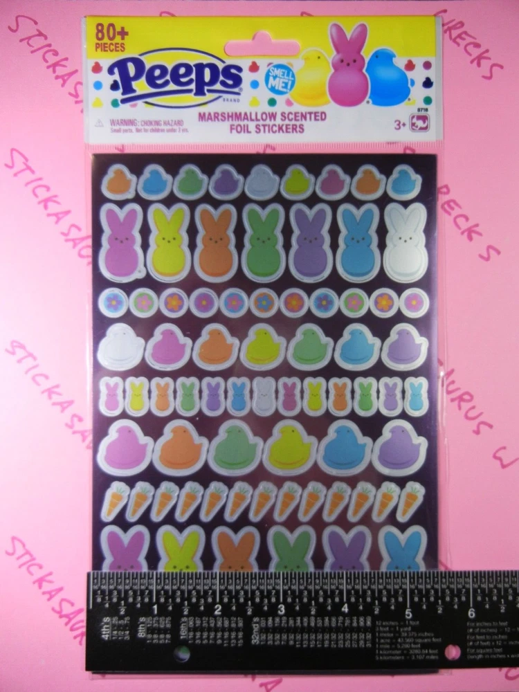 Sticker Pack Is New. Sticker Pack Contains 1 Sheet. Sticker Theme Is Easter Peeps Marshmallow Scented Foiled Sheet. When Purchasing Multiple Sticker Sheets Or Packs Please Add All Items To Cart Before Purchase So That Your Purchase Combines Down To Base Shipping Price.