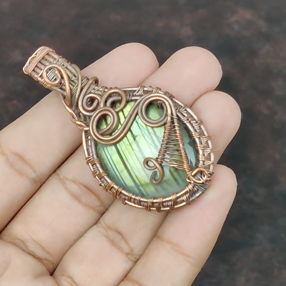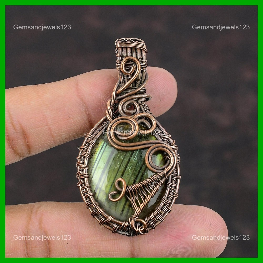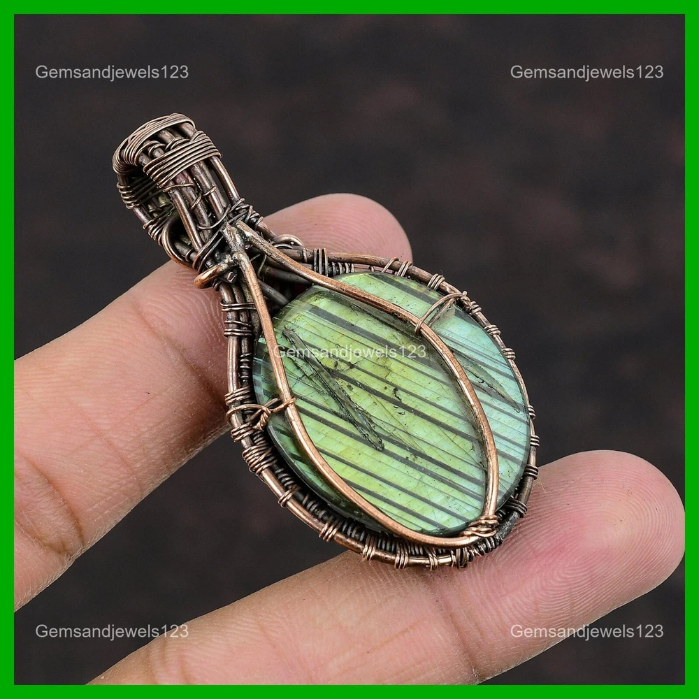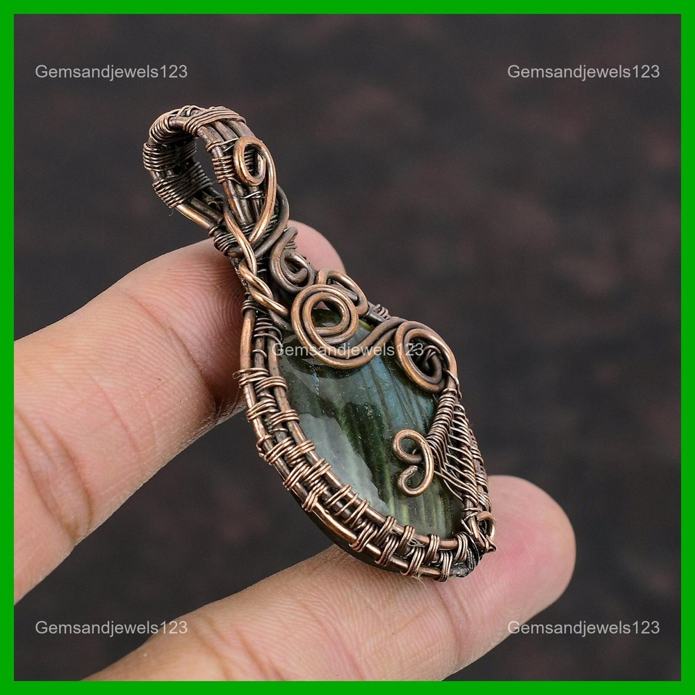 Note : Due to the natural formation of this gemstone. Slight Variation in design and color are to be expected. Welcome to gemsandjewels123 Easter Deal Copper Oval Labradorite Gemstone Wire Wrapped Handcrafted Pendant Handmade Pendant, Wire Wrapped Pendant, Wire Wrapped Jewelry, Copper Pendant, Copper Wire Pendant, Wrapped Jewelry, Wire Wrap Pendant, Wire Wrap Jewelry SKU : VFWP-347 Gemstone : Labradorite Stone Shape : Oval Metal Purity : Unknown Copper Length : 60 Millimeters Width : 32 Millimeters Copper has been used for jewelry making for thousands of years, dating back to ancient civilizations such as the Egyptians, Romans, and Aztecs. Copper was valued for its beauty, versatility, and durability, and was often used to make everything from jewelry and coins to cookware and tools. In addition to its historical significance, copper jewelry also offers several benefits. Copper is a natural conductor of heat and electricity, which makes it ideal for energy healing and therapeutic purposes. Wearing copper jewelry is believed to have various health benefits, such as improving circulation, reducing inflammation, and boosting the immune system. Some people also believe that copper jewelry has the ability to balance energy and improve mood. For Mother's Day Gift For Father's Day Gift For Promise For Valentine's Day For Halloween Party For Christmas Day Gift For New Year Party For Mom For Her If you can't find the information you need or need some advice for your design? Feel free to contact us. We are fast to reply :) All our work is made by hand with Love and Care in our workshop Thank you so much for visiting and hope you enjoy shopping with us gemsandjewels123 is committed to delivering the best quality sterling silver jewelry to customers. As a handmade jewelry manufacturer, we offer an extensive selection of copper gemstone jewelry that showcases the brilliance of our craftsmanship. We are an experienced handmade jewelry supplier with expertise in embellishing gemstones to suit every style. We offer you the liberty to create your jewelry ensemble with sparkling, earthy, and pure gemstones. Our Talented artisans masterfully handcraft each piece of jewelry you see here. Our pieces are made with genuine gemstones. The one-of-a-kind piece you see here is the same exact piece you will receive.