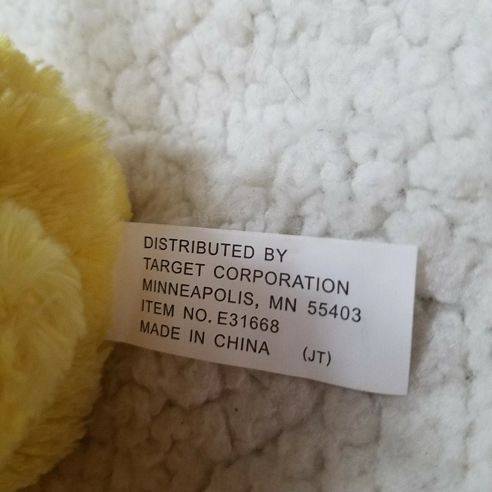 Recommended Age Range:3+Animal:DuckBrand:TargetCharacter Family:Duckgtin13:Does not applyOccasion:EasterUPC:Does not applySize:Mini (Under 6 in)Type:PlushCountry/Region of Manufacture:ChinaColor:Yellow