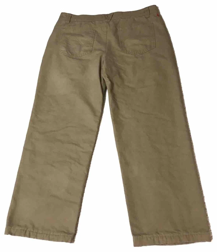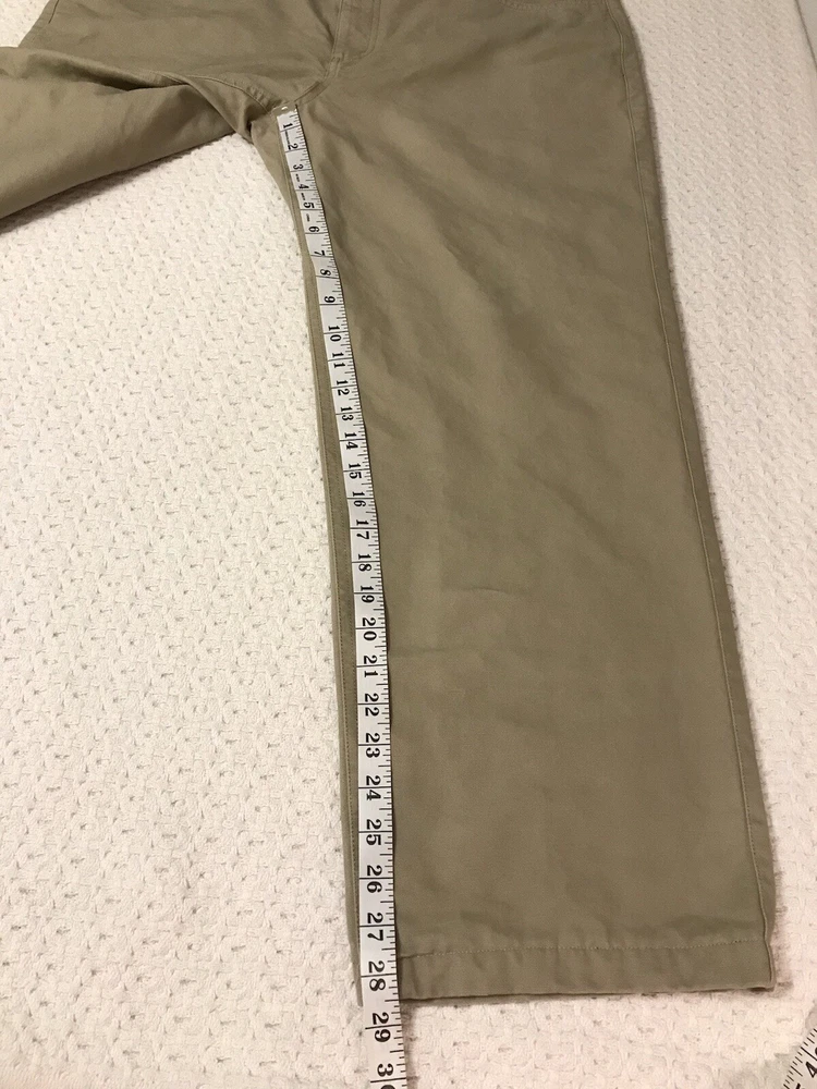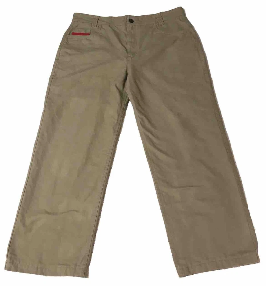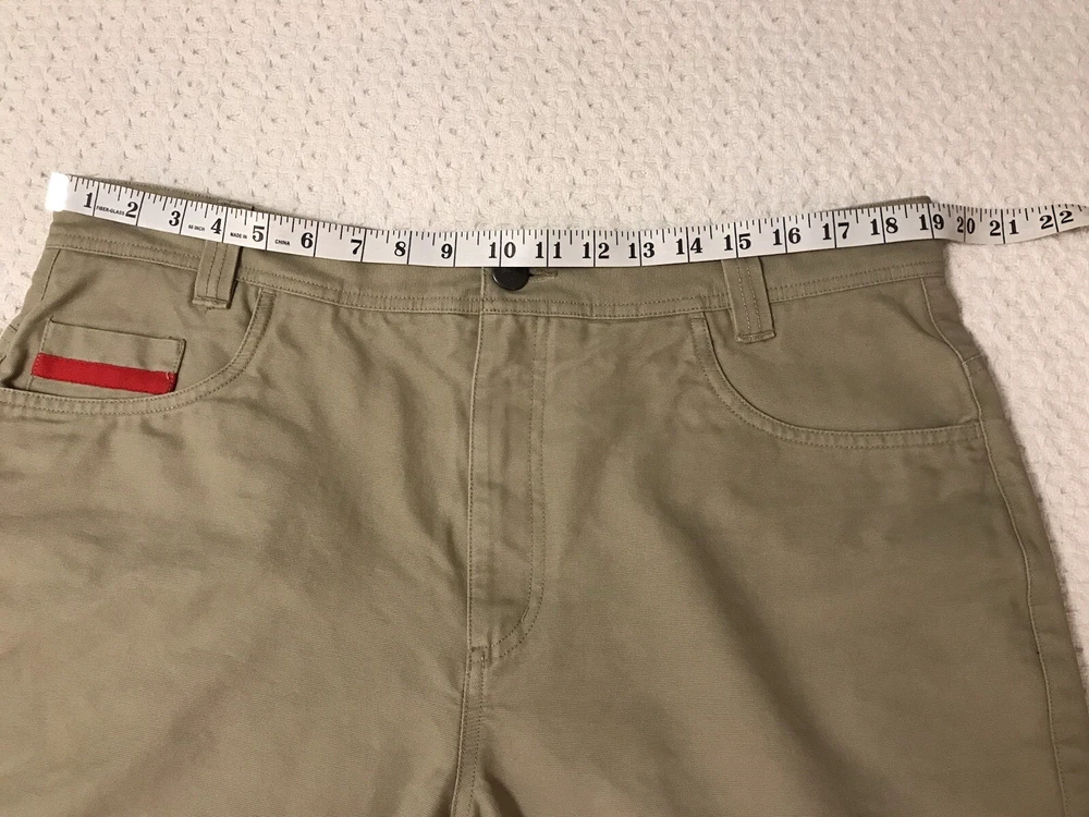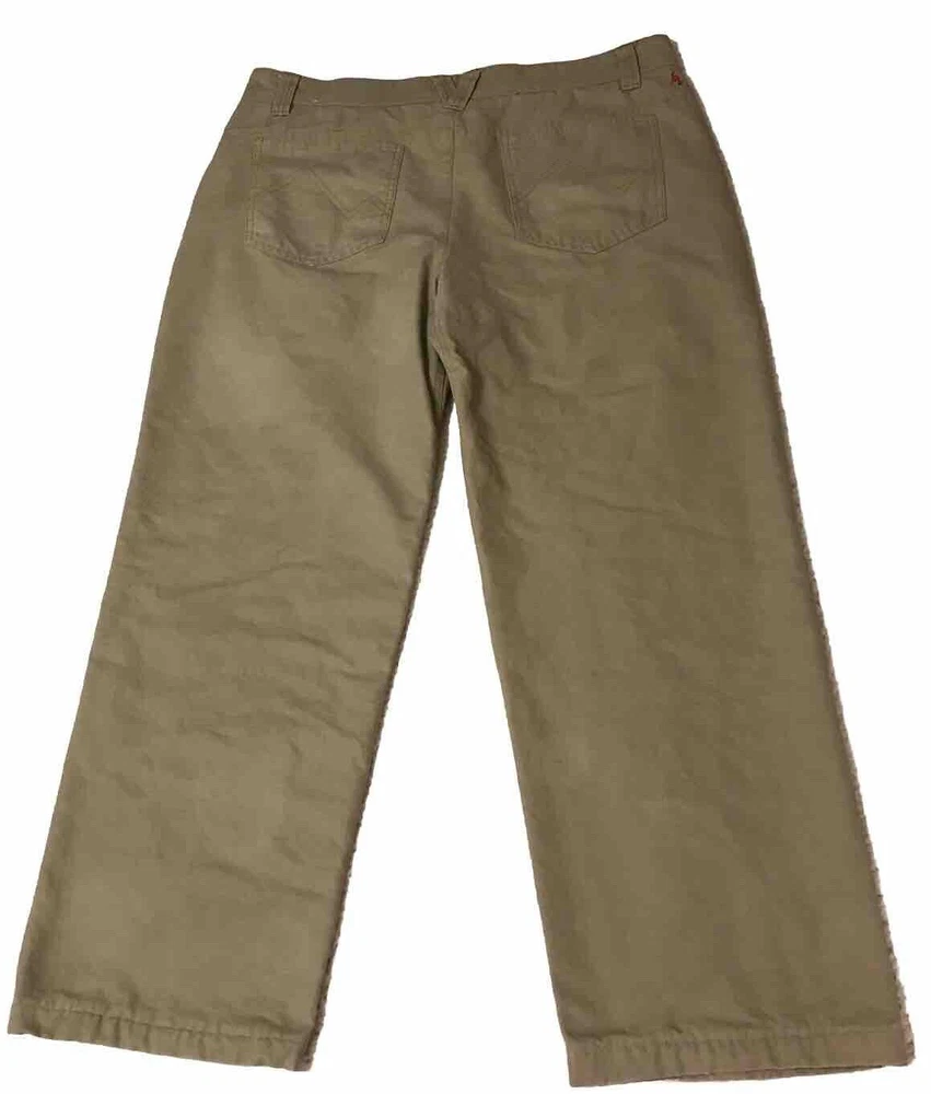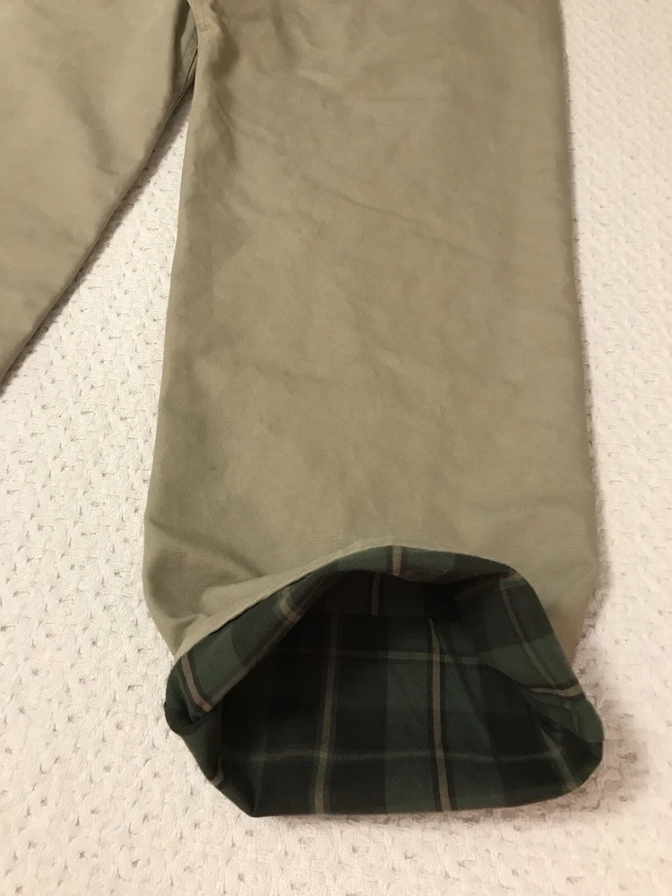 *** Preowned … Some very, very mild usage marks are possible.**** These Eastern Mountain Sports pants are perfect for any outdoor adventure. With a solid pattern and khaki tan color, they are versatile enough to wear for travel, work, or casual occasions. The pants have a relaxed fit and a straight leg style, with a flat front and 5-pocket design. Made of comfortable cotton material and flannel lined for added warmth, these pants are perfect for winter, fall, and spring seasons. They also feature breathability, and easy care for added comfort. The pants are a 38 inch waist with a 28 inch inseam. They are a high rise of 13 inches. Get ready for your next hiking or outdoor trip with these stylish and practical pants. In a smoke free home. No tears or holes. The garment size tag is incorrect. The actual measurements in the photos are 38W x 28L.