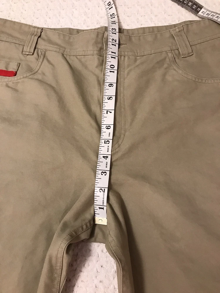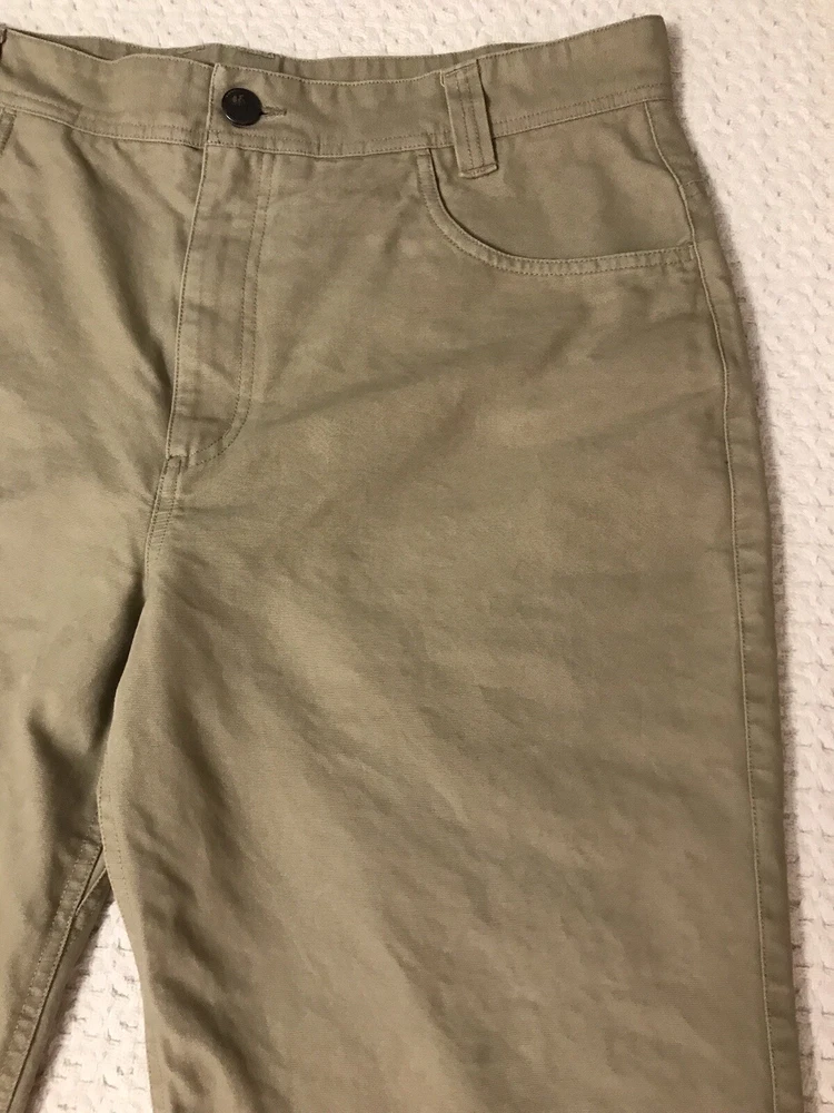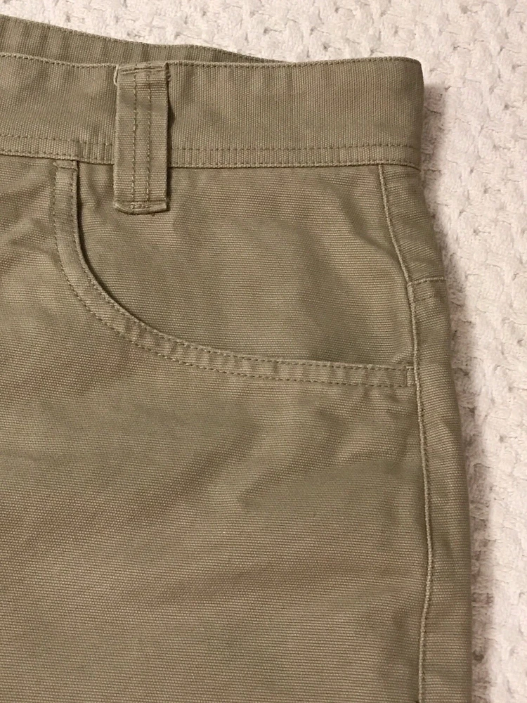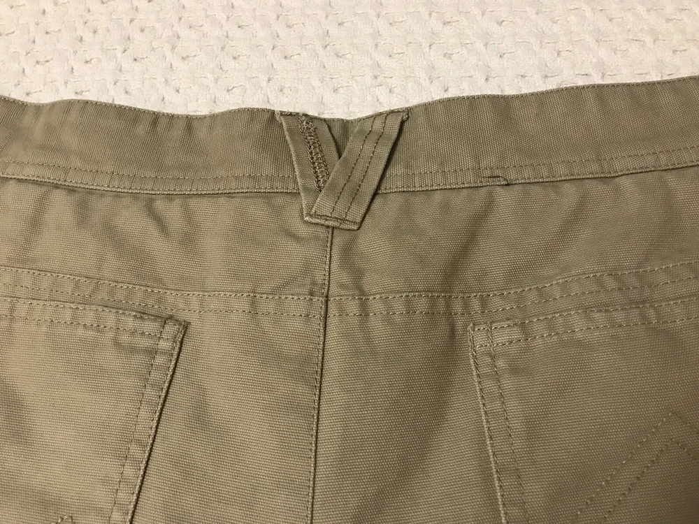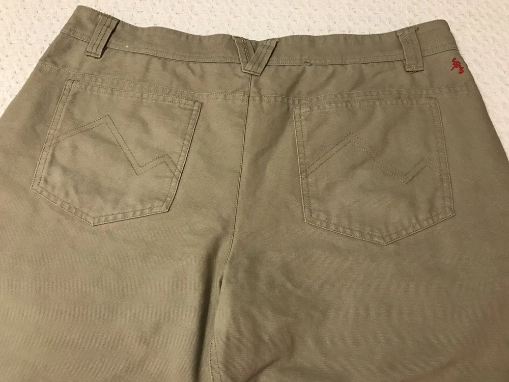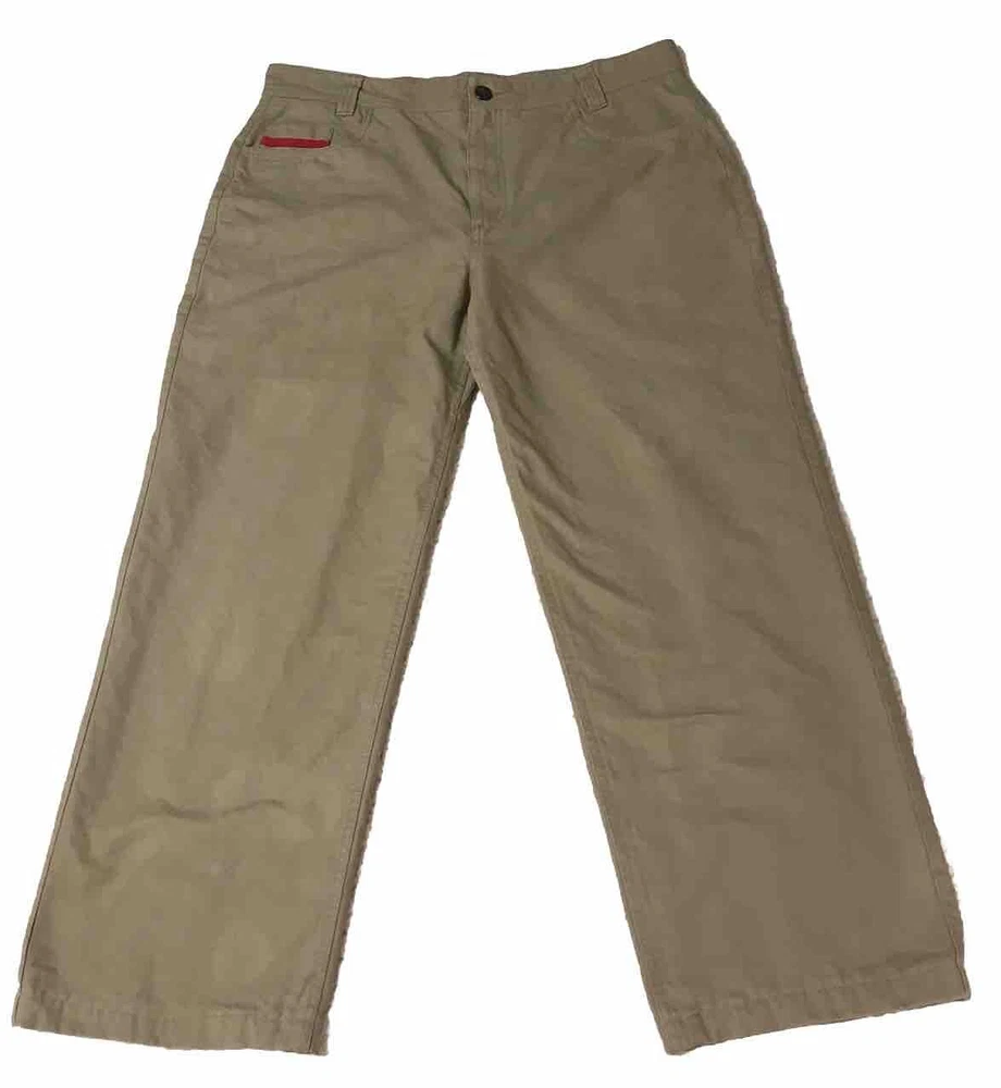 *** Preowned … Some very, very mild usage marks are possible.**** These Eastern Mountain Sports pants are perfect for any outdoor adventure. With a solid pattern and khaki tan color, they are versatile enough to wear for travel, work, or casual occasions. The pants have a relaxed fit and a straight leg style, with a flat front and 5-pocket design. Made of comfortable cotton material and flannel lined for added warmth, these pants are perfect for winter, fall, and spring seasons. They also feature breathability, and easy care for added comfort. The pants are a 38 inch waist with a 28 inch inseam. They are a high rise of 13 inches. Get ready for your next hiking or outdoor trip with these stylish and practical pants. In a smoke free home. No tears or holes. The garment size tag is incorrect. The actual measurements in the photos are 38W x 28L.