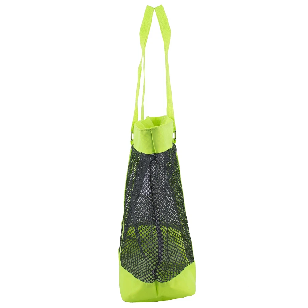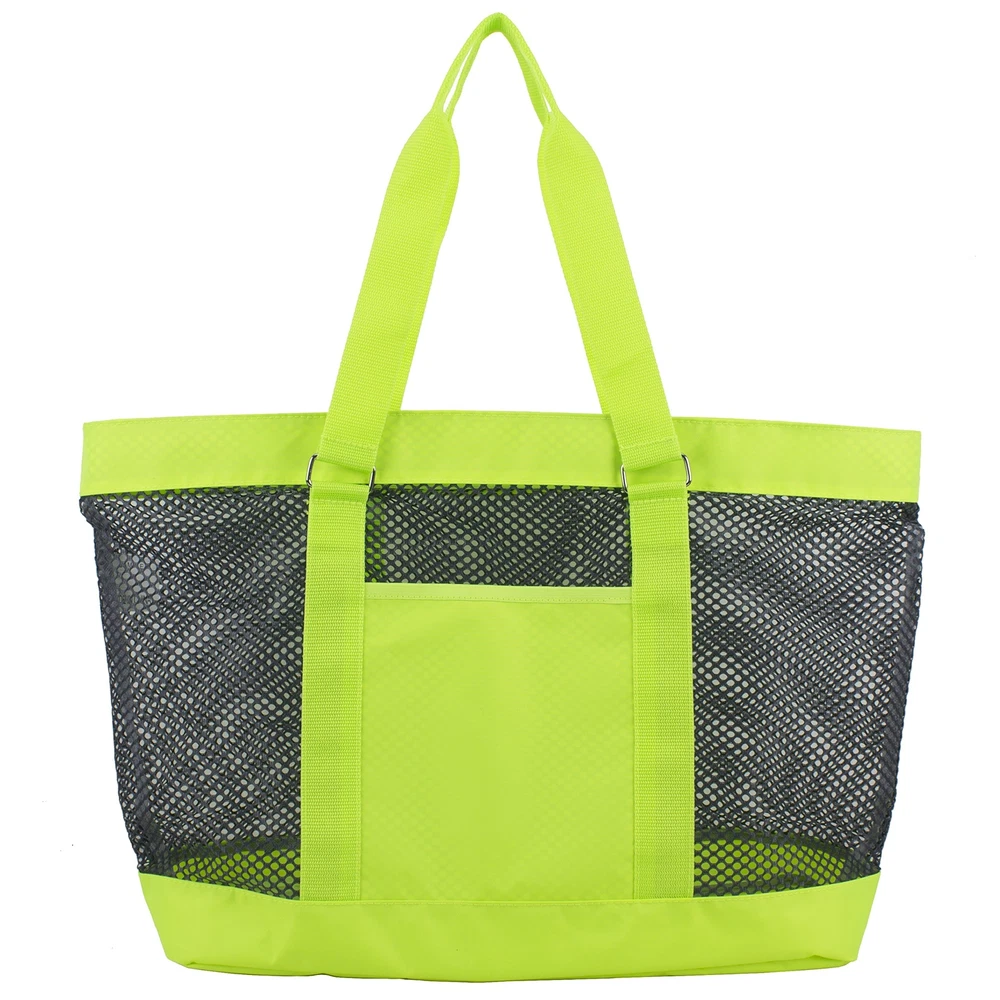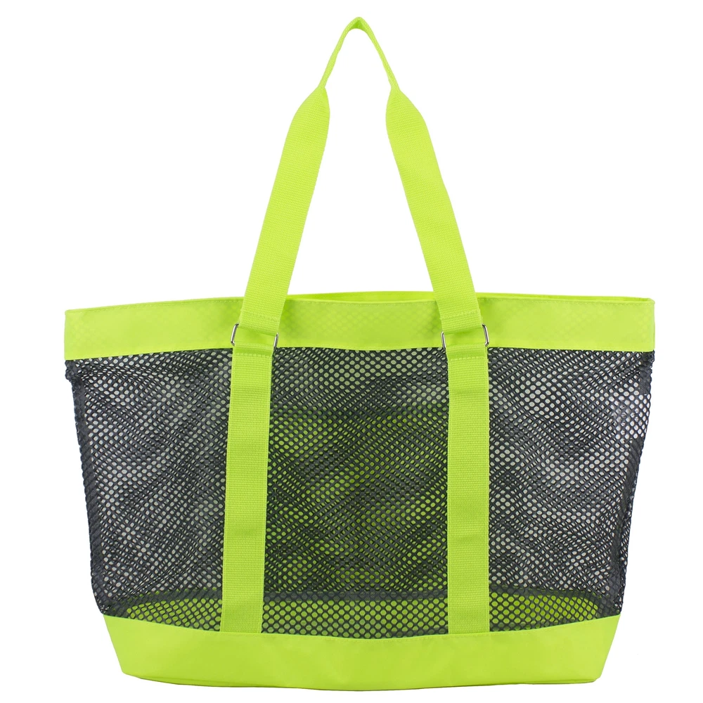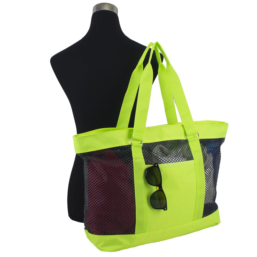 Go for the casual, eye-catching fun Mesh Beach Tote Bag. This cool women's tote is constructed of sturdy polyester in a bright Coral shade that's a transparent Graphite mesh pattern throughout the body, with a thick, solid-colored polyester mesh reinforcing the base and double straps. The solid pocket keeps your valuables out of sight. It has a metal magnet closure to fully secure items. You can use this cool mesh tote as a purse or to carry anything you need for the day-beachwear, towels, books, extra clothes, or anything else you can think of. Spacious main storage compartment Reinforced front storage drop pocket Zipper closure for secure storage on the go Breathable mesh lightweight construction