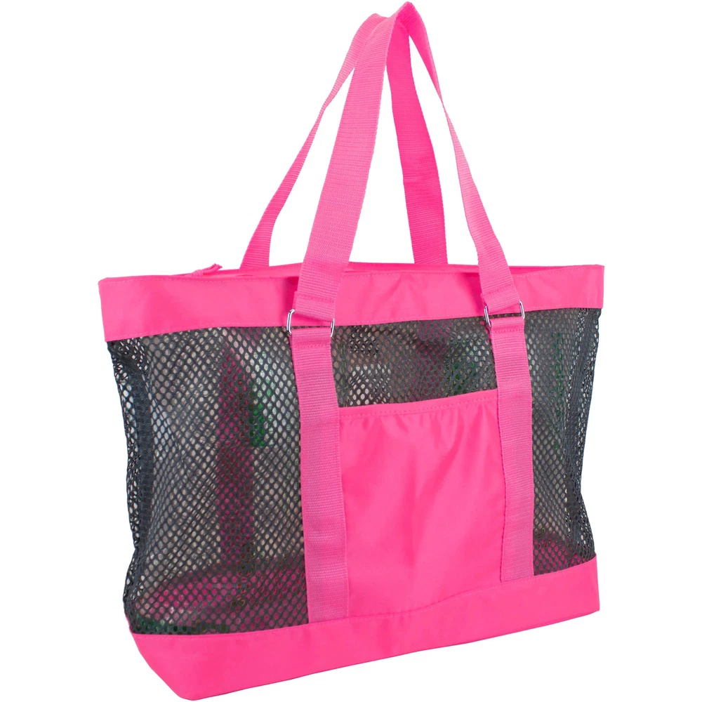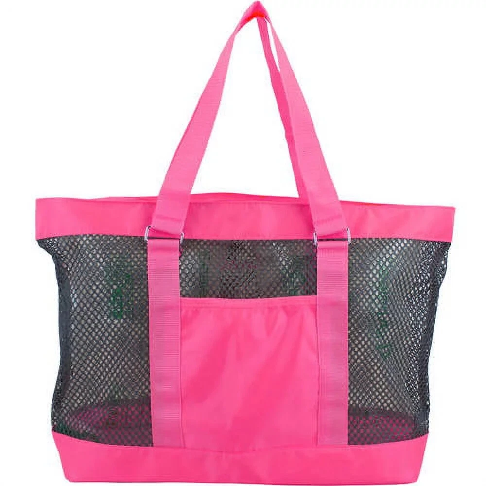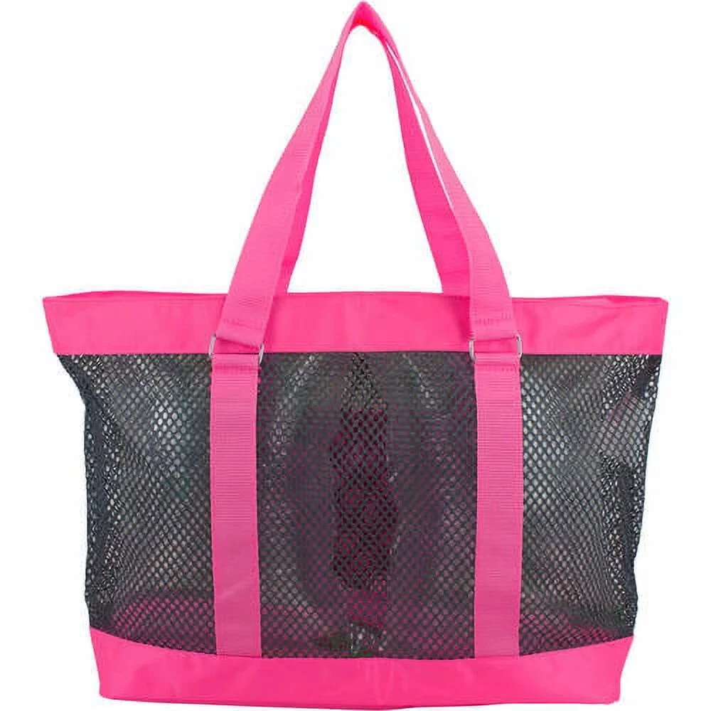 Eastsport Neon Mesh Beach Tote Bag - Pink/Gray