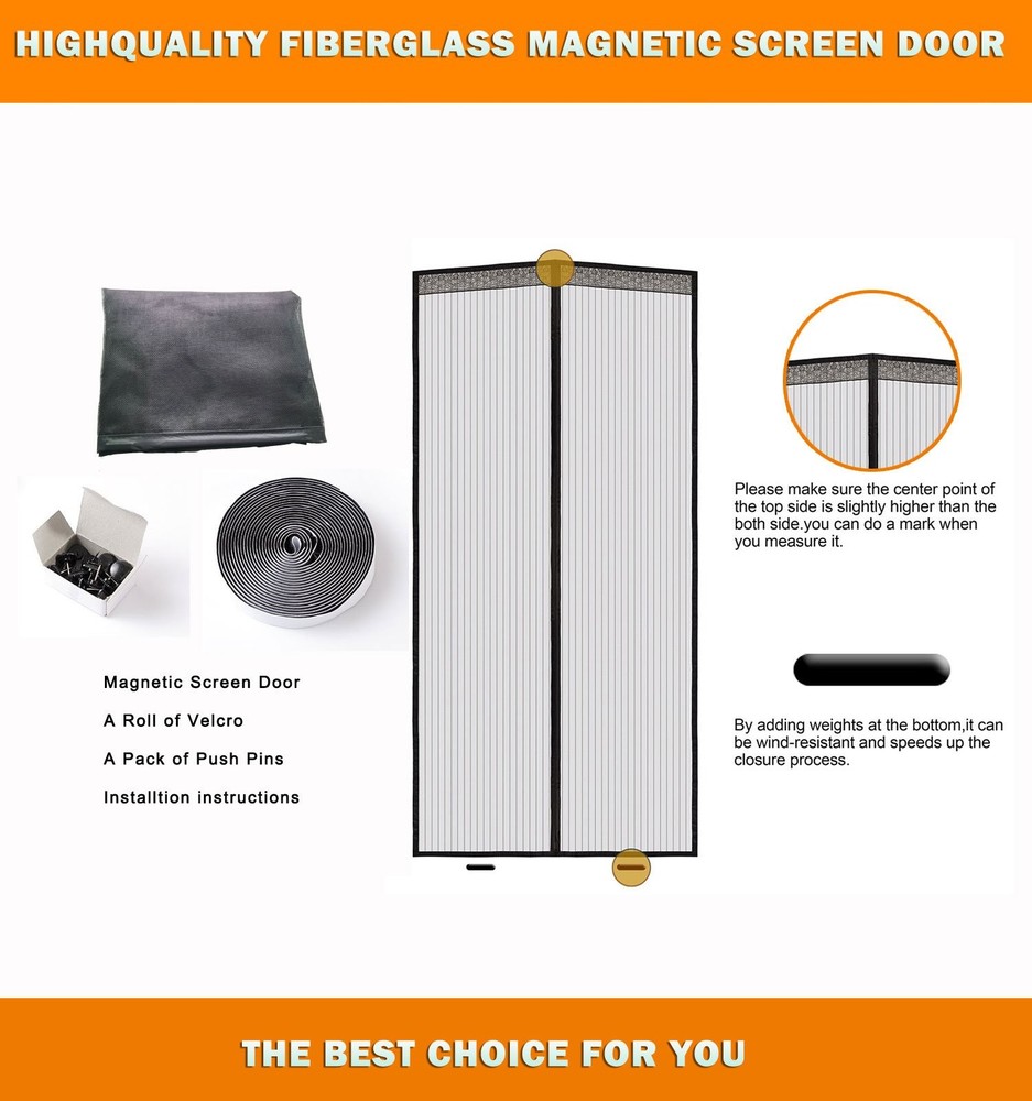 Magnetic Screen Door, Make Your Life Easier.Let fresh air in and friendly for kids and pets to pass through freely. All the necessary hardware are included(screen door, Installation Instructions and a pack of push pins.) Automatic open and close, and free your hands. The magnetic screen door will close the door very quickly after walking through, so do not need to worry about the wind will be blew your screen door. Magnetic Screen Door makes your life more comfortable and easier. If you love cooking out back on the grill, have pets or kids that are always running in or out, or just need a little hands-free way to get it in and out of your while your hosting friends, then there’s nothing better than this Magnetic Screen Door. Tips for Purchasing: Magnetic screen door can only resist normal blowing. Due to special technology treatment on raw material, product has stronger resistance on tensile fource. Before product use, Please keep it under sunshine or airy environment for 1-2 days. Thanks! More reasons to choice magnetic screen door: Easy to install remove ,No tools required. Instantly opens, magically closes. New material, durbale and rugged:The screen door made of fiberglass is the strongest screen door on the market. Protection Baby Protection for your family Made of premium quality materials Mesh Premium Magnetic Screen Door by uses the strongest materials and a superior manufacturing process. Screen for door door screen door net screen door magnets door net door screen door magnetic magnetic screen door porch screen sliding door screen screens for sliding glass doors retractable. Superior Design: Experience the convenience of a pet-friendly, fiberglass magnetic screen door that allows easy entry and exit for kids and pets Effortless Installation: With included hardware, instructions, and push pins, installing this screen door is a breeze and requires no additional tools Advanced Magnetic Technology: Benefit from automatic opening and closing, ensuring a secure and wind-resistant seal, making your life more comfortable and hassle-free Durable and Rugged Material: Constructed with high-quality fiberglass, this screen door is built to last, providing long-term protection for your family and home