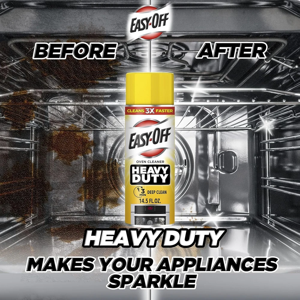 Easy Off Heavy Duty Oven Cleaner, Destroys Tough Burnt on Food and Grease, Lemon Scent, 14.5 oz Can Product Details Is Discontinued By Manufacturer : No Product Dimensions : 2 x 2.3 x 1.1 inches; 14.5 ounces Item model number : 62338-87979 Department : Health and Household Manufacturer : Reckitt Benckiser Commercial Brand: Easy Off Item Form: Spray Scent: Lemon Specific Uses For Product: Ovens,Doors,Pans,Oven Item Volume: 14.5 Fluid Ounces ddd Made in the USA HEAVY DUTY OVEN CLEANER: Specially formulated to penetrate tough, burned-on grease and food in as little as 3 minutes MULTIPURPOSE: Use to clean ovens, oven doors, barbecue grills, broilers, broiler pans and stainless-steel surfaces FOR OCCASIONAL DEEP CLEANING: Great for occasional deep cleaning or everyday tough spot cleanings. Use on warm or cold surfaces EASY TO USE: Just spray on the stain, wait, and wipe Easy-Off Heavy Duty Oven Cleaner is specially formulated to penetrate tough baked-on grease and food spills in as little as 3 minutes! Great for occasional deep cleaning or everyday tough spot cleanings. Effectively cleans warm or cold ovens. Ideal for cleaning ovens, oven doors, barbecue grills, broilers, broiler pans, and stainless steel surfaces. Cook with passion. Clean with Easy-off!