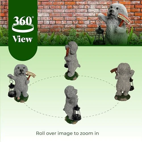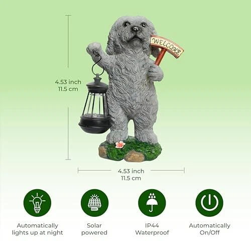 Return Policy Fast Delivery Trusted seller EasyLivingCo. Resin Dog Statues/Sculptures Home, Outdoor, Garden Decor with Solar Light Ornaments for Patio, Lawn, Balcony, Decoration, Unique Gifts Product Description ?【Beautiful Housewarming Gift and Outdoor Decoration】The dog statue with solar lantern is not only suitable for garden decor and home decor, but also the best gift for families, Mothers Day, Fathers Day, Thanksgiving Day, Valentine’s Day and Christmas. It would make unique gifts for parents and gift for grandma. ?【Easy to Use】Simply switch the lantern ON and leave it “ON” during the daytime. The solar panel will charge during the daytime hours and light up automatically at night. The LED will fully charged within 6-8 hours and will light up for 8-10 hours. ?【Dog House Decor】The thoughtful dog, holding a lantern in his right hand and welcome sign with his left hand, with a welcoming guesture really a fun gift and applicable for various home decor gifts scenarios. The size of this figurine is 4.53X4.33X7.64 inches. ?【Water Proof】The dog house decor statue with solar lantern statue is made of high quality resin, hand painted and coated with UV protection, it is durable and can withstand all weather conditions. Suitable for outdoor decorations, lawn ornaments, porch decor, t is no need to worry about weather. ?【100% Satisfaction Guaranteed】 If You Aren't Completely Satisfied with Our Outdoor Statues, Simply Contact Us within 30 Days of Purchase and We Will Easily Resolve the Issue. Shipping Returns Payment Shipping Shipping is FREE to all addresses other than APO/PO boxes in the lower 48 states. All our stock ships from US-based warehouses. Shipped via USPS or UPS (depending on location and package weight) Unless stated otherwise, all orders will ship within 24-72 hours of your payment being processed. Check our feedback to see the great reviews of FAST shipping we offer. Returns Seller does not accept returns Payment We currently accept payment via eBay managed payments only. Once payment is cleared, we will dispatch your shipment within 1-3 business days. Please refer to the "Shipping" tab for more information regarding shipping speed to your destination.