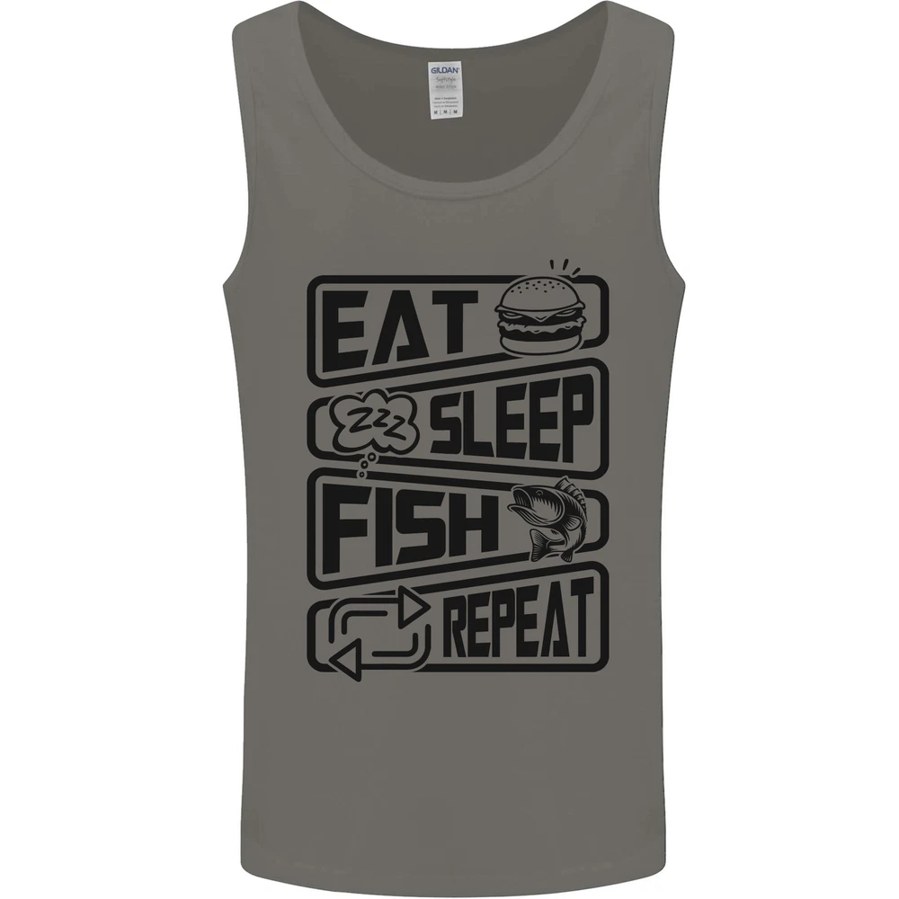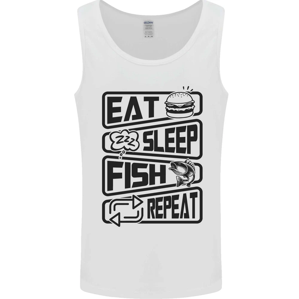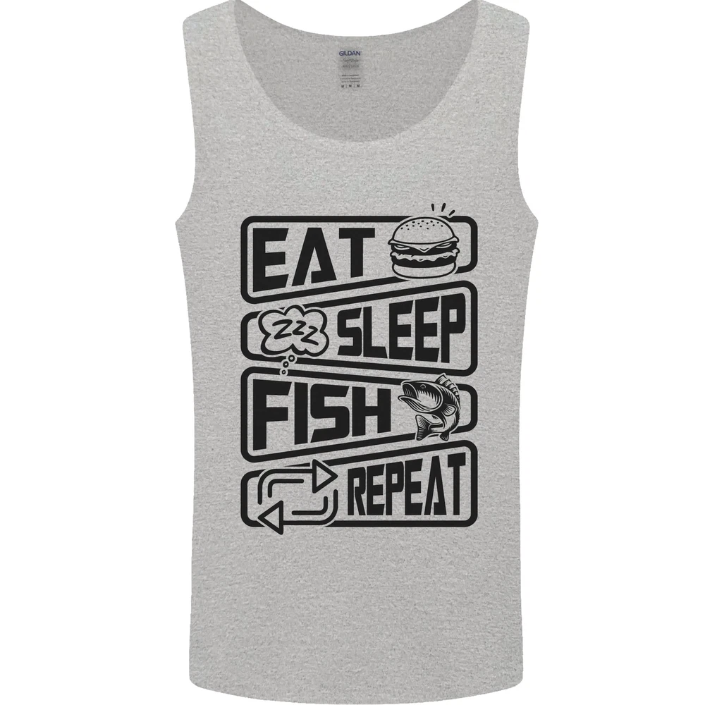 Eat Sleep Fish Repeat Funny Fishing Mens Vest Tank Top