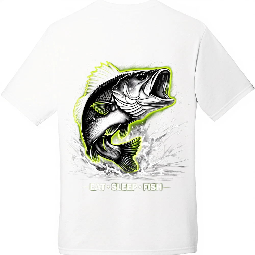 The clean, bold bass graphic with neon outline delivers a powerful yet subtle statement, perfect for everyday wear and casual street style. Crafted from lightweight, breathable cotton jersey, it’s ideal for warm summer days, beach walks, or casual fishing outings. Classic crew neck and unisex sizing make it suitable for men and women alike, transitioning seamlessly from casual outings to fishing adventures. Available in black and white for versatile styling.
