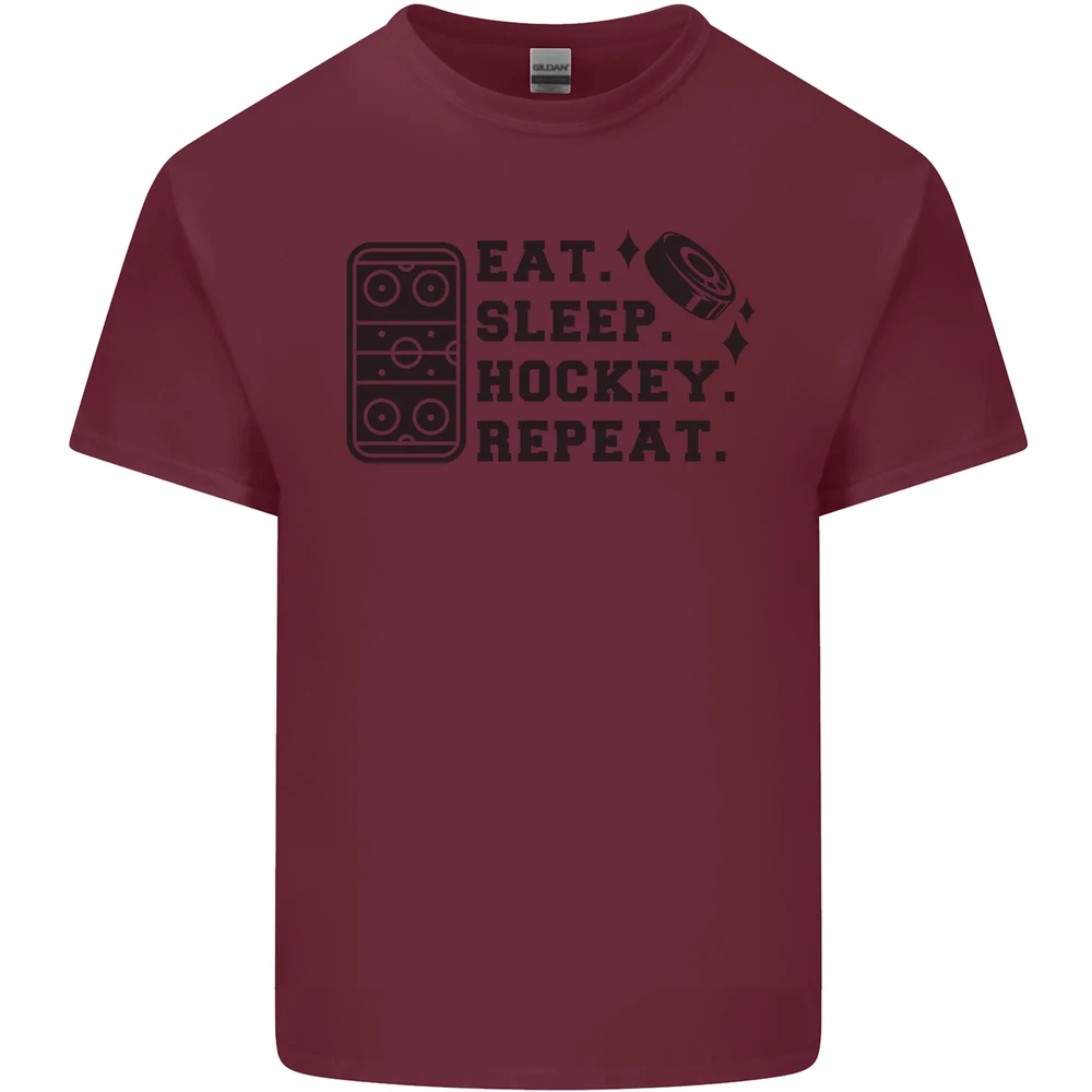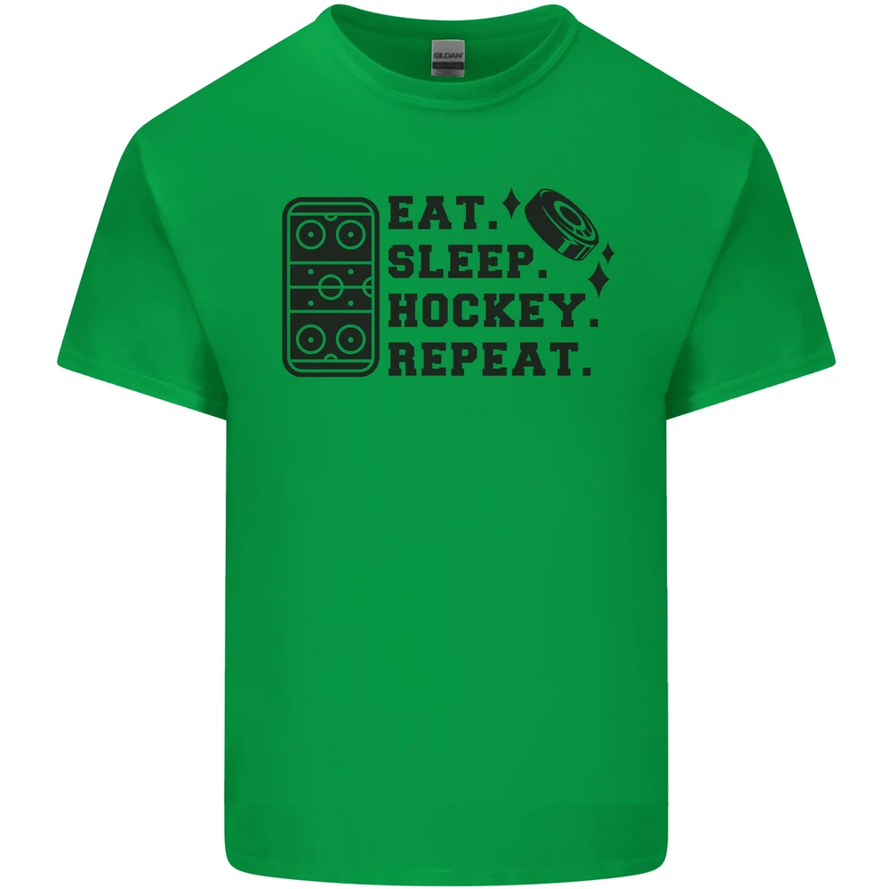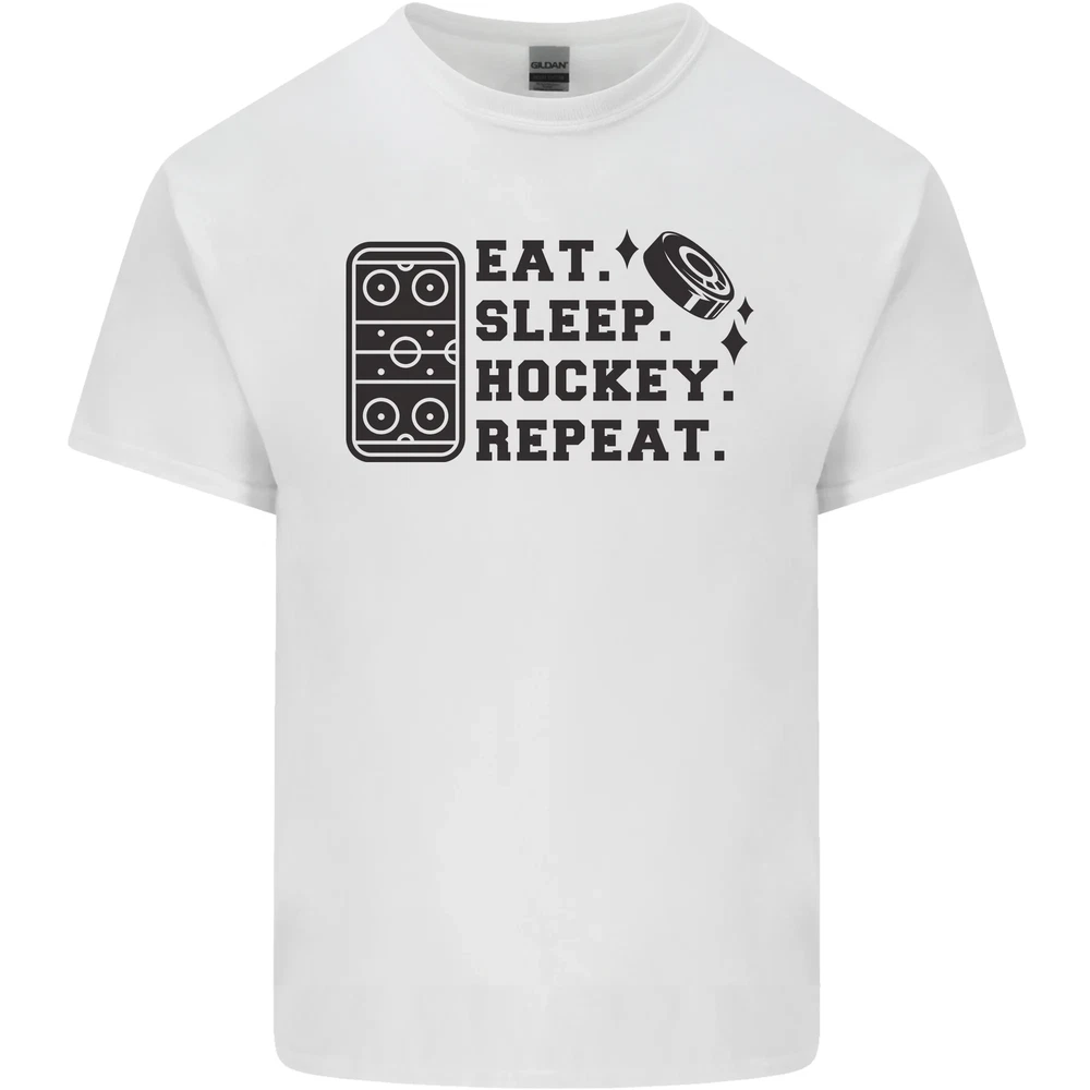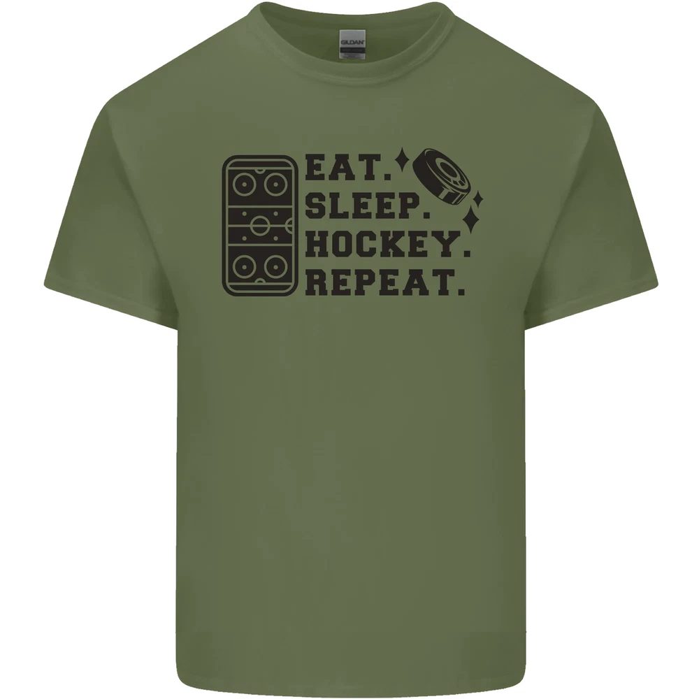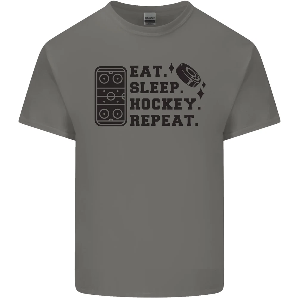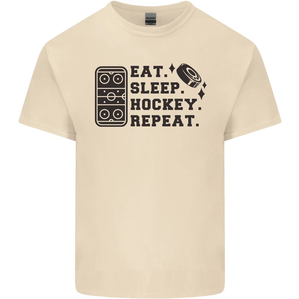 Eat Sleep Hockey Repeat Street Ice Funny Mens Cotton T-Shirt Tee Top