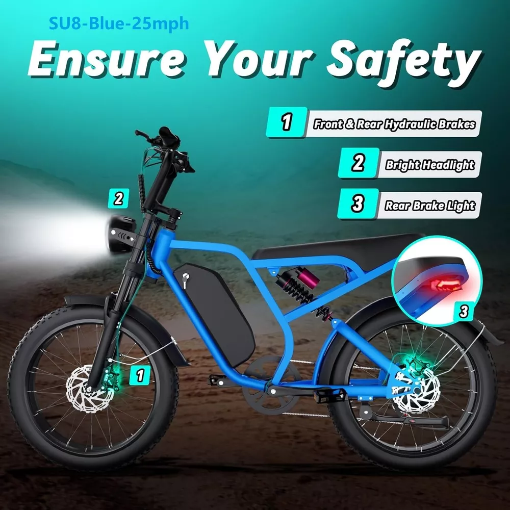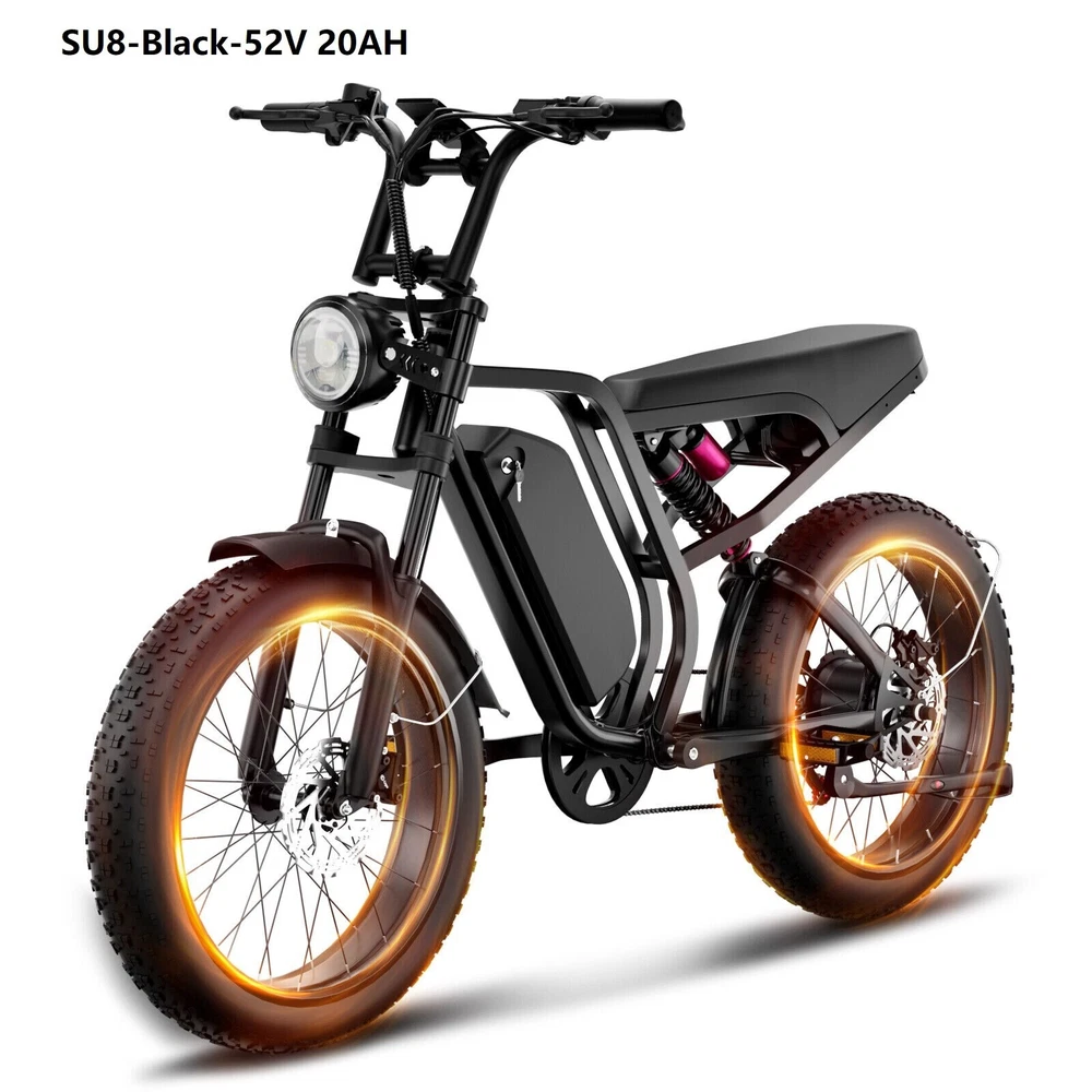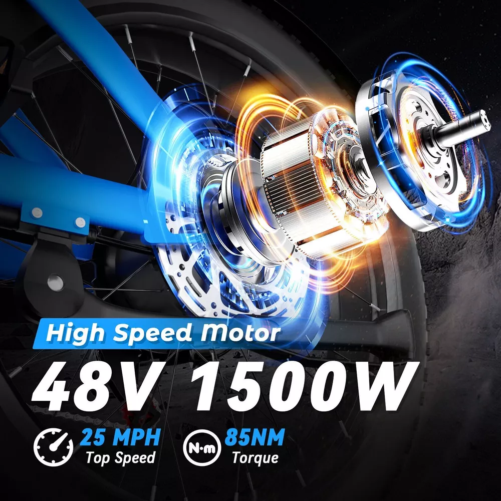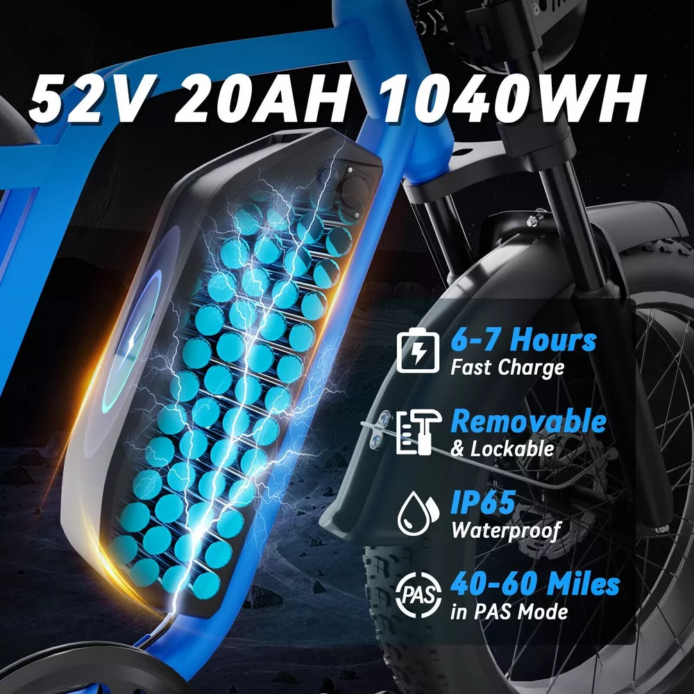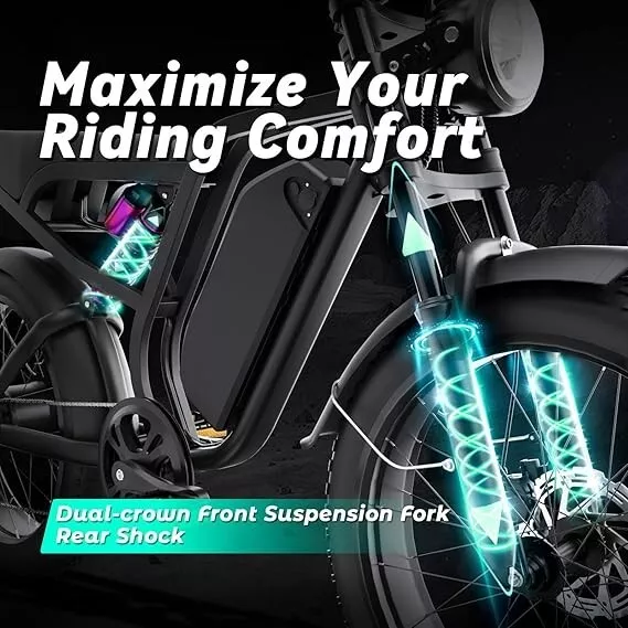 Key Features 【Powerful 1500W Peak Electric Bike】 1000W Motor with 1500W Peak Power - Perfect for City and Off-Road Rides. This electric dirt bike is powered by a 1000W motor (1500W peak), providing 85NM torque and a top speed of 48V 25 MPH / 52v 31MPH . Whether you’re riding through city streets or exploring off-road, this bike delivers exceptional performance and power for all your riding adventures. 【48V / 52V 20Ah Large Capacity Battery】 Equipped with a 48V 20Ah / 52V 20Ah battery providing a 960Wh / 1040Wh capacity, this e-bike offers an impressive range of 40-60 miles in pedal-assist mode on a single charge. With a higher watt-hour (Wh) rating, the bike can store more energy, which translates to longer rides between charges. Get back on the road faster with an 8-10 hour charging time. 【Superior Suspension & Fat Tires for All-Terrain Capability】 Designed with front and rear suspension and 20"x4.0" fat tires, this electric bike handles all types of terrain, from gravel paths to snow-covered roads. Whether you’re riding in the city or on rugged trails, the bike’s shock absorption system ensures a comfortable and stable ride. 【Advanced Safety Features with Hydraulic Disc Brakes】 The Logan hydraulic disc brakes offer reliable stopping power, while turn signals, brake lights, and front and rear LED lights ensure you stay visible and safe on your ride, no matter the time of day. 【Customizable Riding Experience with 7-Speed Gear System 】 This electric motorcycle offers pure electric, pedal-assist, and manual cycling modes with 5 assistance levels. The 7-speed gear system provides smooth shifting, giving you the flexibility to adapt to any riding situation, whether it’s a leisurely ride or a more challenging climb. 【Durable and Stylish Design for All Riders】 With a strong carbon steel frame supporting up to 330 lbs and suitable for riders from 5'1" to 6'1", this electric bike is designed for both comfort and durability. The modern M5 color display adds a premium touch, giving you a stylish and functional bike for any occasion. 【Easy to Assemble】 This e-bike comes 90% pre-assembled. Assembly video will be provided. 【1-year warranty】 1-year warranty for battery, charger, motor and controller. If you run into any trouble with our bikes, pls contact us, we’ll reply your message within 24 hours. Pls keep the original bike box for 30 days for possible returns The item is UL 2849 certified with a link to the UL Product iQ < https://productiq.ulprospector.com/en >