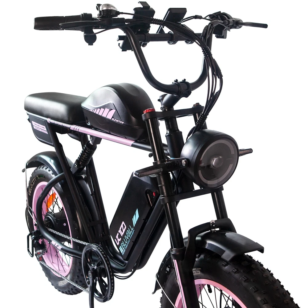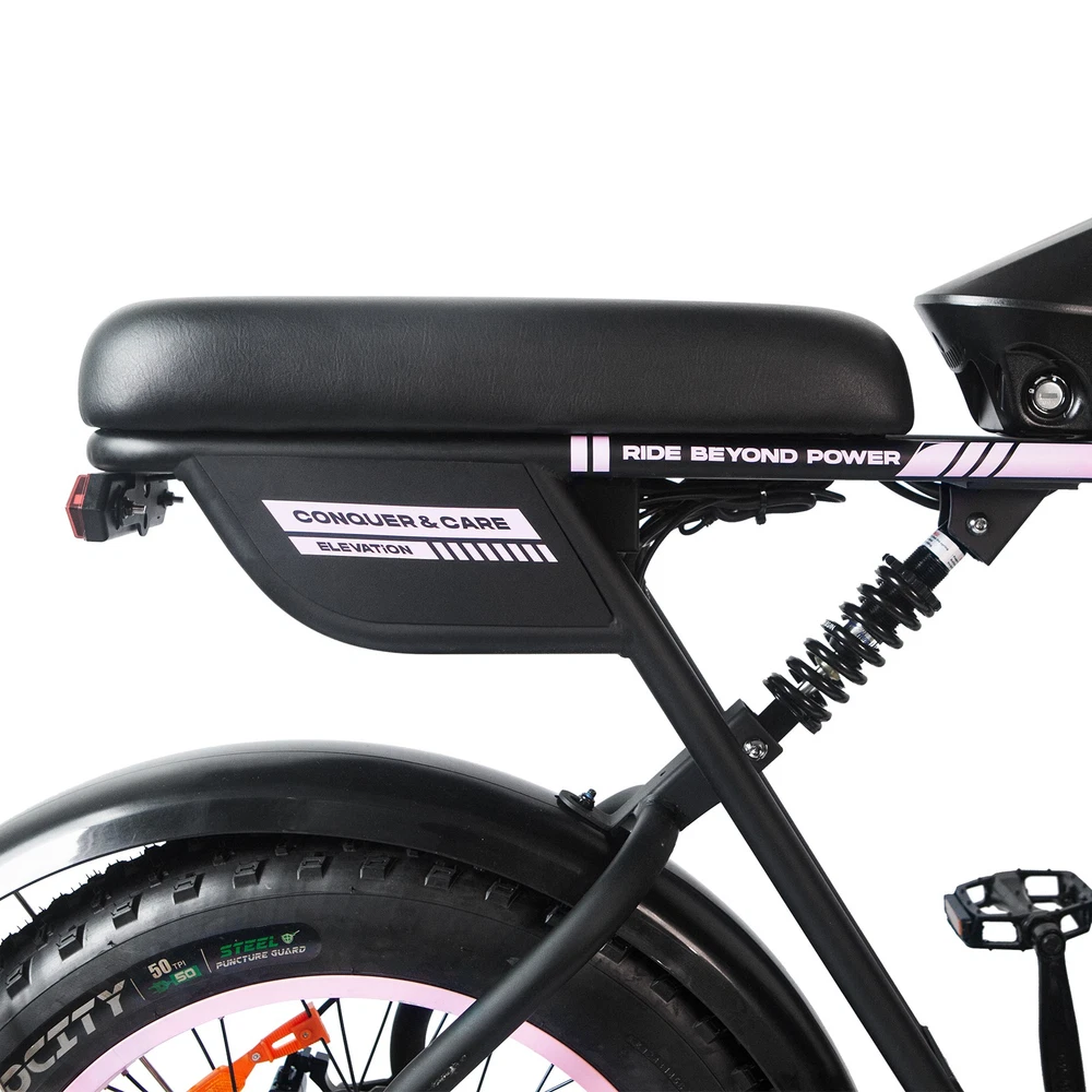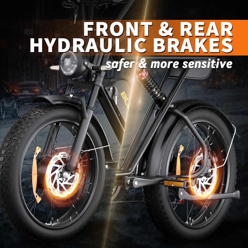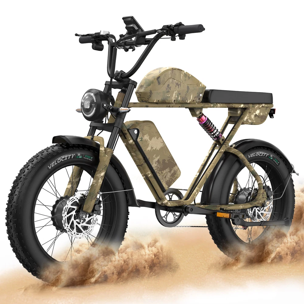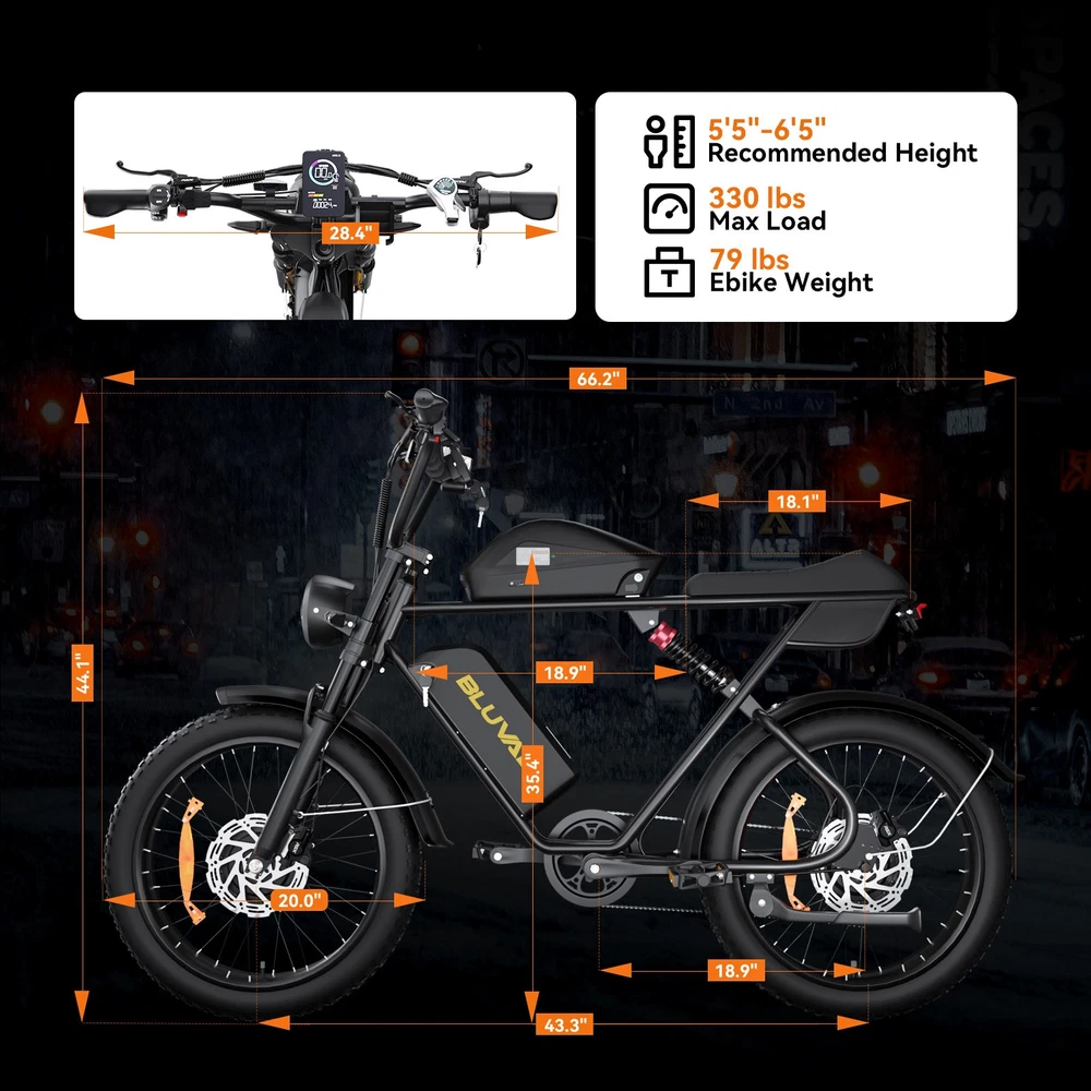 Why? The e-bike is designed for convenience in both commuting and adventure, featuring a speed of 39 MPH and a long range of 120 miles,Barely any maintanence. E-SYSTEM Class Class 1/2/3 (Switchable) Motor Dual Geared Hub Brushless Motors, Rated 1000W x2 (Peak 1500W x2), Front & Rear Motor Torque 160Nm Controller 52V 25A x2 Battery Removable Dual BMS Lithium-ion Battery, Top 52V 20Ah + Bottom 52V 23Ah, 2236Wh Certification UL 2849 & UL 2271 Certified (Entire e-bike system and battery are certified) Charger 58.8V 3 Amp Charger, Aviation Connector, UL LISTED Charge Time Approx. 5~8 Hours Max Speed 39 MPH Max Range Up to 120 miles by pedal assist, 70+ miles by throttle (based on 70kg rider; varies with conditions) FEATURES Display Backlit LCD Multifunctional Display USB Port Display-Integrated USB Charging Port to charge your phone on the go Lights Integrated 500Lux Headlight & Front Turn Signal Lights & Rear Light with Turn Signals Riding Modes 3 Distinct Riding Modes, 5 Levels of Pedal Assist Pedal Assist 5 Levels, Cadence Sensor Speed Configuration Unlock the speed limit to 37MPH, or set the speed limit to a desired safe velocity. Water Resistance IPX6 Rating (Protects against powerful water jets from any direction) COMPONENTS Frame High-Strength Carbon Steel, Thickness 2.2~2.5mm Suspension Dual Suspension Front Fork Dual Crown Suspension Fork (120mm Travel) with lock-out and rebound adjustability for pro-level control and handling. Rear Shock Heavy-Duty Rear Shock (Hot 180mm, 30mm Travel) engineered to support heavy payloads and absorb major impacts for a stable, planted ride. Brake Front & Rear Hydraulic Disc Brakes Brake Rotor 180mm, 1.9mm thick Throttle Twist Throttle, Ergonomic Right-Hand Throttle Shifter Shimano, 7-Speed Freewheel SHIMANO 12~28T Rear Derailleur SHIMANO 7 Speed Cassette SHIMANO 12~32T, 7 speed Crank & Chainring 48T, 170mm Alloy Crank Bottom Bracket Hexagon Taper, PAS Sensor Handlebar Aluminum Ø31.8mm, Width 700mm Grips Durable Ergonomic Grip, Half Throttle Seatpost Forged Alloy, 30.9mm, 28cm 2-Bolt Clamp Stem Bar bore Ø31.8mm, Clamp I.D. Ø28.6mm, Height 60mm, Rise 0° Headset Sealed Bearing Headset Rim Material Aluminum Rim Size 20 x 3.0 Rim Type Wheel with Integral Hub Front Wheel Spokes 13G x 244/246mm, Black Stainless Rear Wheel Spokes 12G x 217/219mm, Black Stainless Hubs Disc Nutted Front / Rear Axles Tire Puncture Resistant Fat Tires, 20″ x 4.0″ Tubes Butyl Rubber,A/V Saddle Extended Two-Passenger Saddle, crafted from durable PU leather to comfortably share the ride Pedal 1 Pairs Alloy Platform Pedals Kickstand Side Kickstand, Aluminum alloy Fenders Full-Coverage Front & Rear Fenders Included Phone Holder Included DIMENSIONS & WEIGHT Net Weight 42 kg (92.6 lbs) Gross Weight 52 kg (114.6 lbs) Battery Weight 5.1kg x2(11.5lbs x2) Payload Capacity 150 kg (330 lbs) Recommended Rider Height 5'5"–6'7" (165cm ~200cm) Product Size 172 x 113 x 75 cm Packing Size 150 x 34 x 80 cm Description 【 Powerful Dual Brushless Motors 】 Equipped with dual Rated 1000W Front & Rear brushless motors, delivering a combined peak power of 3000W and 160Nm of torque. Perfect for both city commutes and off-road adventures, it reaches speeds up to 39MPH , offering thrilling acceleration and smooth performance. Whether climbing hills or cruising, the dual motors ensure a powerful and stable ride. 【Removable 2236WH BMS Battery 】 Equipped with two 52V Top 20AH + Bottom 23AH batteries, which offering a range of 70-120 miles depending on the mode. Utilizing pedal assist, the range extends to an impressive 120 miles (single motor) and 70 miles (dual motors), with throttle mode, it covers up to 70 miles (single motor) and 40 miles (dual motors) .ensuring you travel without worries. (Calculation based on rider's weight of 70kg. Range varies according to road condition, weather, rider's weight etc.) The dual battery system ensures longer rides and added flexibility. Included are two chargers, allowing you to charge both batteries simultaneously or separately. You can charge directly on the bike or remove the batteries for charging, providing convenience at home or on the go. 【Dual Suspension & 20" Puncture-Proof Fat Tires 】 Equipped with dual-crown front suspension fork and rear shock, and the 20" fat tires, which provide great grip and excellent shock absorption, and effectively increase riding stability. Ensure that this fast electric bike performs well on various terrains. Whether you're navigating snow, sand, mud, or city streets, the all-terrain tires provide superior grip and stability. The full suspension system absorbs bumps and shocks, delivering a smooth and comfortable ride even on rough surfaces. 【Shimano 7 Speed Gears & Hydraulic Brakes System 】 Equipped with hydraulic disc brakes at the front and rear. These high-performance brakes provide precise stopping power in all conditions, including wet or muddy environments. Whether you're speeding downhill or navigating through the city, the hydraulic disc brakes ensure reliable, smooth braking. 【High-Strength Carbon Steel Frame】 Equipped with t he carbon steel frame, which provides excellent strength and durability, supporting up to 330 lbs (150 kg) of weight. Despite its robust construction, the frame is designed to be lightweight, making it easy to maneuver. Available in sleek color options, this bike combines durability with style. 【Multiple Riding Modes】 Offering pedal assist (5 levels), pure electric mode (5 levels), Cruiser mode, and manual cycling, the electric bike, cruiser mode for adults provides a tailored riding experience for every need. The added cruise control function ensures comfortable long-distance rides, while the intuitive digital display keeps track of important data such as speed, battery level, and pedal assist levels. 【Smart LCD Display & Upgraded Lights】 Equipped with an Color LCD display, you can easily monitor your speed, battery level, and riding mode. The display also provides 