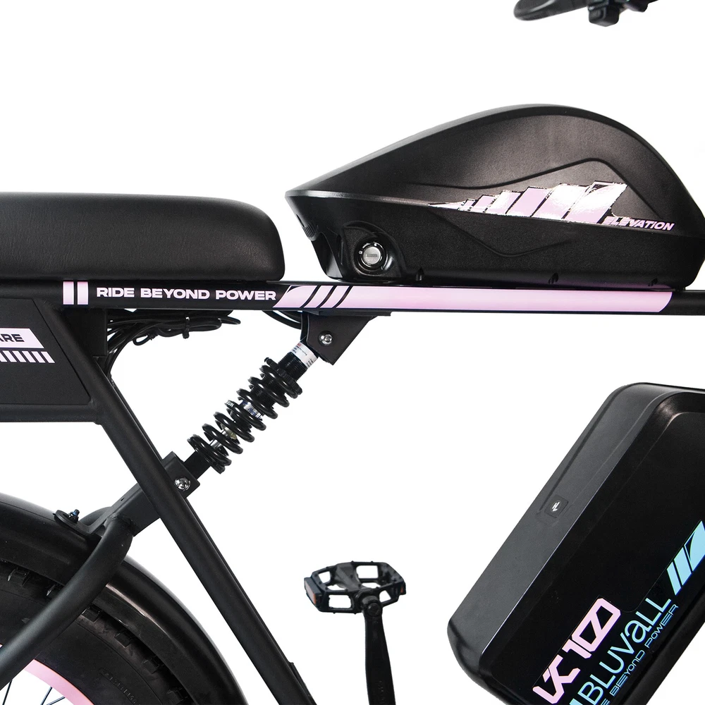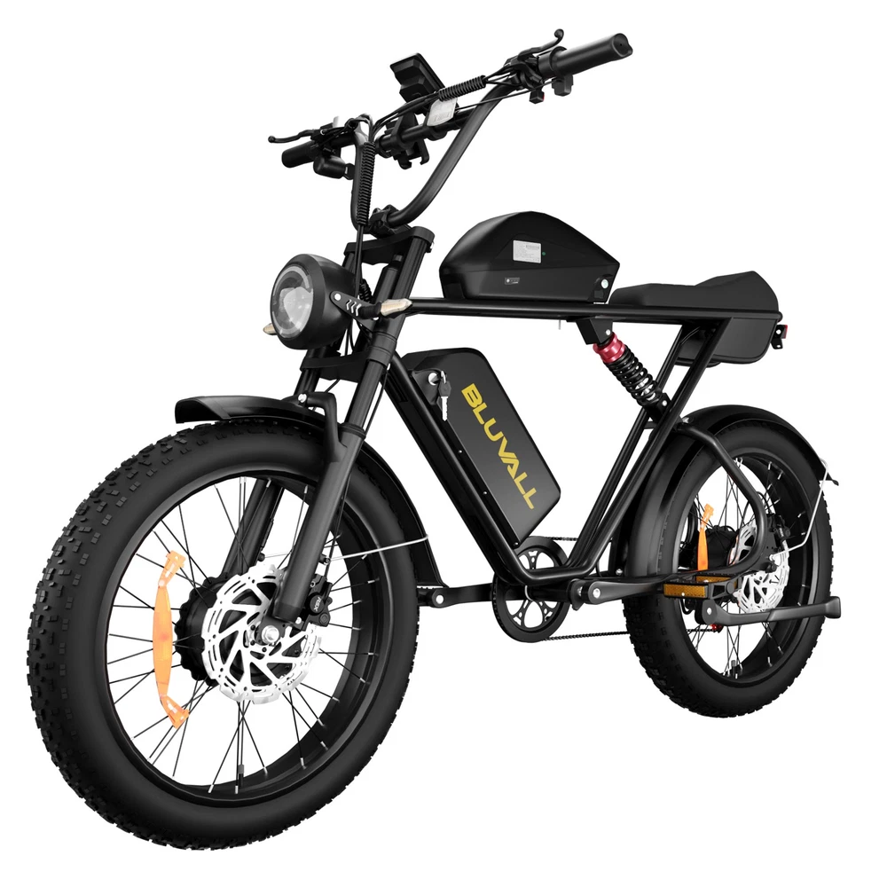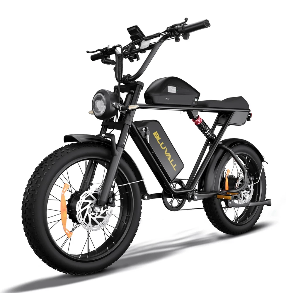 Suspension Type: Full Suspension (Front & Rear) Max Load: 330 lbs (150 kg) Item Weight: 79 lb Maximum Speed: 39MPH Bike Type: E-Mountain Bike Brake Type: Disc Brake - Hydraulic Battery: 52V 43AH Dual Lithium-ion Batteries Shifter Style: Thumb Shifter Throttle: Twist Throttle Motor Power: Dual 52V 1000W Motors Charging Time: More Than 5 Hours Country/Region of Manufacture: China Gear Change Mechanism: Derailleur Gears 3 Modes: Pure Electric, Pedal-assist, Normal Bike, Cruiser Mode Fork: Dual-Crown Suspension Fork Number of Speeds: Shimano 7 Speed Frame Size: Large Features: Display, Fenders, Front Light, Kickstand, Lithium Ion Battery, Pedal Assist, Rear Light Brand: Bluvall Display: Multifunctional LCD Display Department: Unisex Adults Voltage: 52V Maximum Range: 70-120 miles with pedal assist Manufacturer Warranty: 1 Year Wheel Size: 20 in Handlebar Type: Cruiser Bar Motor Type: Dual Motors Model Year: 2025 Tire Type: Fat Tires Material: High Carbon Steel