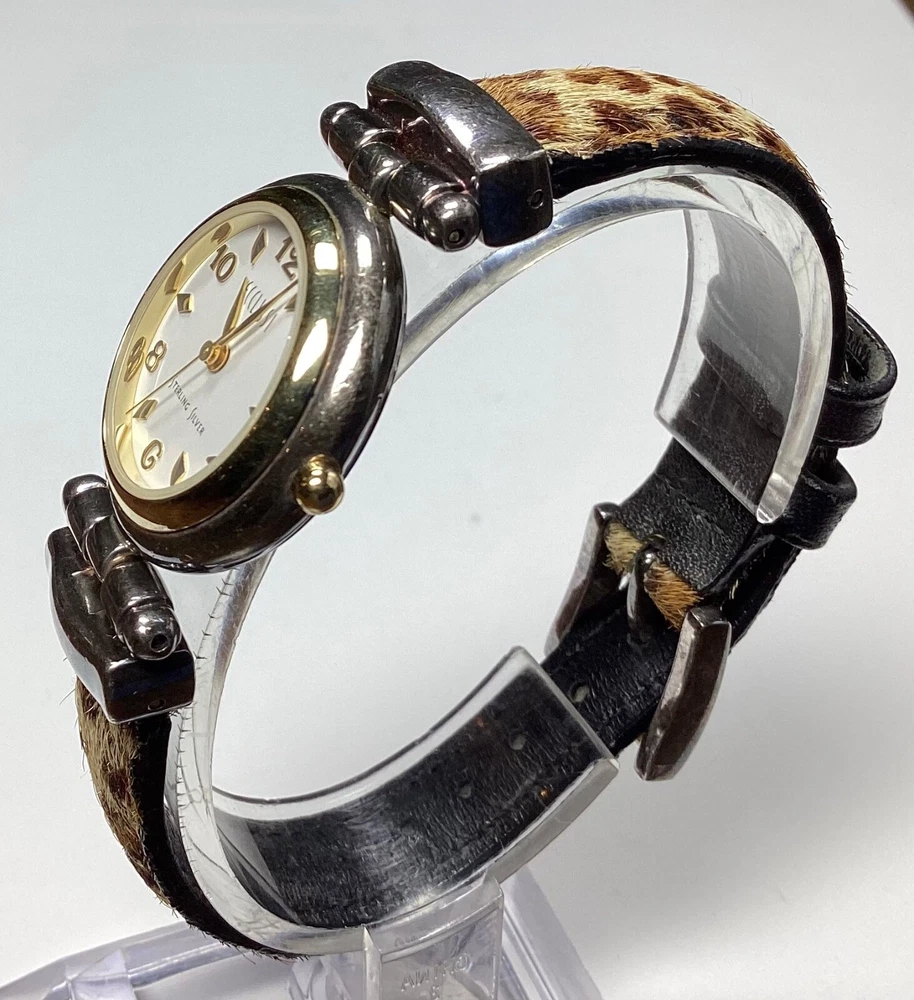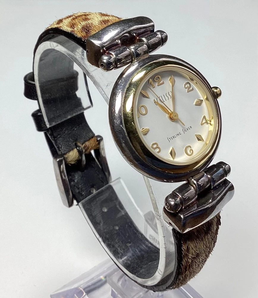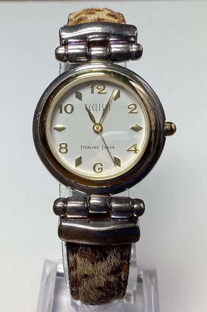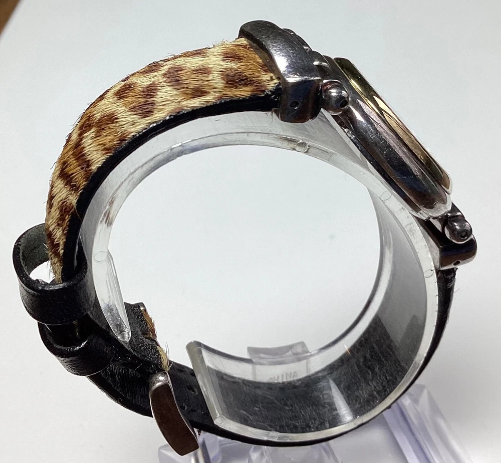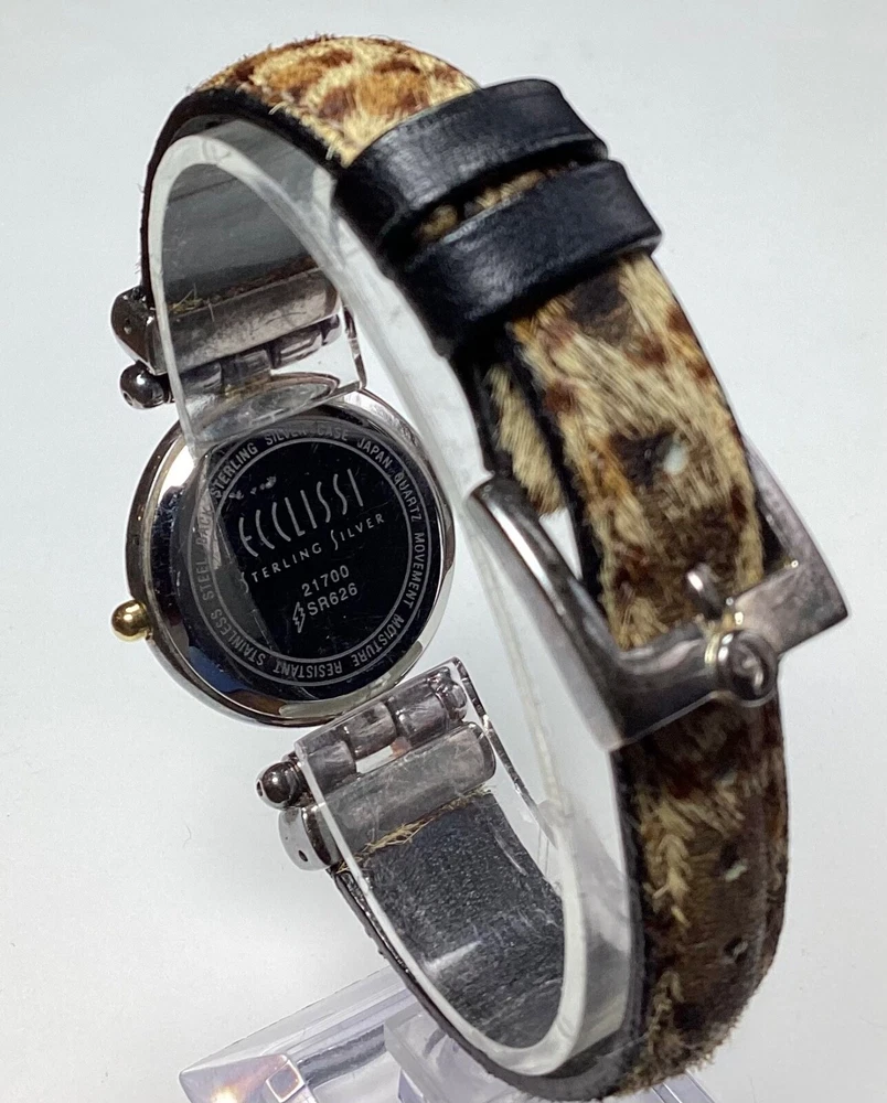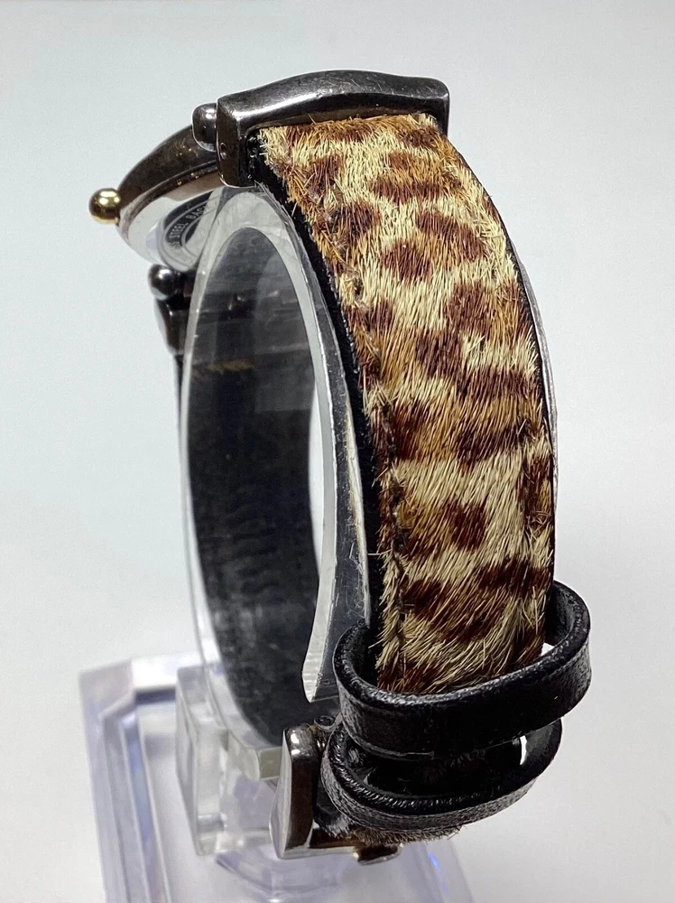 Ecclissi Womens Watch Sterling Silver Cheetah Leopard Faux Fur New Battery