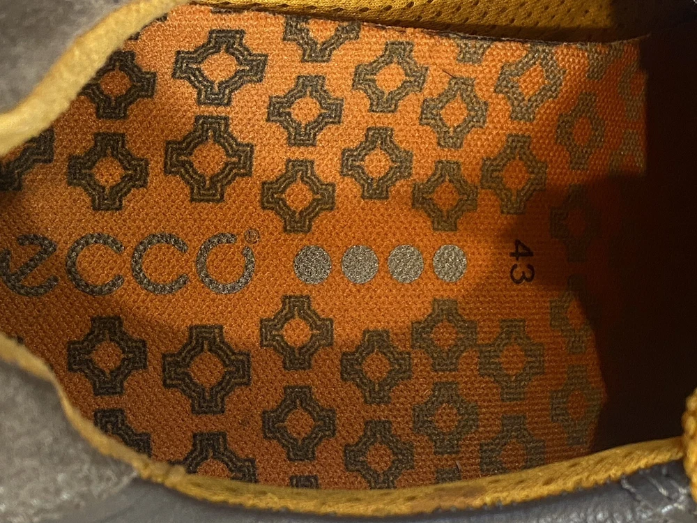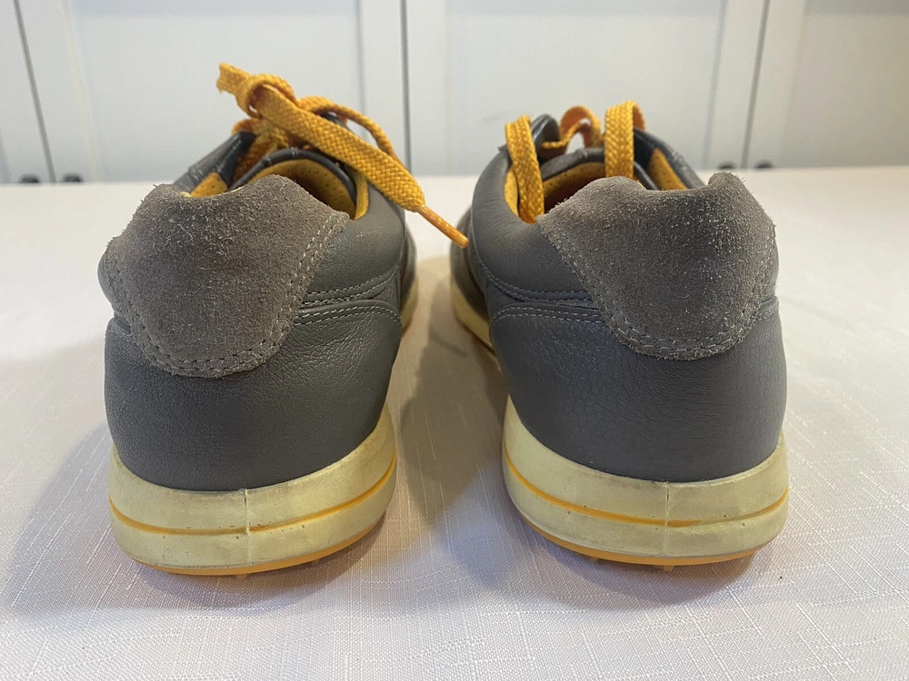 Ecco Biom Hybrid Spikeless Golf Shoes Grey Orange EUR 43 US 9. Excellent preowned condition. Slight discoloration to lower white/off white soles. Spikeless bottoms in great condition.