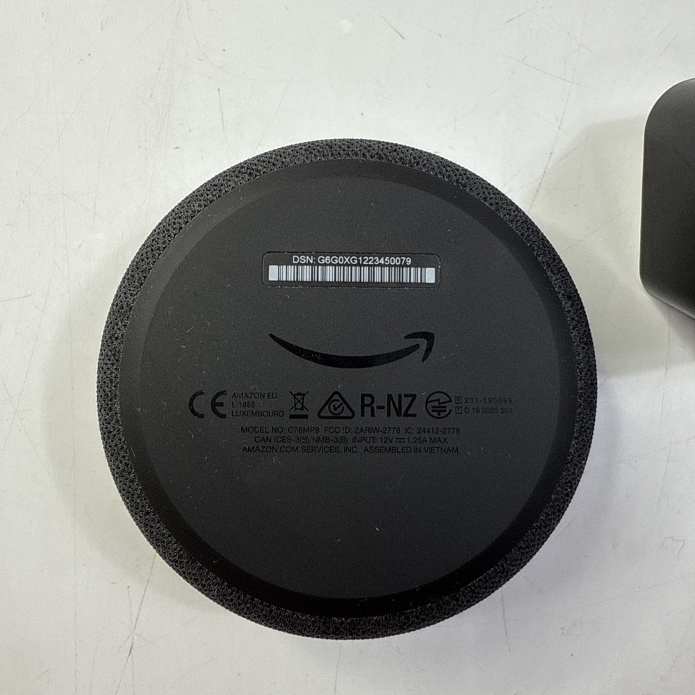 The Amazon Echo Dot 3rd Generation is a black smart speaker that is compatible with Amazon's Alexa voice assistant. It features Bluetooth and Wi-Fi connectivity, allowing for wireless streaming of audio. The speaker has a spherical shape and is made of plastic material. With a power supply included, this smart speaker offers 15W RMS power output and has a 3.5mm audio jack for additional connectivity options. It was manufactured in 2018 in Vietnam and does not come with a manufacturer warranty.