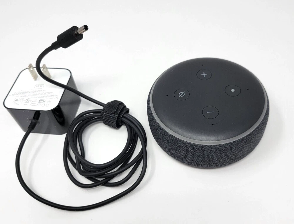 Echo Dot 3rd Gen Smart speaker with Alexa Charcoal With Power Cord Condition is Good. See pictures for condition. Fast Shipping. Shipped with USPS Ground Advantage or equivalent
