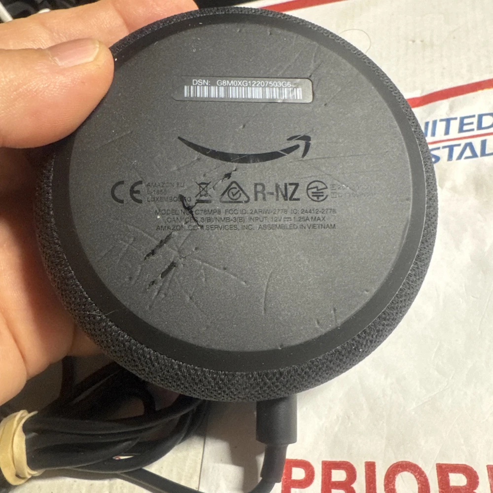 box Amazon Echo Dot Smart Speaker with Alexa C78MP8, SN: G8M0XG12207503G6. All comes as seen in the pictures of the item listing for sale with only power adapter and no other accessories are not included.