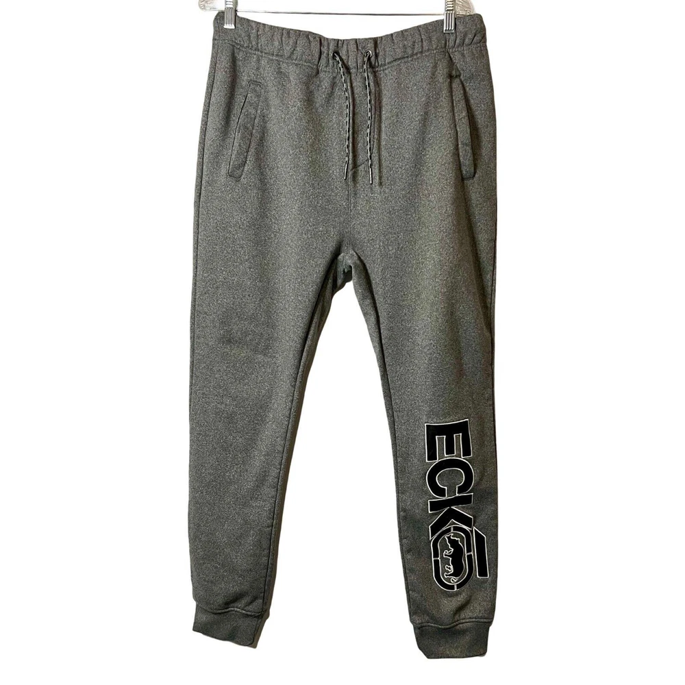 Ecko Joggers Mens Size L Gray Pull On Elastic Waist Tapered Leg Pockets Logo