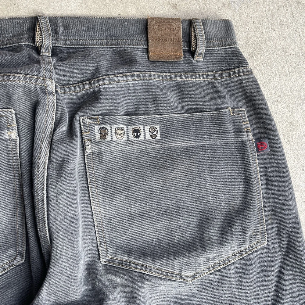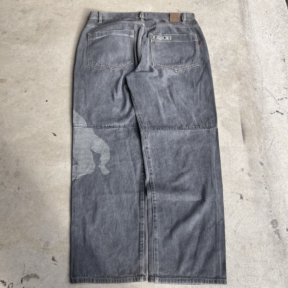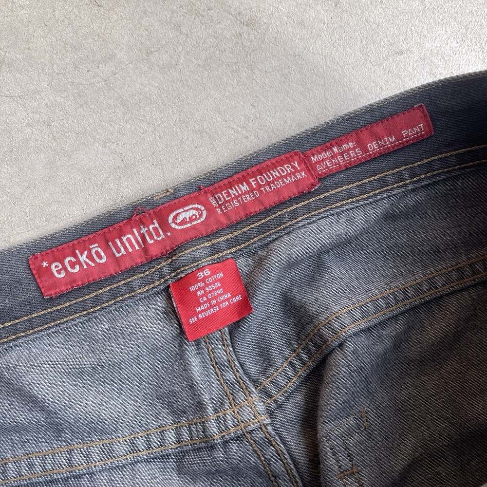 Insane faded black wash/gray baggy ecko jeans with avengers embroidery Tagged a size 36, measured 39x33 with a 44” outseam Good condition, no rips or tears but they do have a busted zip