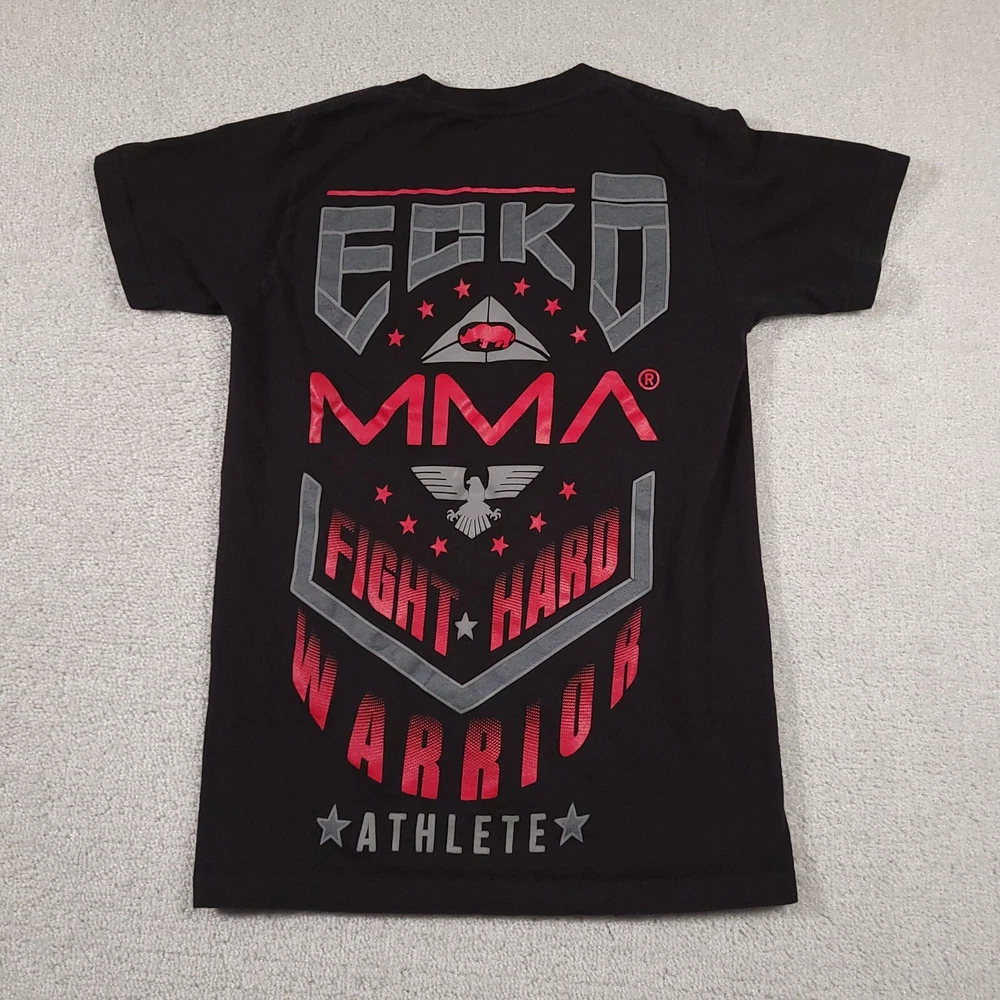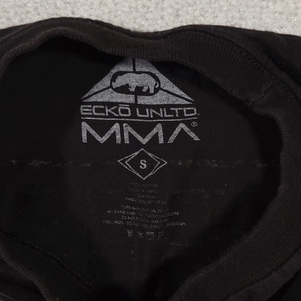 Ecko Unltd. Unlimited MMA T Shirt Mens Small Black Double Sided Grunge Please see above photos for all measurements Discoloration and pin holes as seen in photos