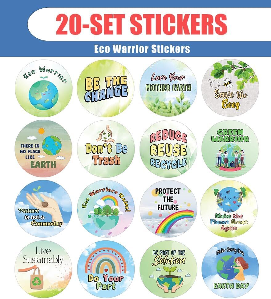 16 UNIQUE DESIGNS INSPIRING STICKERS FOR YOUR DIY PERSONALIZED DECORATIONS - Creanoso Eco Warrior Stickers (20 -Sheets). These colorful and uniquely inspiring round shaped stickers are the best tool for DIY decoration and personalization of your belongings. GREAT STOCKING STUFFERS , TEACHING SUPPLEMENTARY MATERIALS, AND GIVEAWAY - Great stocking stuffers gifts for Boys, Girls, Teens, Kids. A perfect design to give during classroom school activities, home schooling,birthdays, anniversaries, family day, and any other special occasions. MADE WITH DURABLE AND WATERPROOF MATERIALS - There is a lamination or coating to make the stickers high water resistant, and WILL NOT not fade from the water. The stickers can stick it anywhere you like, and it sticks there and lasts a long time. A COLORFUL AND DECOR STICKER DECAL - Each sheet with 16 individual round stickers. There are 20 sheets , with a total of 320 pcs of stickers. STICKER SIZE: 1.5 INCHES IN DIAMETER Eco Warrior Stickers (20 Sets X 16 Designs) COLORFUL AND COLLECTION OF TEXT STICKERS • Well designed. • Very encouraging. • Self-adhesive. Eco Warrior Stickers (20 Sets X 16 Designs) are super fun to collect; you can't have just one! That's why you will find a selection of stickers right here. Each package comes with different stickers in a variety of designs. Stick them here, stick them there, stick them everywhere! Everyone will love these self-adhesive stickers. These colorful stickers are perfect for any adults and these come with very inspiring messages and bright pictures. A fun, inexpensive way to add a decorative, notes, and stationery. Delight yourself with uplifting messages designs that are very encouraging. Eco Warrior Stickers (20 Sets X 16 Designs) perfect for giveaways, behavior incentives, prizes! These stickers are acid-free, nontoxic, and safe for use on photos. This product comes with a 60 days money back guarantee. You can return them to us for a full refund.