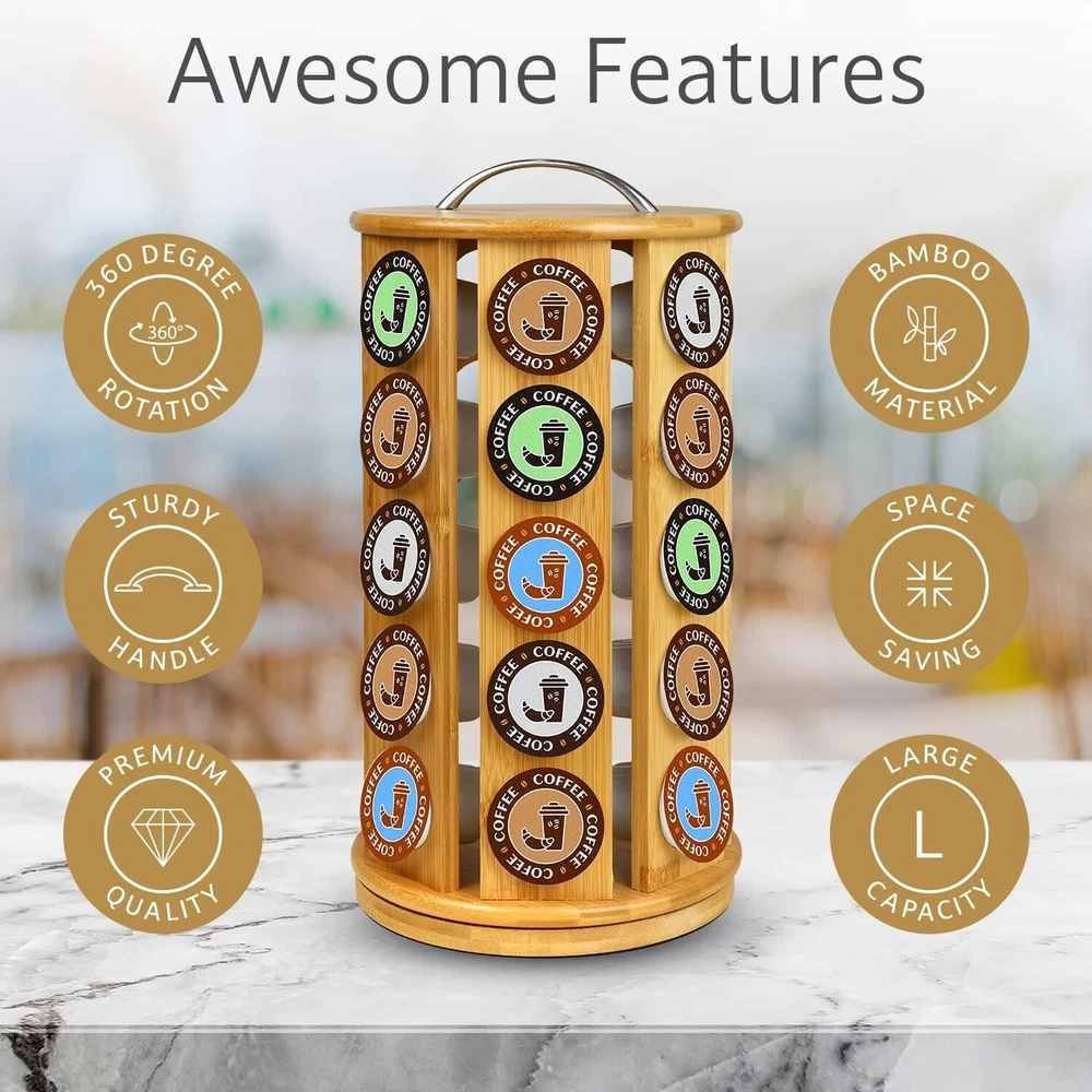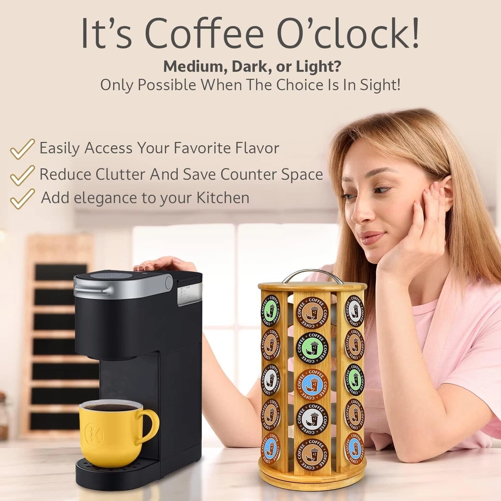 Eco-Friendly Bamboo Coffee Pod Organizer, Holds 35 K-Cups - Stylish & Functional ‹ › ‹ › ‹ › ‹ › ‹ › ‹ › ‹ › ‹ › ‹ › Eco-Friendly Bamboo Coffee Pod Organizer - Holds 35 K-Cups - Stylish & Functional Features: Large Capacity: Organizes up to 35 K-Cup compatible coffee pods, ensuring your favorites are always at your fingertips. Easy Access: Enjoy effortless selection with a 360-degree rotating design. Soft EVA foam at the base provides stability, preventing sliding. Space Saving: Vertical and compact, this organizer is perfectly designed to complement any coffee maker. Dimensions: 13.5 inches in height and 7.5 inches in diameter . Durable Construction: Made from high-quality bamboo, this pod holder is built to last. Angled slots securely cradle your pods, preventing spills onto your counter. K-Cup Compatible: Perfect for coffee, tea, hot cocoa, and more—this carousel keeps your beloved beverages organized and ready for brewing. Benefits: Eco-friendly bamboo construction adds a touch of organic elegance to your kitchen. Maintain a clutter-free counter top while showcasing your beloved coffee pods. Quick and easy access to your favorite brews enhances your morning routine. Durable design minimizes the risk of breakage, ensuring long-term enjoyment. Why choose our Bamboo Coffee Pod Organizer? Transform your coffee station with our Eco-Friendly Bamboo Coffee Pod Organizer. Its elegant design and impressive capacity not only elevate your kitchen aesthetic but also ensure that your morning brew is just a spin away. Say goodbye to clutter and hello to convenience as you enjoy the simplicity of one-touch access to all your K-Cup pods. Embrace sustainable elegance with this stylish organizer—order yours today and indulge in the luxury of a perfectly curated coffee experience! Shipping Free & Fast Shipping - We offer free shipping to most of the USA with a normal delivery time of 3-7 days. However, due to the current situation, additional delivery time (up to 3 weeks) may be required for some items. Alternative Carriers - We may use alternative carriers (e.g. USPS, FedEx, UPS, etc.) to ensure your package arrives safely and on time. Due to the use of multiple carriers, we are unable to provide a tracking number automatically. Handling Time - Orders are processed and shipped within 1-2 business days of receiving cleared payment. Shipping Restrictions - Shipping to Alaska, Hawaii, Puerto Rico, Guam, and other US territories may incur shipping charges or delivery restrictions. Please contact us before ordering, or your order can be refunded/cancelled. State Restrictions - There may be restrictions based on your state of purchase. For example, certain items may not be shipped to California due to state regulations. Contact for Tracking Updates - If you require tracking updates or have any concerns about the delivery of your order, please feel free to contact us, and we will be happy to assist you. Return 30-Day Hassle-Free Returns - We want you to be completely satisfied with your purchase. If you are not, you can return the item within 30 days of receiving it for a full refund or exchange. Easy Return Process - To start a return, simply contact us and we will provide you with a prepaid return shipping label and detailed instructions. Restocking Fee - There are no restocking fees for returns. However, the buyer is responsible for return shipping costs if the return is not due to a seller's error. Refund Processing Time - Refunds will be processed within 5 business days of receiving the returned item in its original condition. Payment We accept all major credit cards, PayPal, and Apple Pay for your convenience. Your payment information is secure and encrypted to ensure a safe and seamless transaction. Please complete your payment within 3 days of purchase to avoid any delays in shipping. Feedback Your feedback is extremely important to us. We strive to provide the best products and customer service possible. If you are satisfied with your purchase, please take a moment to leave us a positive review. If you have any concerns or issues with your order, please contact us before leaving negative feedback. We are committed to resolving any problems and ensuring your satisfaction. Contact Us If you have any questions or concerns, please feel free to reach out to our customer support team. You can contact us through the eBay messaging system. We are available Monday to Friday, 9:00 am to 5:00 pm EST, and we will do our best to respond to your inquiry within 24 hours. Buy it now and enjoy a pleasant shopping experience! UPC: Not Set Unit Quantity: 2.83 lbs Material: Bamboo Features: Rotating Base,Easy Access,Space Saving,Durable Construction Mounting: Free Standing Set Includes: Not Set Department: Unisex Brand: Unbranded Item Height: K Cup Organizer Item Length: K Cup Organizer Item Width: K Cup Organizer Type: K Cup Holder Color: Natural Size: Large Number of Shelves: 1 Number of Compartments: 1 Shape: Round Number of Tiers: 1 MPN: Not Set Style: Modern Country/Region of Manufacture: Not Set Rack Type: Carousel/ Revolving Wood Tone: Bamboo Item Depth: 7.5 in Item Diameter: 7.5 in Capacity: 35 pods Capsule/Pod Capacity: 35 Item Weight: 2.83 lbs Model: Not Set Unit Type: lb Personalize: Not Set
