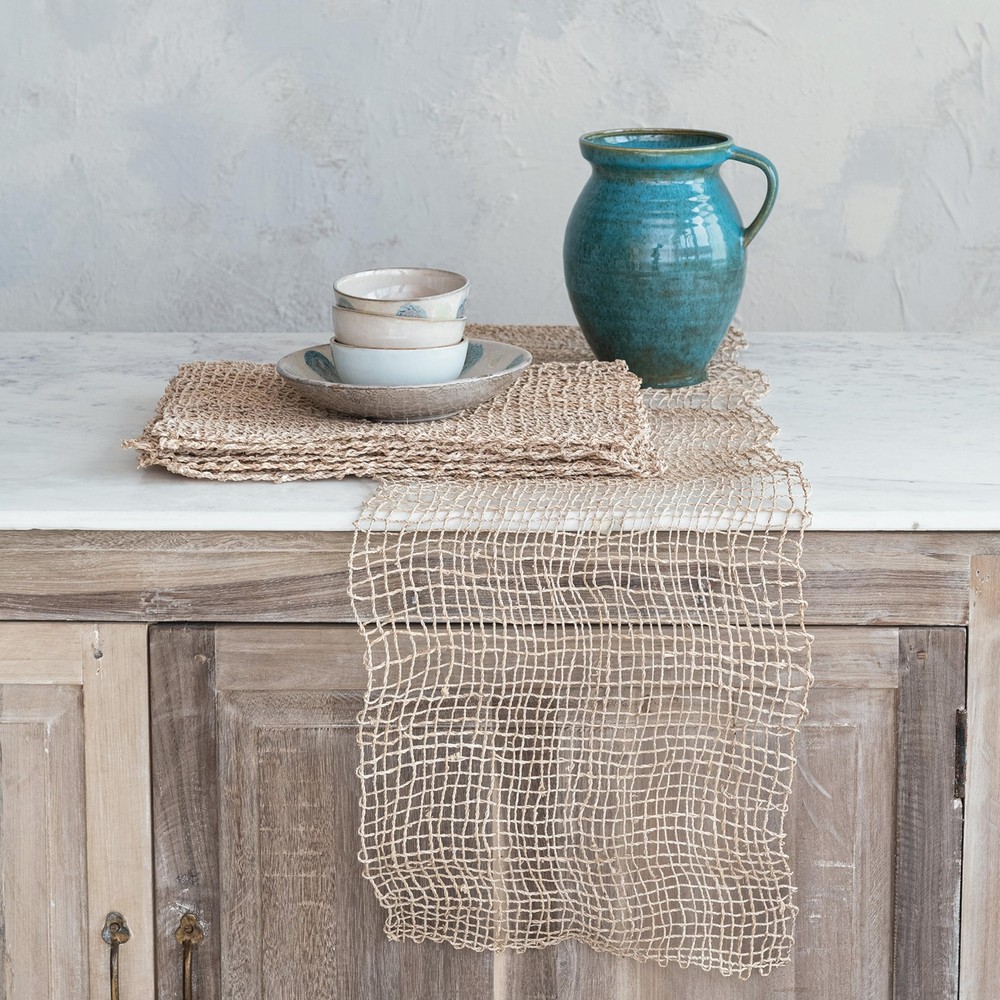 Add an element of earthy sophistication to the dining space with our Natural Weave Banana Leaf Table Runner. Skillfully hand-woven, this piece embodies a blend of natural aesthetics and functional design. Its elongated shape and neutral tone make it a versatile accessory for any occasion, harmonizing with farmhouse simplicity, boho vibrancy, or Scandinavian minimalism. It measures 72.00 inches in length and 14.00 inches in width, fitting a variety of table sizes beautifully. Crafted from sustainable banana leaf fibers, this table runner not only adds style to the table setting but also contributes to natural living. Elevate any dining experience with this unique and environmentally conscious piece. A hand-woven braided banana leaf table runner, showcasing the natural beauty of its material with a rustic charm An ideal addition to farmhouse, boho, or Scandinavian decor, this runner brings an organic texture to the tablescape An elegant centerpiece for any table, perfect for both casual and formal settings Made of sustainable banana leaf, this table runner is a testament to intricate craftsmanship 72” L x 14” W