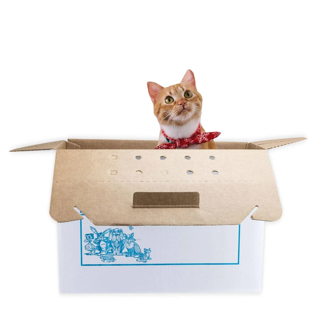 Disposable Cardboard Pet Carrier 12/Case Product Details Color: White Brand: Oasis Product Dimensions: 17.5"L x 8.75"W x 12.25"H Material: Cardboard Special Feature: Durable Is Discontinued By Manufacturer : No Product Dimensions : 17.5 x 8.75 x 12.25 inches; 13.15 Pounds Date First Available : April 15, 2009 Manufacturer : Oasis Best Sellers Rank: #17,642 in Pet Supplies (See Top 100 in Pet Supplies) #38 in Dog Soft-Sided Carriers #38 in Dog Soft-Sided Carriers Customer Reviews: 4.5 4.5 out of 5 stars 635 ratings Special 200 lbs test white cardboard. We use a strong, interlocking bottom to safely and securely carry pets. 20+ lbs capacity. Safe-no staples, strong glued joints, extra ventilation. Our Carrier is made with durable corrugated carboard. Proudly made in USA and recyclable! Approximately 70% post consumer recycled product. Printed warning "Do not leave animal(s) unattended in carrier. Easy assembly instructions on carriers. 17.5"L X 12.25H X 8.75"W 12/Case