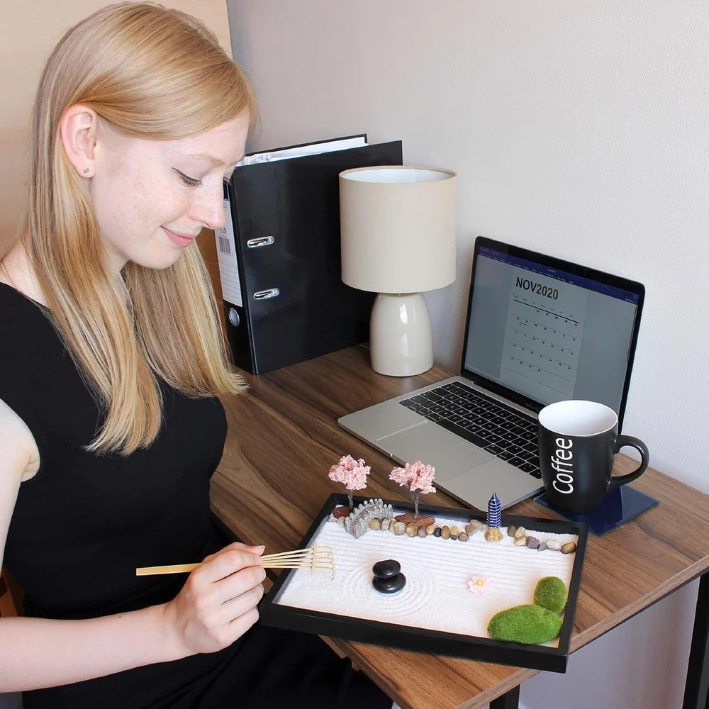 Sustainable Japanese Sand Garden with Decorative Tray & Nature-inspired Accents ‹ › ‹ › ‹ › ‹ › ‹ › ‹ › ‹ › ‹ › ‹ › ‹ › Sustainable Japanese Sand Garden with Decorative Tray & Nature-inspired Accents A Wonderful High-End Gift: Treat yourself or bring calm and happiness to your loved ones with this exquisite Japanese Zen Garden, gorgeously packaged to inspire inner peace. Perfect as a deluxe gift set to elevate any space. Features: Japanese Decor: Incorporate practical and stunning decor into your home with our generously featured Zen garden. Diverse Elements: Enjoy an extensive collection of 15 premium features for endless arrangements, including Asian-inspired Cherry Blossom Trees, a Shinto Torii Gate, Zen Rocks, ceramic Pagoda, Bridge, Lotus, and Moss. Safe Materials: Crafted from 100% safe, CPSIA compliant sand (16oz), ensuring a delightful experience as you immerse yourself in a tranquil setting. Thoughtful Design: Made with specific Canadian rock, our sand sparkles beautifully without free Quartz/Silica to ensure safety. Avoid spills effortlessly with our large wooden sand tray. Cultural Insights: Discover the surprising meaning, history, and culture of each feature with our inspiring guide that accompanies your desktop Zen garden decoration. Creative Expression: Indulge your imagination as you master the calming skill of sand raking with 6 lovingly handcrafted bamboo rakes and tools, allowing you to create stunning patterns in your indoor sanctuary. Benefits: Transform your work desk or home into a peaceful oasis. Encourage mindfulness and relaxation through creativity. Gift the essence of tranquility to loved ones or enhance your own space. Experience the joy of nature-inspired design and cultural appreciation. Why choose our Sustainable Japanese Sand Garden? Embrace serenity and beauty with our Sustainable Japanese Sand Garden, a true celebration of nature and craftsmanship. Each carefully selected element reflects the spirit of Zen, inviting you to unleash your creativity and experience a moment of calm in your busy life. This delightful set not only serves as a stunning decorative piece but also as a means to nurture your well-being and cultivate mindfulness. Immerse yourself in the serene art of sand raking and the rich cultural heritage of Japan, transforming any space into your personal sanctuary. Don’t miss the opportunity to bring tranquility and inspiration into your life – order your Sustainable Japanese Sand Garden today! Shipping Free & Fast Shipping - We offer free shipping to most of the USA with a normal delivery time of 3-7 days. However, due to the current situation, additional delivery time (up to 3 weeks) may be required for some items. Alternative Carriers - We may use alternative carriers (e.g. USPS, FedEx, UPS, etc.) to ensure your package arrives safely and on time. Due to the use of multiple carriers, we are unable to provide a tracking number automatically. Handling Time - Orders are processed and shipped within 1-2 business days of receiving cleared payment. Shipping Restrictions - Shipping to Alaska, Hawaii, Puerto Rico, Guam, and other US territories may incur shipping charges or delivery restrictions. Please contact us before ordering, or your order can be refunded/cancelled. State Restrictions - There may be restrictions based on your state of purchase. For example, certain items may not be shipped to California due to state regulations. Contact for Tracking Updates - If you require tracking updates or have any concerns about the delivery of your order, please feel free to contact us, and we will be happy to assist you. Return Please see our eBay Return Policy. Thank you. Payment We accept all major credit cards, PayPal, and Apple Pay for your convenience. Your payment information is secure and encrypted to ensure a safe and seamless transaction. Please complete your payment within 3 days of purchase to avoid any delays in shipping. Feedback Your feedback is extremely important to us. We strive to provide the best products and customer service possible. If you are satisfied with your purchase, please take a moment to leave us a positive review. If you have any concerns or issues with your order, please contact us before leaving negative feedback. We are committed to resolving any problems and ensuring your satisfaction. Contact Us If you have any questions or concerns, please feel free to reach out to our customer support team. You can contact us through the eBay messaging system. We are available Monday to Friday, 9:00 am to 5:00 pm EST, and we will do our best to respond to your inquiry within 24 hours. Thank you for supporting our small family business! UPC: Not Set Unit Quantity: 16 oz Material: Stone,Wood,Handcrafted Bamboo,Soft White Sand Room: Any Room,Office Character: Zen Garden Kit Theme: Not Set Department: Adults Care Instructions: Wipe with Damp Cloth Brand: Unbranded Type: Zen Garden Kit Style: Zen Garden Kit Color: Black Occasion: Thank you & Appreciation Character Family: Not Set Origin: Japanese MPN: Not Set Country/Region of Manufacture: Not Set Item Length: Not Set Item Height: Not Set Item Width: Not Set Orientation: Horizontal Product Line: Not Set Battery Type: Not Set Item Weight: 16 oz Model: Not Set Unit Type: oz Vintage: Not Set Personalize: Not Set Additional Parts Required: Not Set Customized: Not Set