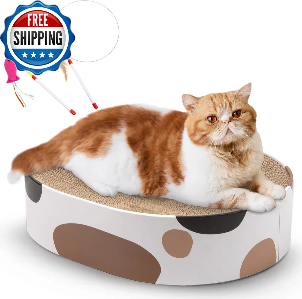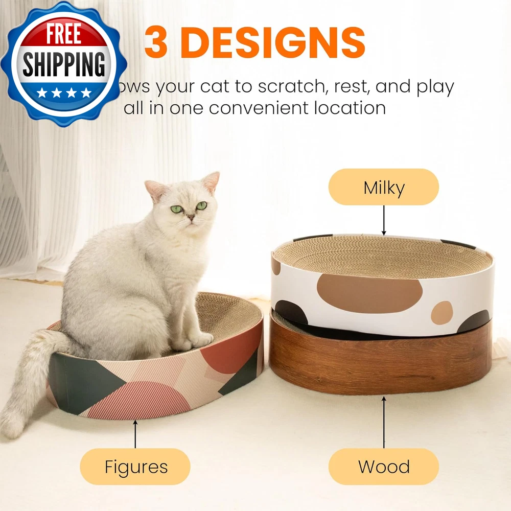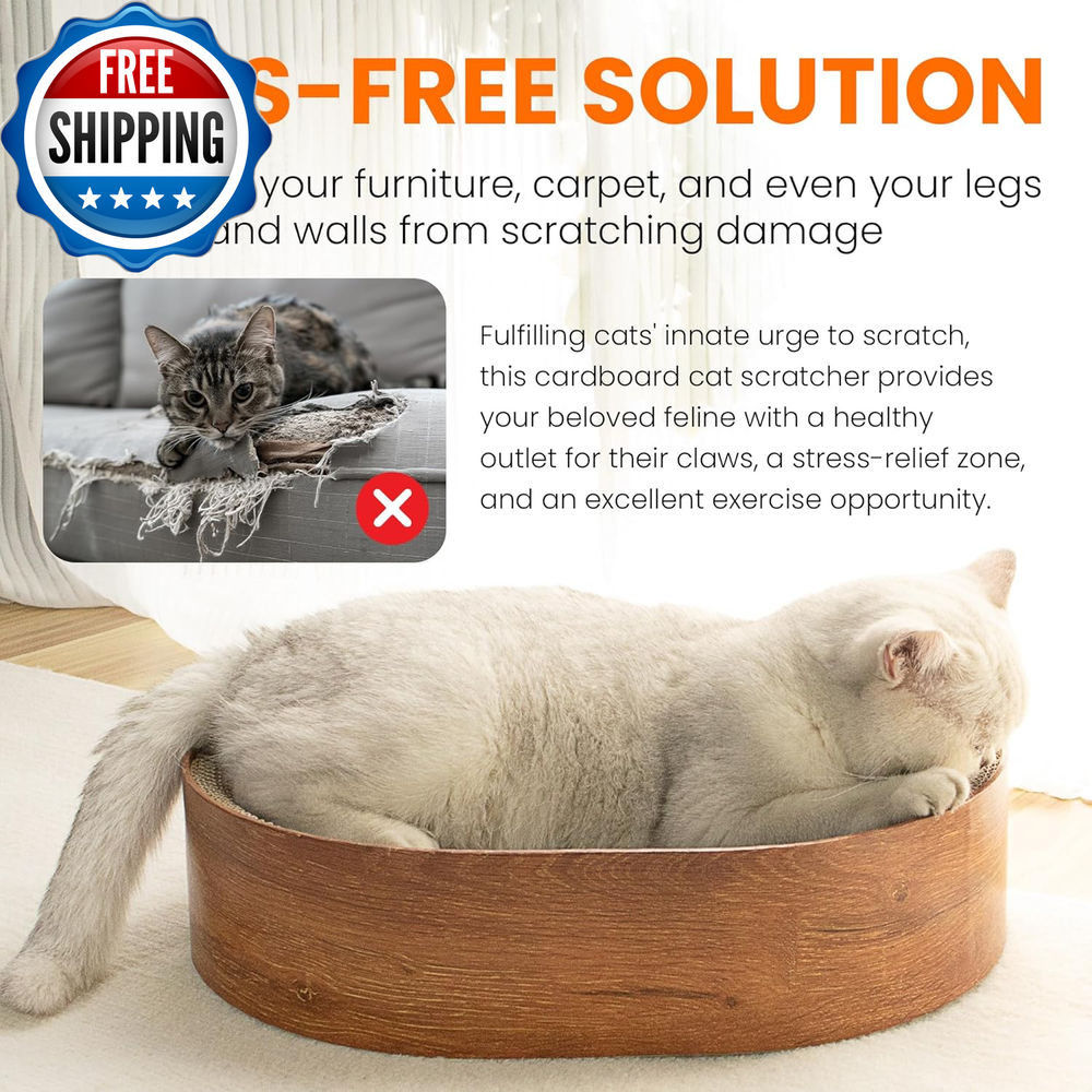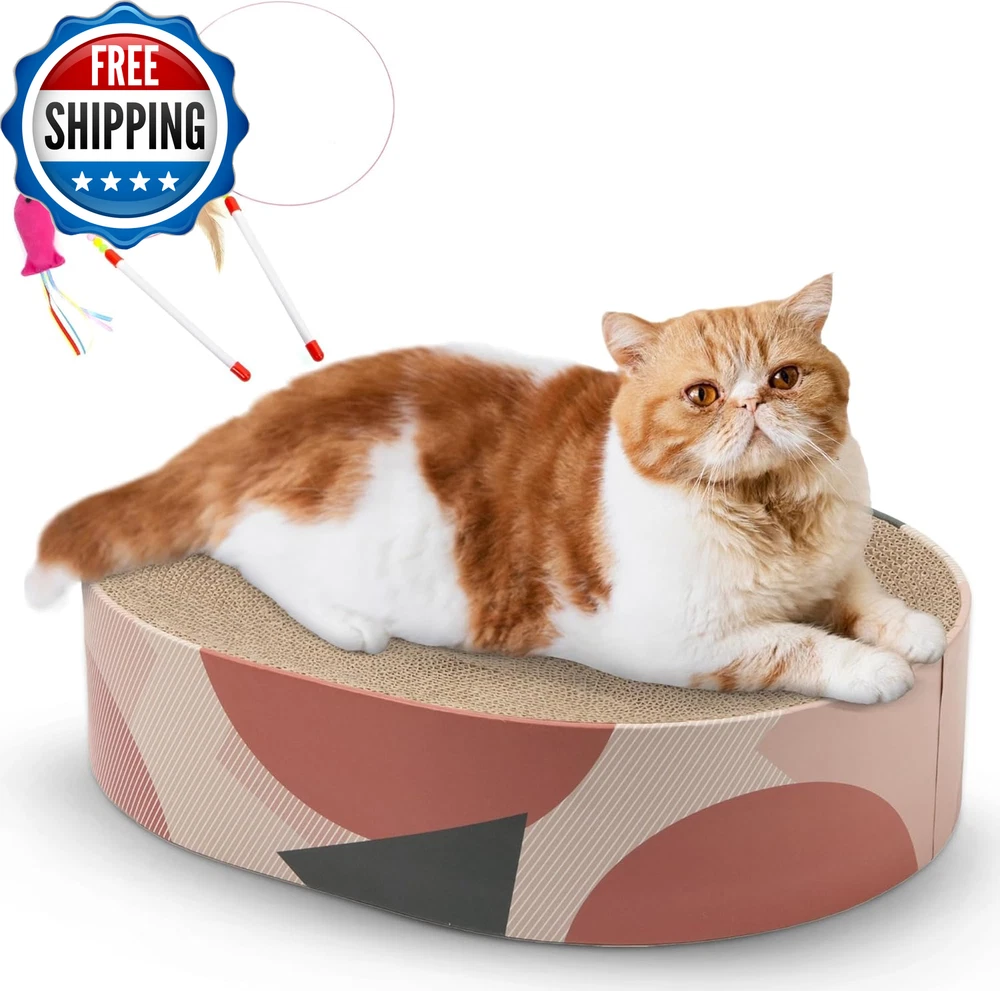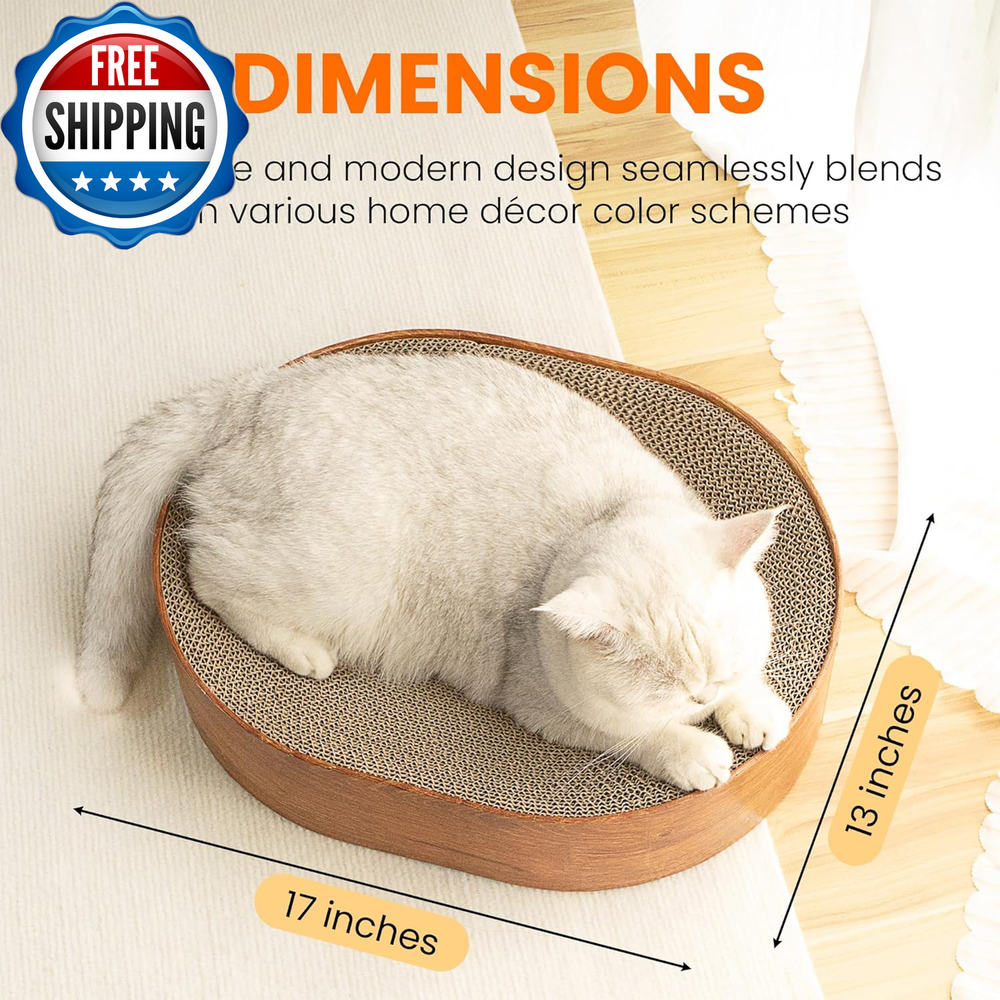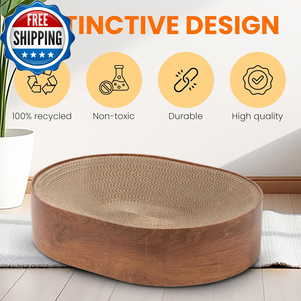 Eco-Friendly Oval Cat Scratcher Bed with Dual Recycled Cardboard Boards for Fun Play