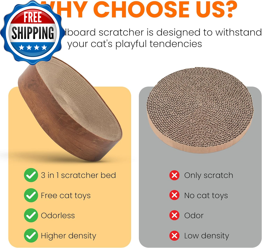 Cat Scratcher Cardboard Bed Oval Corrugated Design with Two Recycle Board for Furniture Protection, Cat Scratching Lounge Bed, Cat Scratcher Bowl & Interactive Kitty Training Toy - Wood Distinctive Design: The Oval & Concave design serves a dual purpose by conforming to the cat's spine, alleviating pressure when your kitten curls up on the cardboard cat scratcher. Additionally, the cat scratching pad offers a comfortably curved surface, allowing your adorable companions to stretch out and gain momentum while scratching. Versatile Space: Enjoy the convenience of dual functionality in a single package! Not only does it serve as a cardboard cat scratcher for indoor cats, but it also functions as a cat scratcher lounge bed. This allows your cat to scratch, rest, and play all in one convenient location. A 2-in-1 multifunctional cat lounger scratcher bed, providing excellent value for your feline friend! Mess-Free Solution: Fulfilling cats' innate urge to scratch, this cardboard cat scratcher provides your beloved feline with a healthy outlet for their claws, a stress-relief zone, and an excellent exercise opportunity. Safeguard your furniture, carpet, and even your legs and walls from scratching damage. The enclosed bottom design ensures that any cardboard bits scratched off are contained within the cat scratching box, preventing a mess on the surrounding carpet. Robust & Eco-Friendly Material: Constructed from sturdy corrugated and 100% recycled cardboard, this cat cardboard scratcher is designed to withstand your cat's playful tendencies. The couch cat scratcher board is not only durable but also safe and non-toxic. The glue utilized in its construction is derived from cornstarch, ensuring a perfectly healthy environment for your adorable cats! Variety of Patterns: Select from three appealing patterns that effortlessly complement your home aesthetics. The simple and modern design seamlessly blends with various home décor color schemes. Arrange the modern cat scratcher bed cardboard at your discretion, whether on crates, floors, or any room in your home. Size reference: 16.9 L x 12.9 W x 3.9 H inches. Product Description Item model number 1 Age Range Description All Life Stages Warranty Description 12 month Material Paper Item Dimensions LxWxH 17 x 13 x 4 inches Color WOOD Included Components Cartboard Product Dimensions 17"L x 13"W x 4"H Care Instructions Hand Wash Only Country of Origin USA Style Modern Specific Uses For Product Cat scratche Item Weight 2.68 pounds Target Species Cat Model Name WOOD Directions For Cats Specific Uses for Product Cat scratche Item Package Dimensions L x W x H 17.76 x 13.5 x 4.41 inches Breed Recommendation All Breeds Shipping Fast shipping is very important for us. Our standard US shipping service is FREE. Your order will be shipped within 2-3 business days upon full payment received. Your order will be delivered within 2-3 business days after the handling time. We only ship to the confirmed PayPal address. We reserve the right to cancel any order for any reason at any time. We are not responsible for undeliverable addresses. Returns and payment We offer a 30 days return policy from checkout winning date. We allow only PayPal as payment method FeedBack Your feedback very important to us, after you get your package and you are satisfied with our service please leave us positive feedback If you have any problem with your order / any questions please before leave any type of feedback Please visit our eBay store to check out other items for sale! Thank you for shopping at our store.