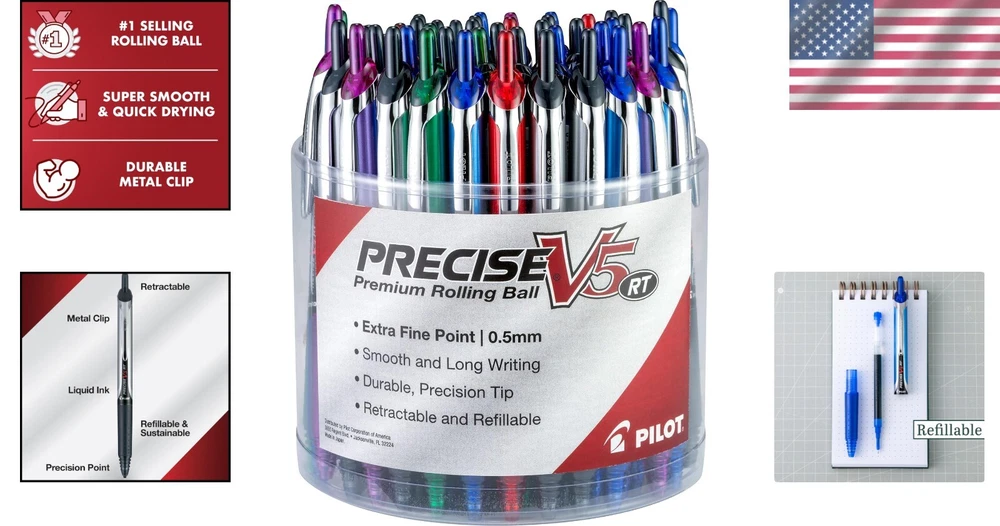 Material Type: Plastic, Metal Size: 48-pack Pencil Lead Degree (hardness): Hb Writing Instrument Form: Roller Ball Pen Brand: Unbranded Material: Plastic Country/Region of Manufacture: Rolling Ball Pens gtin13: Does not apply Features: Smooth Writing, Versatile, Superior Comfort & Control, Power to the Pen, Glides effortlessly across paper, Consistent strokes, Skip-free writing, Durable tungsten carbide tip, Precision tip for clean lines, Perfect for note-taking, Retractable design, Refillable with Pilot V5 RT Refills UPC: Does not apply Point Type: Extra Fine Age Range (description): Adult Closure: Retractable Vintage: Rolling Ball Pens Ink Color: Assorted Product Dimensions: 5.63 X 5 X 5.63 Inches Item Weight: 1.3 Pounds Grip Type: Comfort Grip Personalized: Rolling Ball Pens Color: Assorted