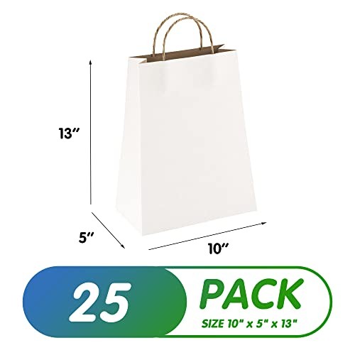 Return Policy Fast Delivery Trusted seller White Kraft Paper Bags with Handles Bulk, 10 x 5 x 13 Inch. Pack of 25 Foldable Shopping Bag, 150 GSM. Kraft Paper Gift Bags with Handles. Gift Gag Bulk for Wedding favors, Valentines Day Product Description Package of 25 Kraft Bags with Handles, Measuring 10 x 5 x 13 Inches. Paper grocery bags feature a White color and a smooth surface. Despite their lightweight design, these party gift bags offer impressive strength and enhance brand presentation. Sturdy Material. Made from 150 gsm paper, these Valentines party bags offer the perfect balance of strength and lightness. The high-quality material of the birthday gift bag ensures tear resistance, while the ink-ready surface invites customization. Thoughtful Design. Reinforced rope-style handles and durable seams on paper retail bags with handles provide a secure hold for up to 2.2 pounds. Form-retaining design and attractive appearance of boutique bags for small business provide both practicality and aesthetics. Protection and Durability. Paper grocery bags with handles aren't just about looks; they're built to last. Tear-resistant and glued-seam, party favor bags promise to keep items safe. The odor-free feature of these reusable gift bags bulk ensures a pleasant experience. Versatility. Boutique shopping bags for groceries are ideal for a variety of uses — from weddings to craft shows, from e-commerce packaging to gift giving. Recyclable bags for gifts are great for books, small retail items, and more. Shipping Returns Payment Shipping Shipping is FREE to all addresses other than APO/PO boxes in the lower 48 states. All our stock ships from US-based warehouses. Shipped via USPS or UPS (depending on location and package weight) Unless stated otherwise, all orders will ship within 24-72 hours of your payment being processed. Check our feedback to see the great reviews of FAST shipping we offer. Returns Seller does not accept returns Payment We currently accept payment via eBay managed payments only. Once payment is cleared, we will dispatch your shipment within 1-3 business days. Please refer to the "Shipping" tab for more information regarding shipping speed to your destination.