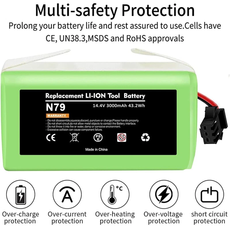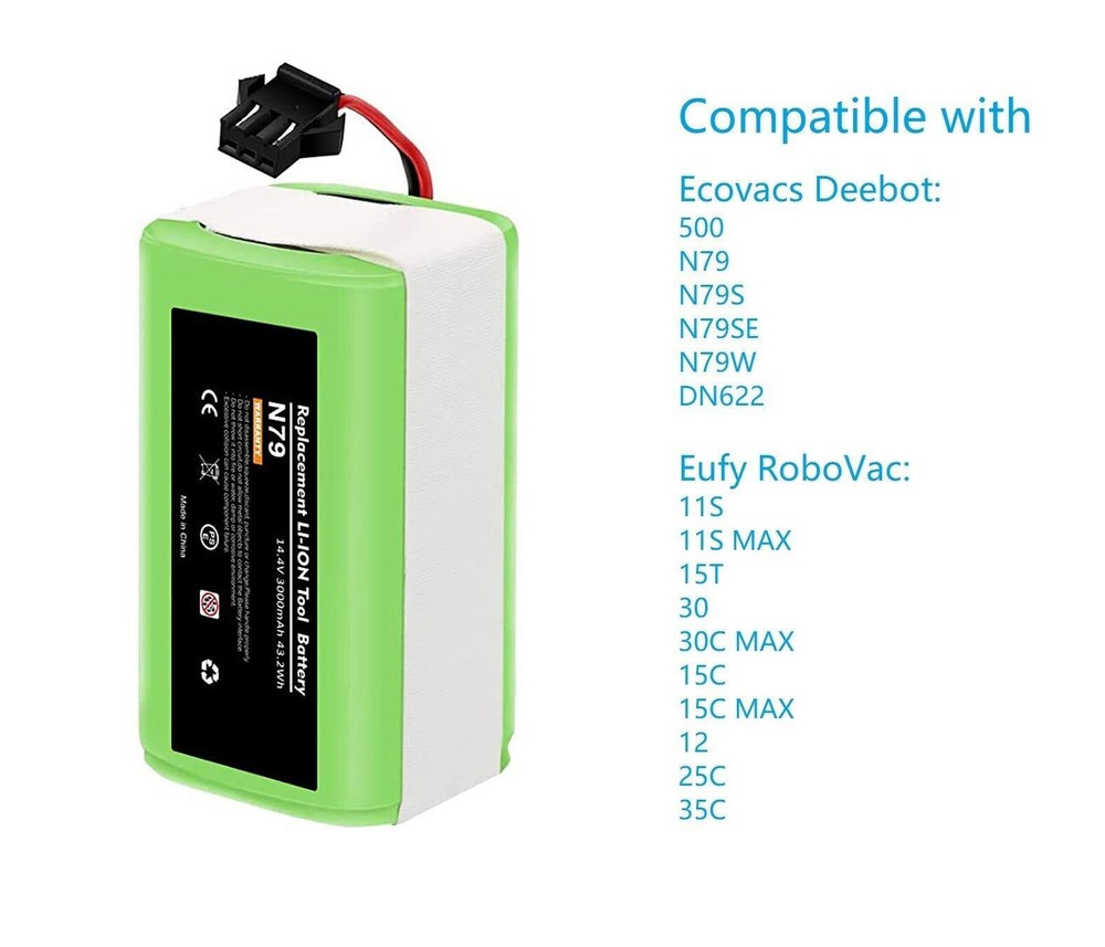 Product Description About this item Lithium-ion š³ćBattery TypećBattery type: Li-ion battery,Voltage: 14.4V, Capacity: Upgraded 3000mAhļ¼No Fake High Label Capacityļ¼. No memory effect, no pollution, and low self-discharge, can be charged or discharged as needed without loss of capacity. 100% compatible with original charger. š³ćCompatibilityćCompatible with Ecovacs Deebot N79S, Deebot N79, Deebot DN622, Eufy RoboVac 11, RoboVac 11S, RoboVac 11S MAX, RoboVac 12, RoboVac 15T, RoboVac 15C, RoboVac 15C MAX, RoboVac 30, RoboVac 30 MAX, RoboVac 30C, RoboVac 35C, G10 Hybrid, G30, G30 Edge, G30 Hybrid, G30 Verge. See more compatible model in description. š³ć600+ Recharge CyclesćPOWTREE 3.0Ah Ecovcas battery replacement can be recharged up to 600+ cycles of use. No memory effect, low self-discharge rate and long-lasting battery life š³ćHigh QualityćBattery uses the highest quality cells, safe with rapid-charge technology while providing overcharge and over discharge multiple protection to increase the life of the battery. Reliable safeguard features with the protection for short-circuit, output over-voltage, over-heat and output over-current. Perfect Battery Management System, high-end protection IC. Power Battery to support max. 8A discharge. Compatible with Ecovacs N79S, 500, N79, N79SE, N79W, DN622, DN622.11 Robot Vacuum Cleaners. 14.4V 3000mAh Li-ion rechargeable replacement battery makes vacuum lasting around 100 minutes per charge. Easy to install, local sale support, 24/7 response to online messages, 12 months warranty. Futures : 3000mAh High Capacity Battery Li-ion Rechargeable battery, convenient to use. And it has no memory effect. Can be charged or discharged as needed without loss of capacity. Same size & function as original battery, don't worry damaging your robot. Quick charge and easy to install. ISO9001, RoHS, and CE certified NO FAKE HIGH "LABEL" CAPACITY High Performance Li-ion Battery with 600+ Recharge Cycles With 3000mAh capacity, the battery can last 120-180 minutes after being fully charged (Depending on use & setting), like the original. Built-in multiple protections against overload, overvoltage, overcurrent, short circuit and internal overheating, ensure effective and safe cleaning in your home. Imported high density lithium battery, higher cost, better performance, more durable(can be recharged 600+ cycles) Compatible With:(use"Ctrl+F" to find your own PN & Model) Compatible for Deebot Series: Ecovacs Deebot N79, Deebot N79S, Deebot 600, Deebot 601, Deebot DN622, Deebot 661 Compatible for RoboVac Series:Eufy RoboVac 11 (T2102), RoboVac 11S (T2108), 11S MAX (T2126), RoboVac 12, 15T, 15C (T2120), 15C MAX, 25C Max, 30, 30C, 30 MAX, 35C, G10 Hybrid, G30, G30 Edge, G30 Hybrid, G30 Verge Compatible for :for Conga 990, Tesvor x500 NOT Compatible with: NOT for Eufy RoboVac 11+, iLife A4/A4S/A4S pro/A6/A9/V7/V7S/V7S pro Compatible Models For Eufy RoboVac 11, RoboVac 11S, RoboVac 11S MAX For Eufy RoboVac 12, RoboVac 15C, RoboVac 15C MAX, RoboVac 15T For Eufy RoboVac 30, RoboVac 30C, RoboVac 30 MAX, RoboVac 35C For Ecovacs Deebot N79,Ecovacs Deebot N79S,Ecovacs Deebot DN622 Ecovacs Deebot N79, Deebot N79S, Deebot DN622, Deebot DN621, Eufy RoboVac 11, RoboVac 11S, RoboVac 11S MAX, RoboVac 15T, RoboVac 30, RoboVac 30C Max, RoboVac 15C, RoboVac 15C MAX, RoboVac 12, RoboVac 35C. For Eufy RoboVac 11, RoboVac 11S, RoboVac 11S MAX For Eufy RoboVac 12, RoboVac 15C, RoboVac 15C MAX, RoboVac 15T For Eufy RoboVac 30, RoboVac 30C, RoboVac 30 MAX, RoboVac 35C For Ecovacs Deebot N79,Ecovacs Deebot N79S,Ecovacs Deebot DN622 For Eufy RoboVac 11, RoboVac 11S, RoboVac 11S MAX For Eufy RoboVac 12, RoboVac 15C, RoboVac 15C MAX, RoboVac 15T For Eufy RoboVac 30, RoboVac 30C, RoboVac 30 MAX, RoboVac 35C For Ecovacs Deebot N79S, 500, N79, N79SE, N79W, DN622, DN622 About Us Welcome to our store! We are a professional worldwide wholesale company. High product quality, reasonable prices, excellent customer service and a reliable credit standing is our tenet.If you like our products, please add my eBay shop to your "My Favorites" list. All the products we are selling include factory warranty , donāt cover items that have been abused, burned and damaged in any form. Payment We accpet payment via PayPal , E-wallet , some Credit Card , Direct Debit and Other specific payment methods. Import duties,taxes and charge are not included in the item's price or shipping cost.These charges are the buyer's responsibility. Please check with your country's customs office to determine what these additional costs will be prior to bidding or buying. Insurance is included in the Shipping & Handling costs paid. Shipping Items are generally shipped out in 1-3 business day after your payment has been cleared (Sat. & Sun. excluded.) Orders from the United States Warehouse will be shipped out via USPS or UPS. The shipment usually takes 3-7 business days(Saturday and Sunday excluded), if you need the item urgently, please contact us for detail before purchasing. Local pick up is not available. Orders from China will be shipped via Belgian Post or Post NL.The shipment will take 15-35 working days,please contact us if you didn't get the parcel for a long time. We do not ship to APO, FPO, Alaska, Hawaii and Puerto Rico addresses, and we are unable to ship to PO BOX for this item. Please provide your psychical address. Returns You have 60 days to return it from the date it was received. All returned items must be in the original package and you must provide us with the shipping tracking number,specific reason for the return and your ebay ID. We will refund your full winning bid amount , upon receipt of the item in its original condition and package with all components and accessories included. Contact Us Dear buyers,we appreciate your business, if you are satisfied with our service , please leave us a Positive feedback and rate the details of the transaction (Detailed Seller Ratings) with a " Pefect Stars ". We ai