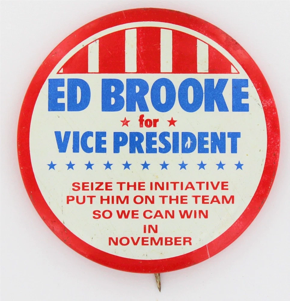 DETAILS: Original pinback button from the campaign to nominate Senator Ed Brooks as Vice President at the 1976 Republican National Convention in Kansas City. Measures 2 1/4" inches. GUARANTEE: We offer a lifetime guarantee on all of our items to be authentic originals issued by the organization stated. They are not later re-issues or reproductions. We forensically examine all of our items prior to listing to make certain they are authentic. Edward William Brooke (1919 – 2015) was an American politician of the Republican Party and the first African American elected to the United States Senate for the state of Massachusetts from 1967 until 1969. He graduated from the Boston University School of Law in 1948, after serving in the United States Army during World War II. Beginning in 1950, he became involved in politics, when he ran for a seat in the Massachusetts House of Representatives. After serving as chairman of the Finance Commission of Boston, Brooke was elected attorney general in 1962, becoming the first African-American to be elected attorney general of any state. CIVIL RIGHTS MOVEMENT Circa 1950-1970 Oxxbridge Galleries was founded in 1987 and specializes in paper items with a particular emphasis on counter culture and civil rights. Visit our ebay store for an extensive collection of original Civil Rights and African American political items. If you have any items you have questions about, please feel free to contact us. You will be pleased by the friendliness and knowledge of our staff. To contact us visit https://www.ebay.com/usr/oxxbridgegalleries Add us to your Favorites list Visit Our eBay Store: Oxxbridge Galleries