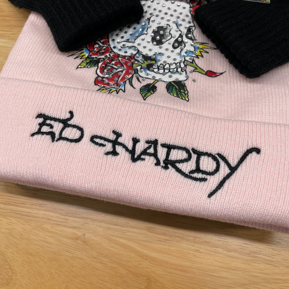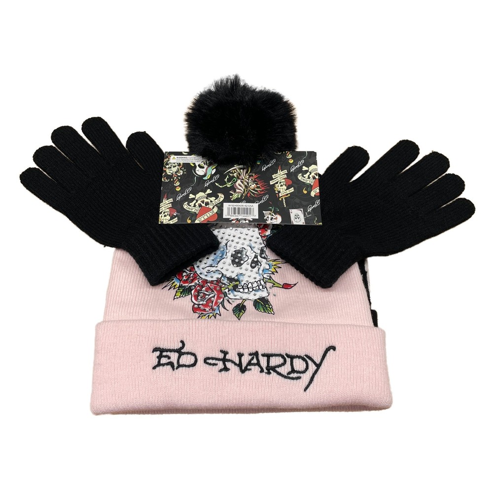 Fabric Type: Knit Size: One Size Season: Fall, Winter Department: Women Occasion: Activewear, Casual, Travel Features: Lightweight, Stretch, Cuffed, Embroidered, Rhinestones, Faux Fur Brand: Ed Hardy Accents: Embroidered, Logo, Rhinestone, Pom Pom, Faux Fur Style: Beanie, Gloves Set Color: Multicolor Country of Origin: China Material: Acrylic Vintage: No Theme: Designer, Hip Hop, Skull, Tattoo, Winter, Y2K Character: Ed Hardy