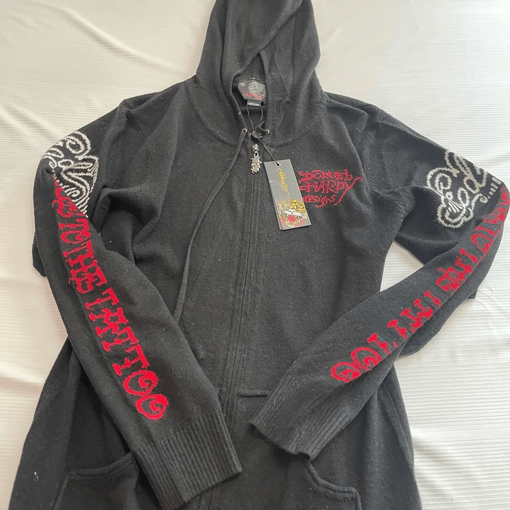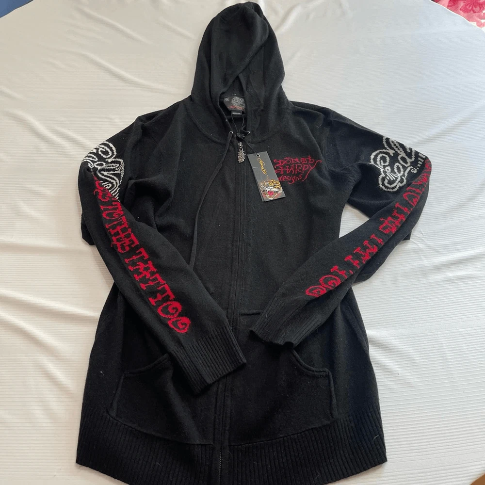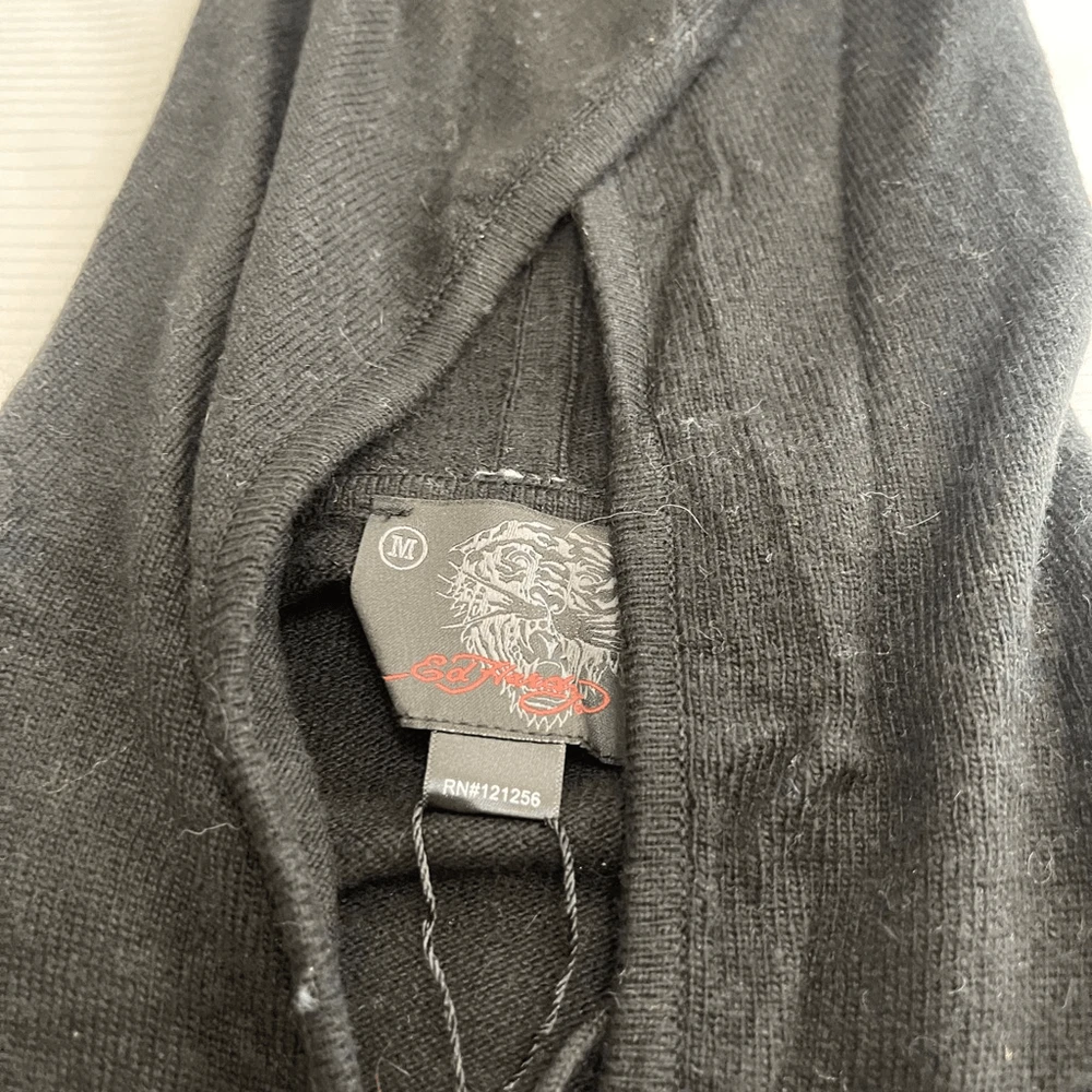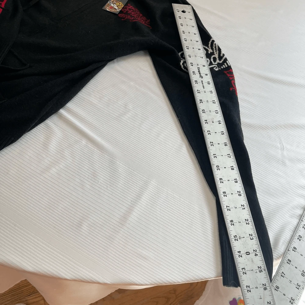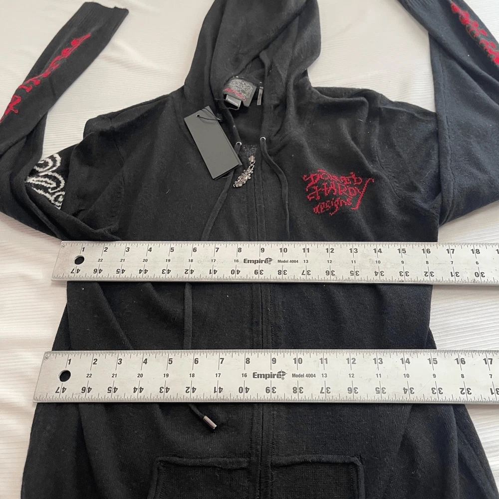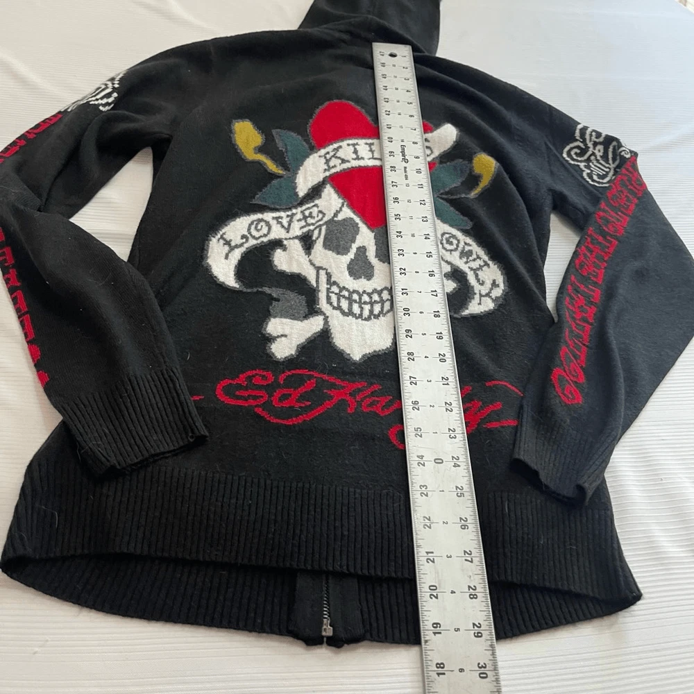 Ed Hardy By Christian Audigier Zip Up Skull Black Hoodie Size Medium New with tags See photos for measurements 50% cotton 15% Lambswool 10% Angora 10% nylon 10% viscose 5% alpaca GO1