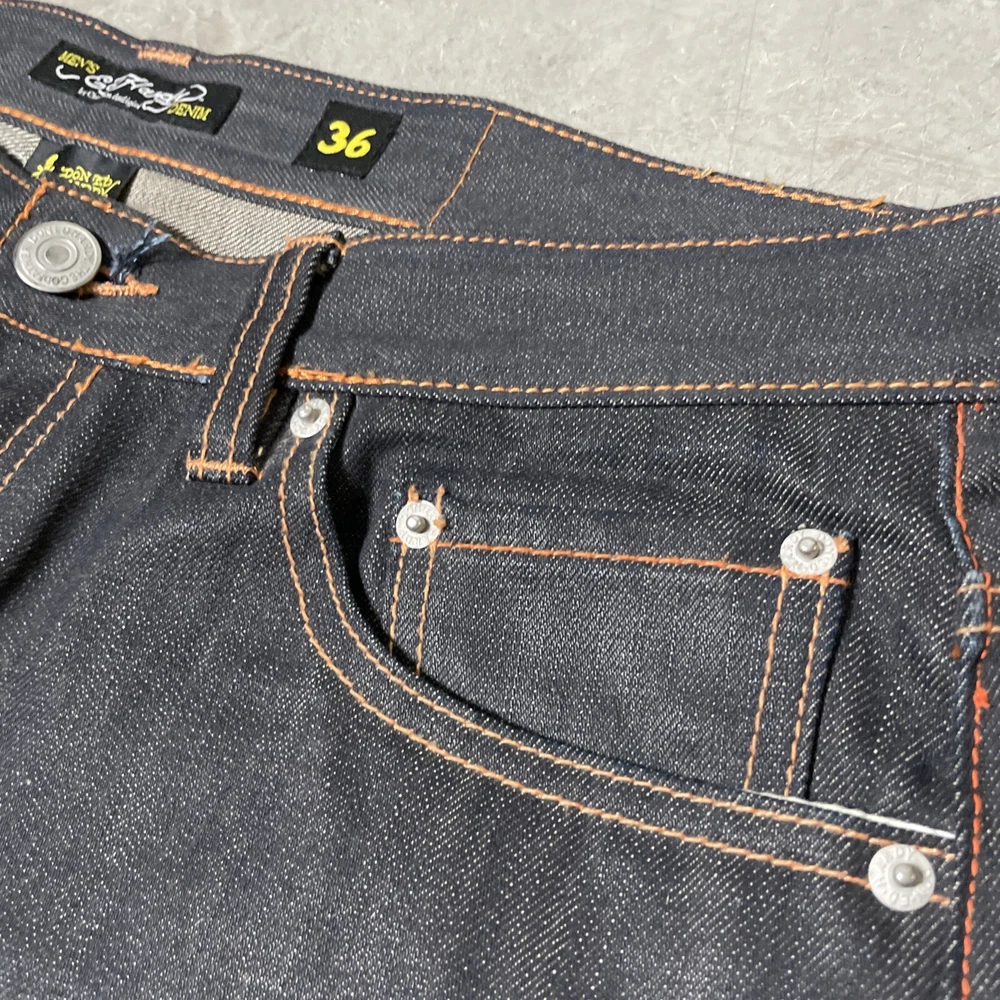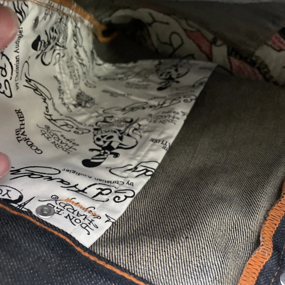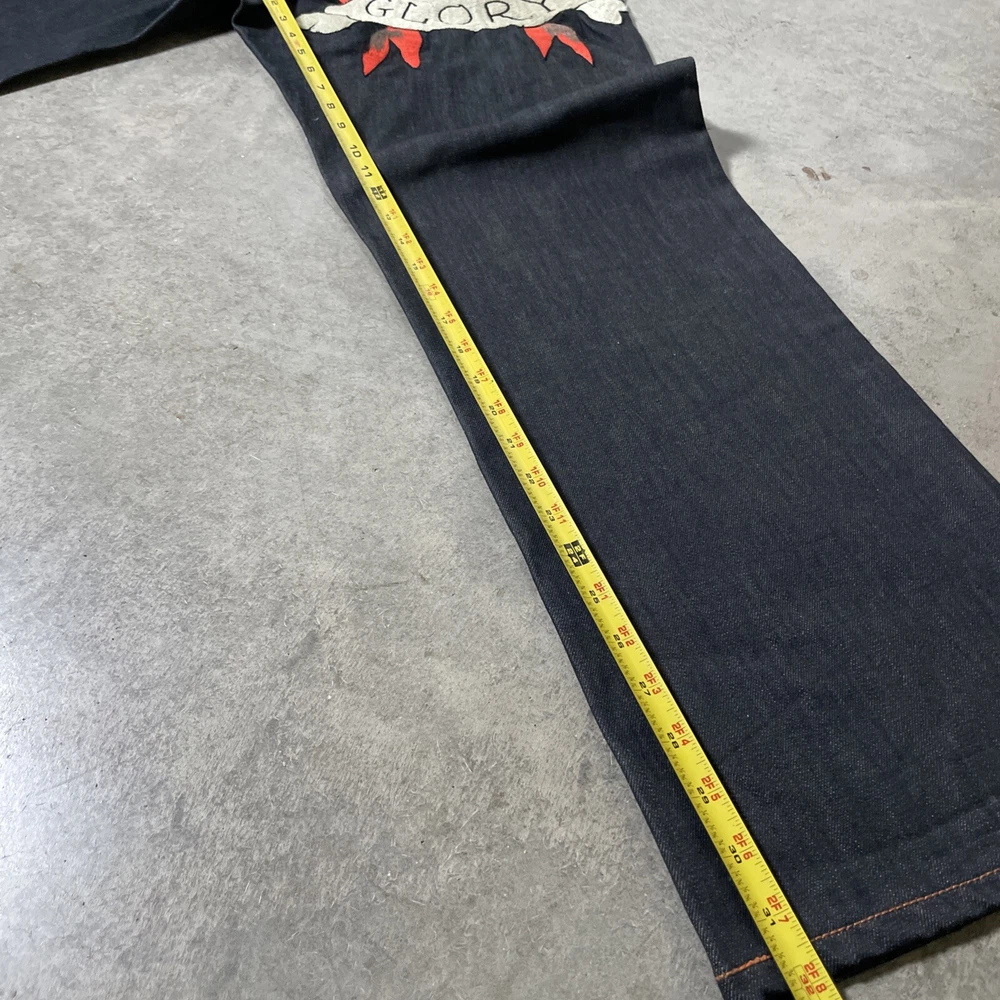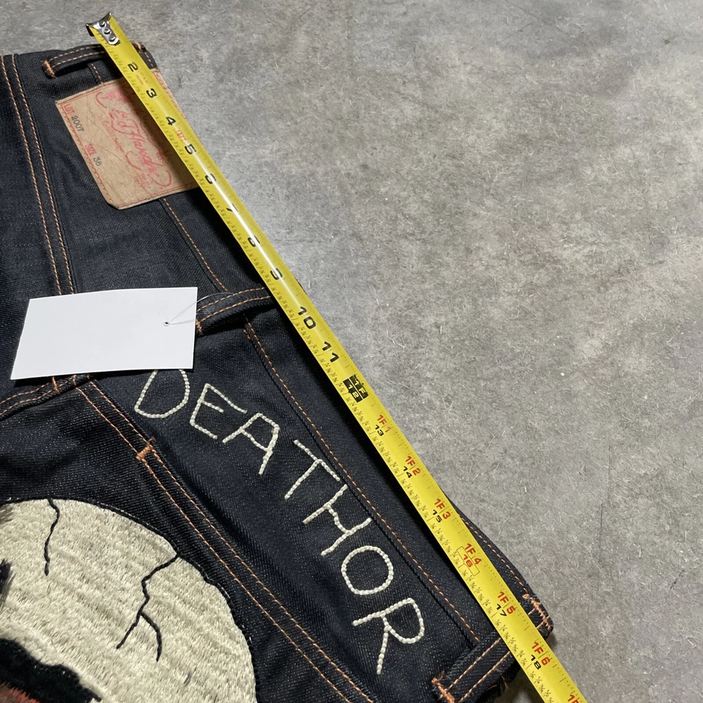 Ed Hardy Embroidered Dark Wash Denim Jeans Skull Size 36 Tattoo Gory baggy y2k Please refer to pictures for Measurments, flaws and details